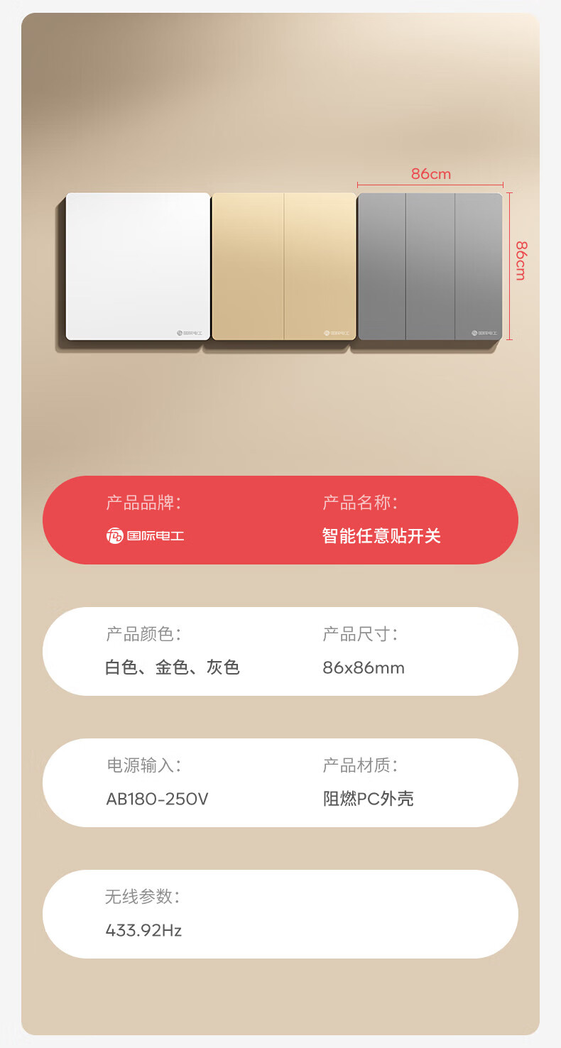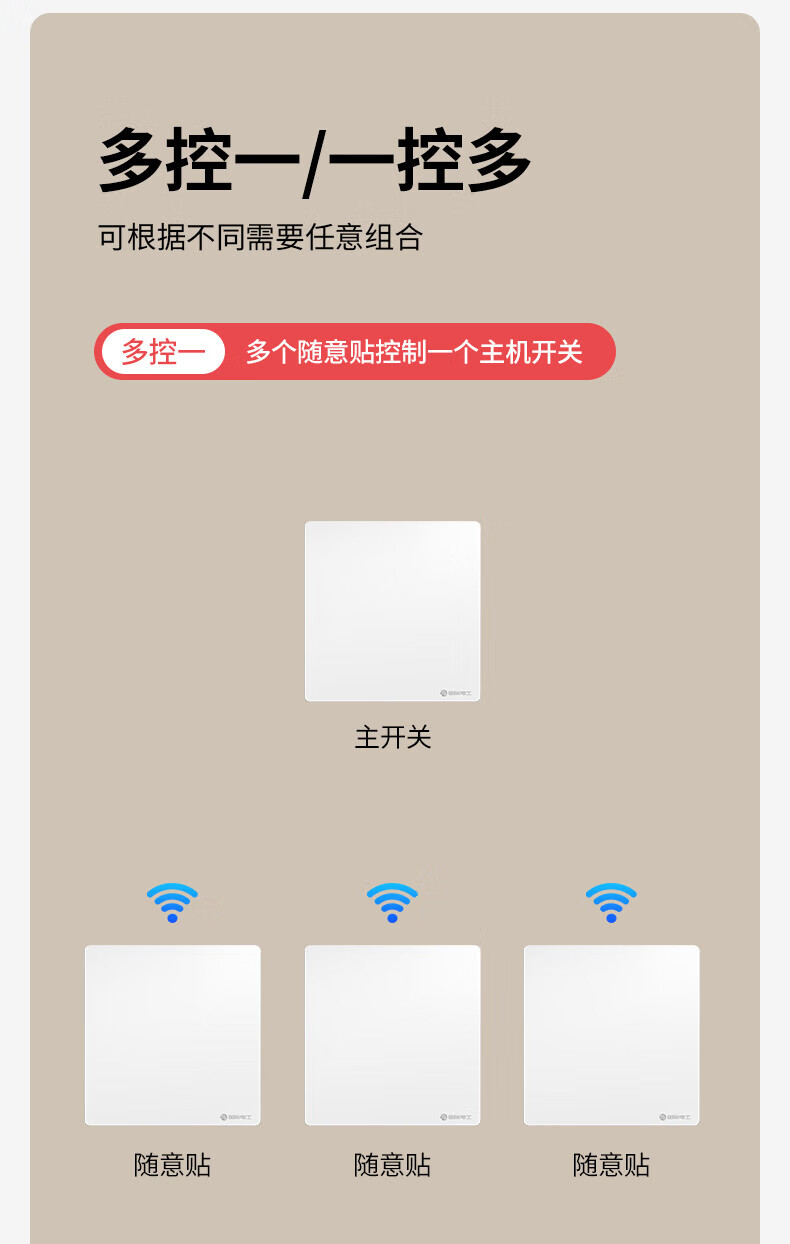 国际电工(FDD)已接入米家APP智能无线开关随意贴免布线双控灯遥控蓝牙情景面板 奶油白-随意贴一开【需搭配主机】