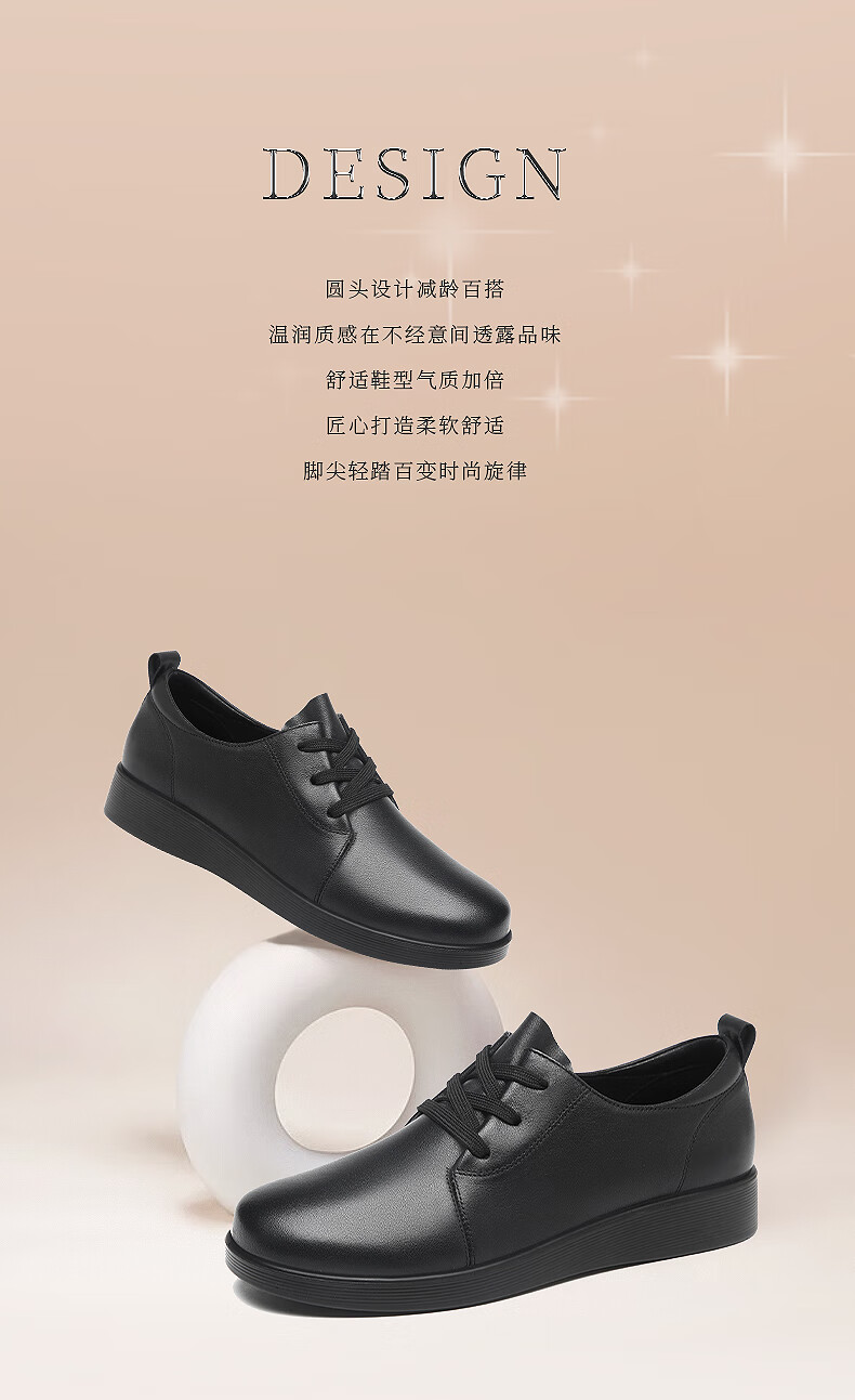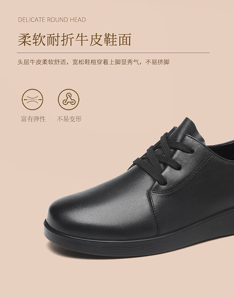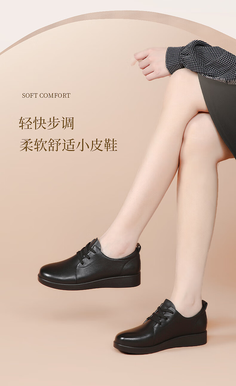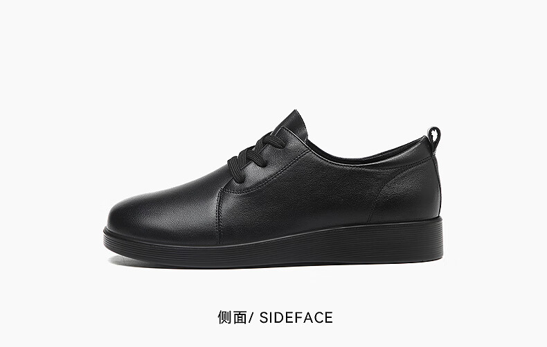 红蜻蜓品牌女鞋牛皮英伦休闲鞋女软皮小皮鞋工作单鞋女WTB341871黑色38