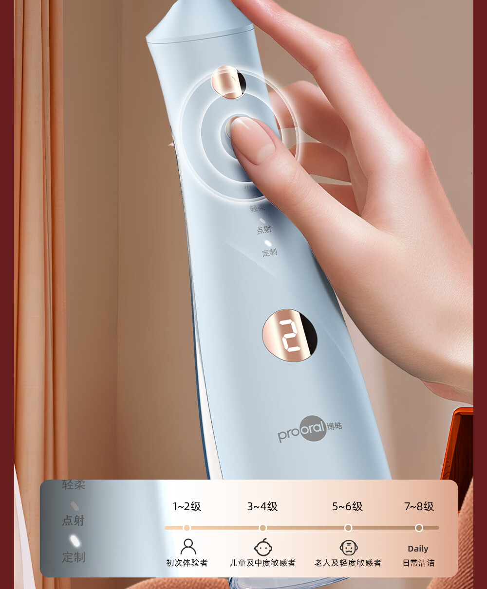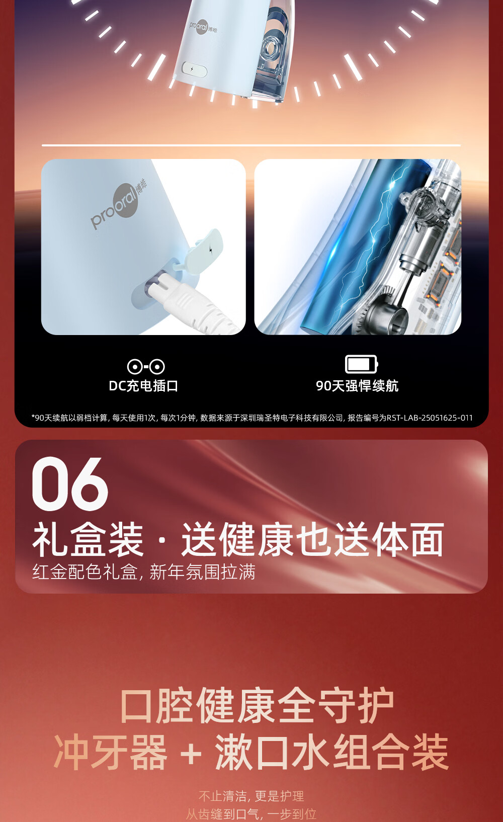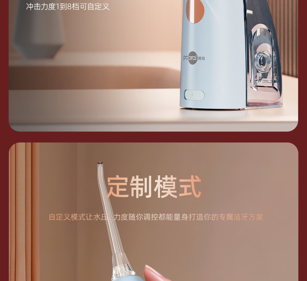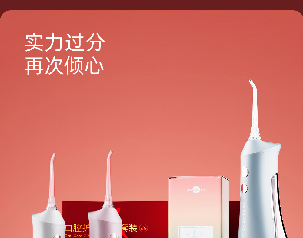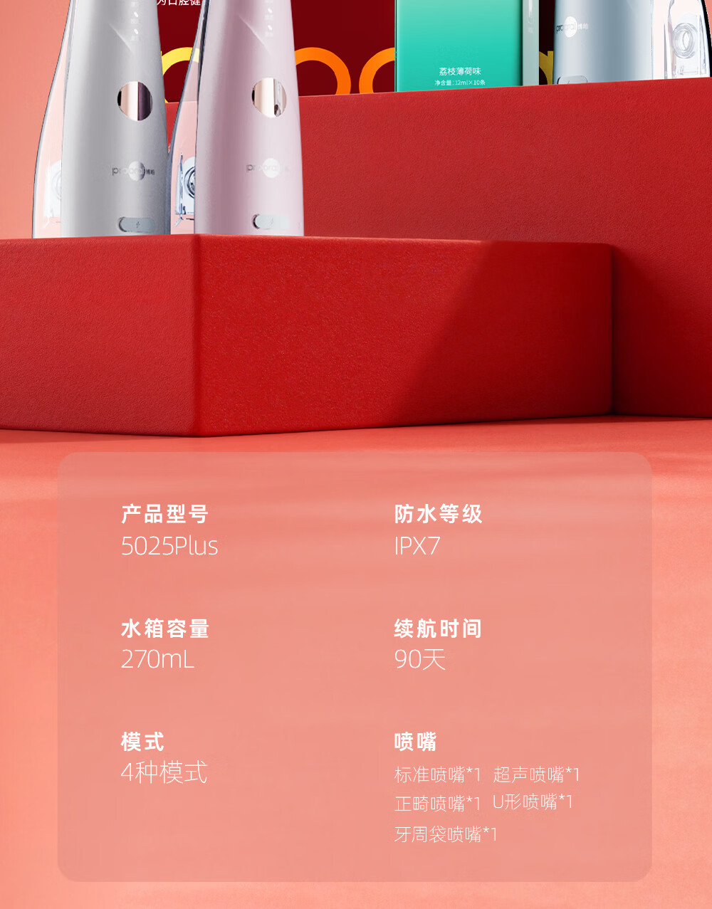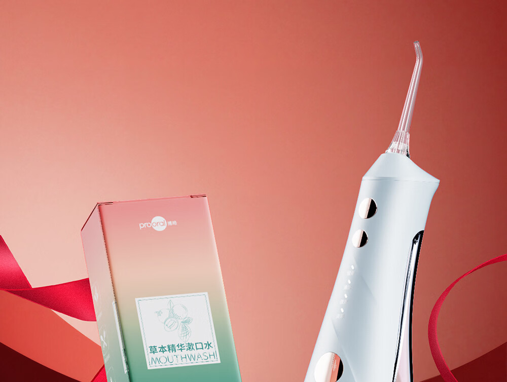 博皓(prooral)电动洗牙器冲牙器家用水牙线清洁牙齿冲洗器牙垢去除工具口腔清洗器便携正畸呵护 5025Plus礼盒装 黛粉 |漱口水+礼袋