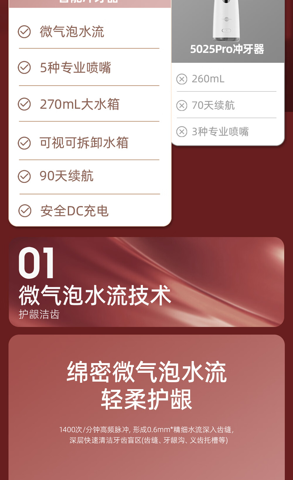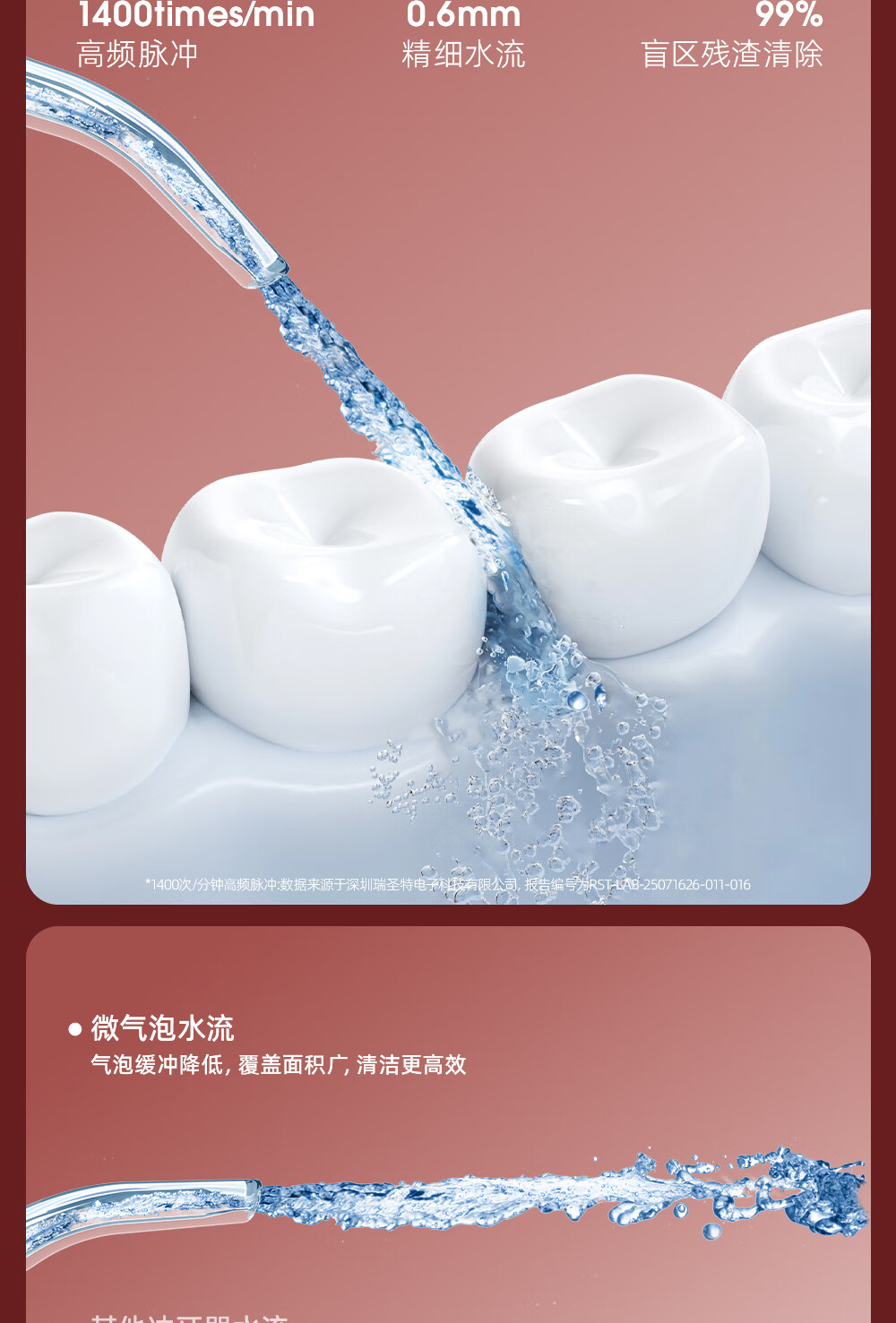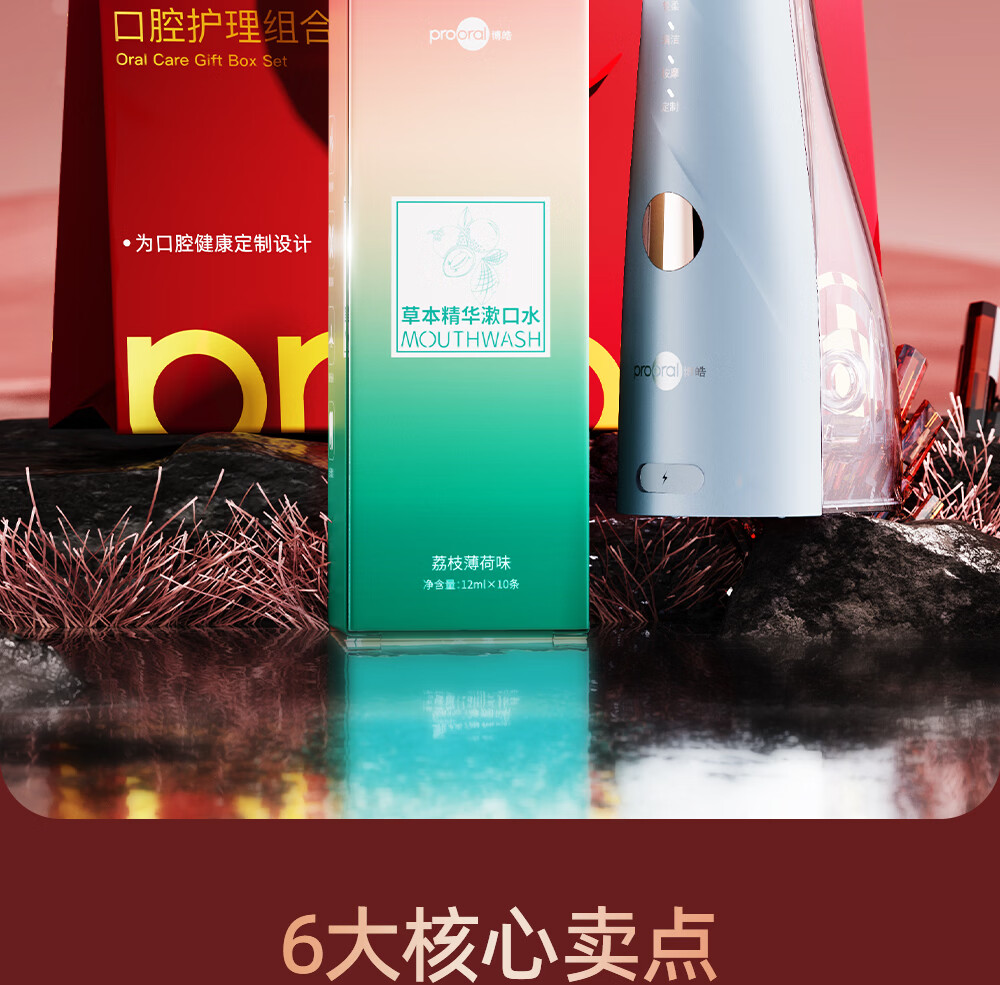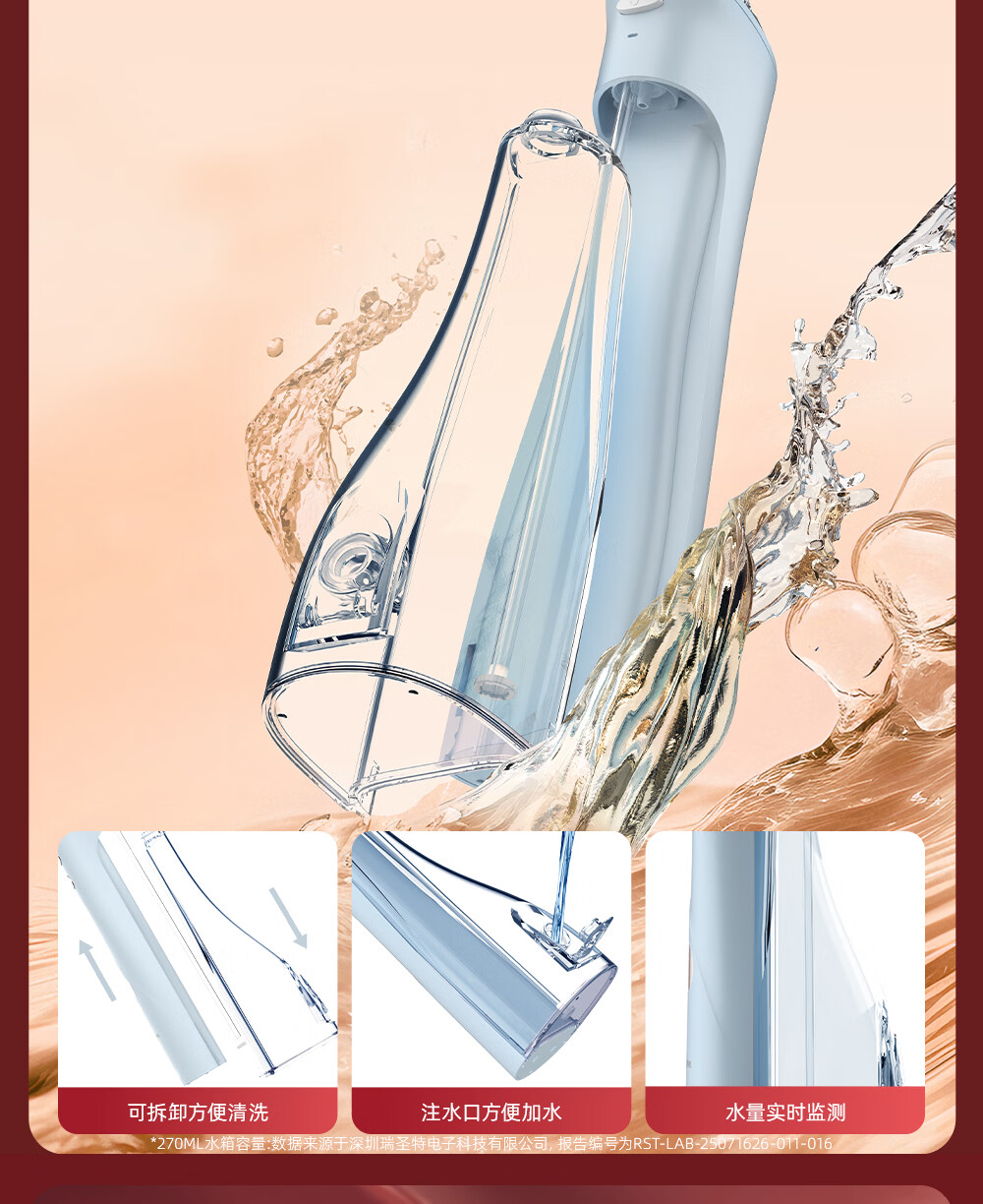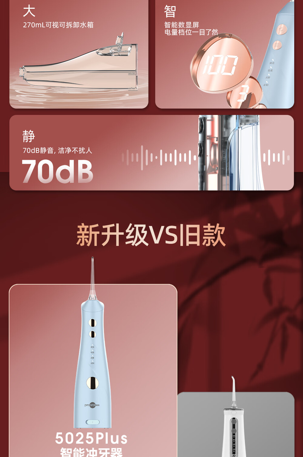 博皓(prooral)电动洗牙器冲牙器家用水牙线清洁牙齿冲洗器牙垢去除工具口腔清洗器便携正畸呵护 5025Plus礼盒装 黛粉 |漱口水+礼袋