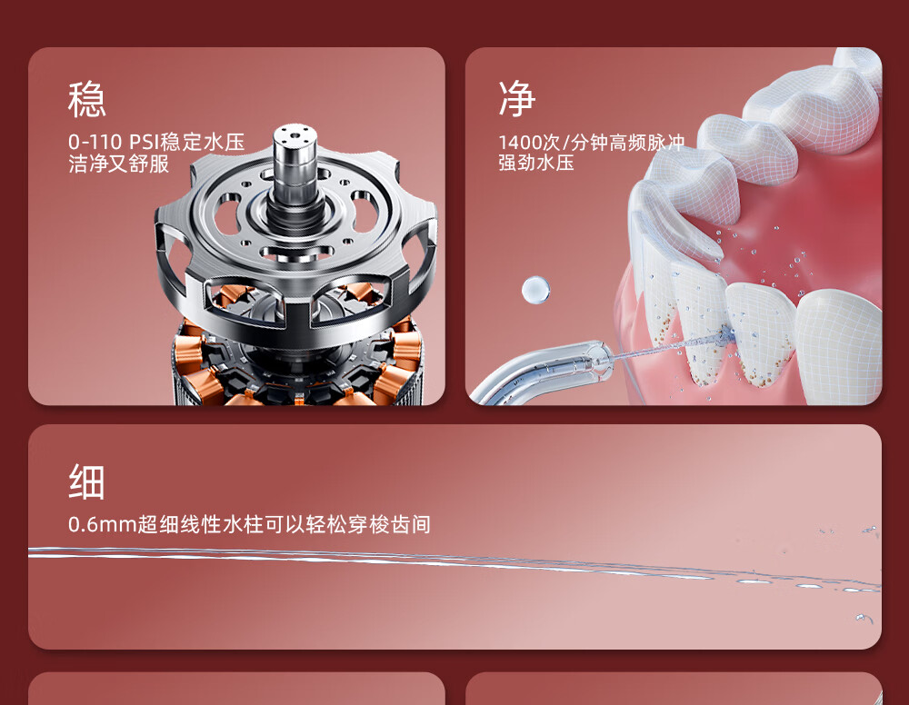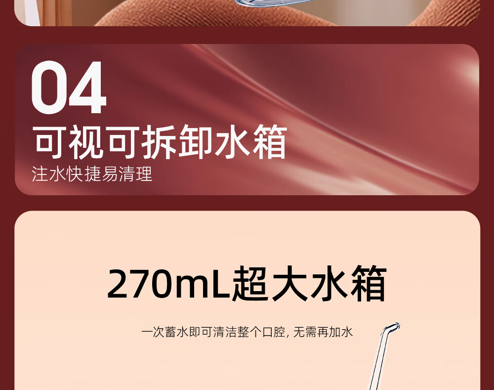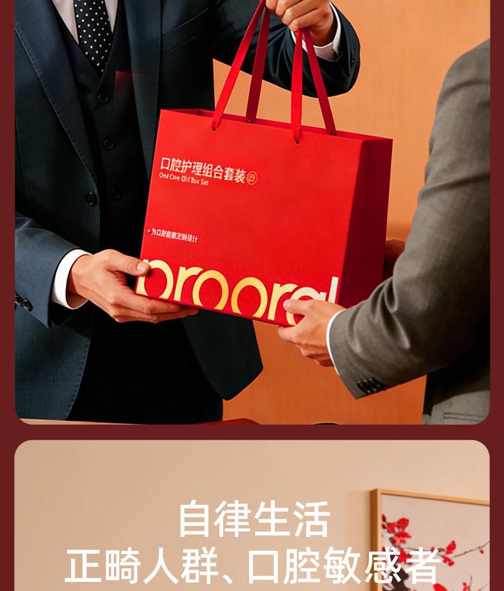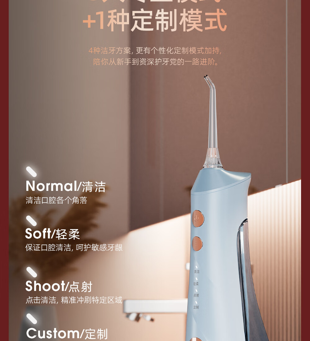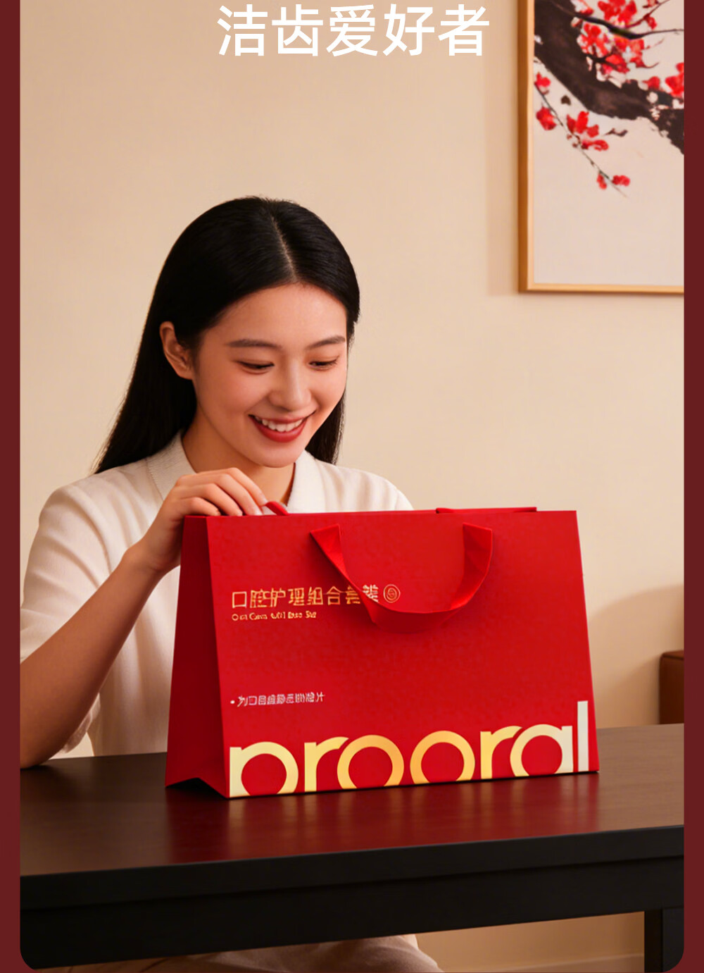 博皓(prooral)电动洗牙器冲牙器家用水牙线清洁牙齿冲洗器牙垢去除工具口腔清洗器便携正畸呵护 5025Plus礼盒装 黛粉 |漱口水+礼袋