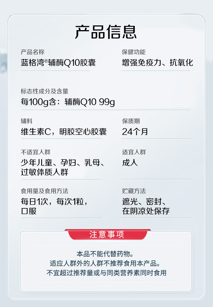 仁和蓝格湾辅酶Q10胶囊有助于增加免疫力抗氧化 60粒/瓶