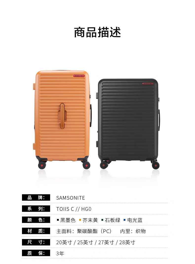 新秀丽(Samsonite)拉杆箱大容量行李箱男女旅行箱 万向轮登机箱时尚抗压 密码箱 HG0 HG0-黑墨色 20英寸 【适合1周内短途旅行】