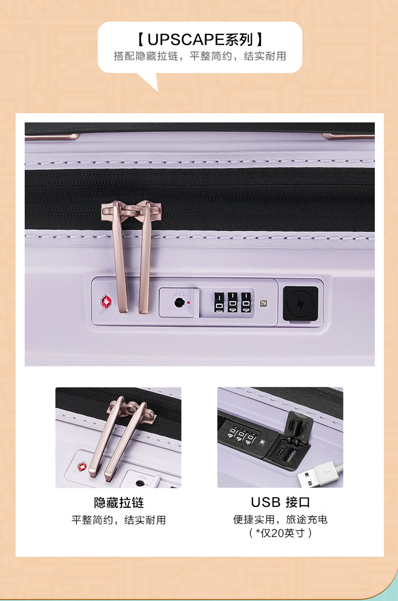 新秀丽(Samsonite)行李箱20英寸拉杆箱大容量旅行箱包HK6紫色密码登机箱