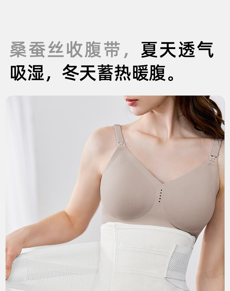 嫚熙(EMXEE) 产后收腹带剖腹顺产束缚带塑身大码透气棉纱布四片交叠束腰带 粉色升级版 常规款 【含桑蚕丝】 M
