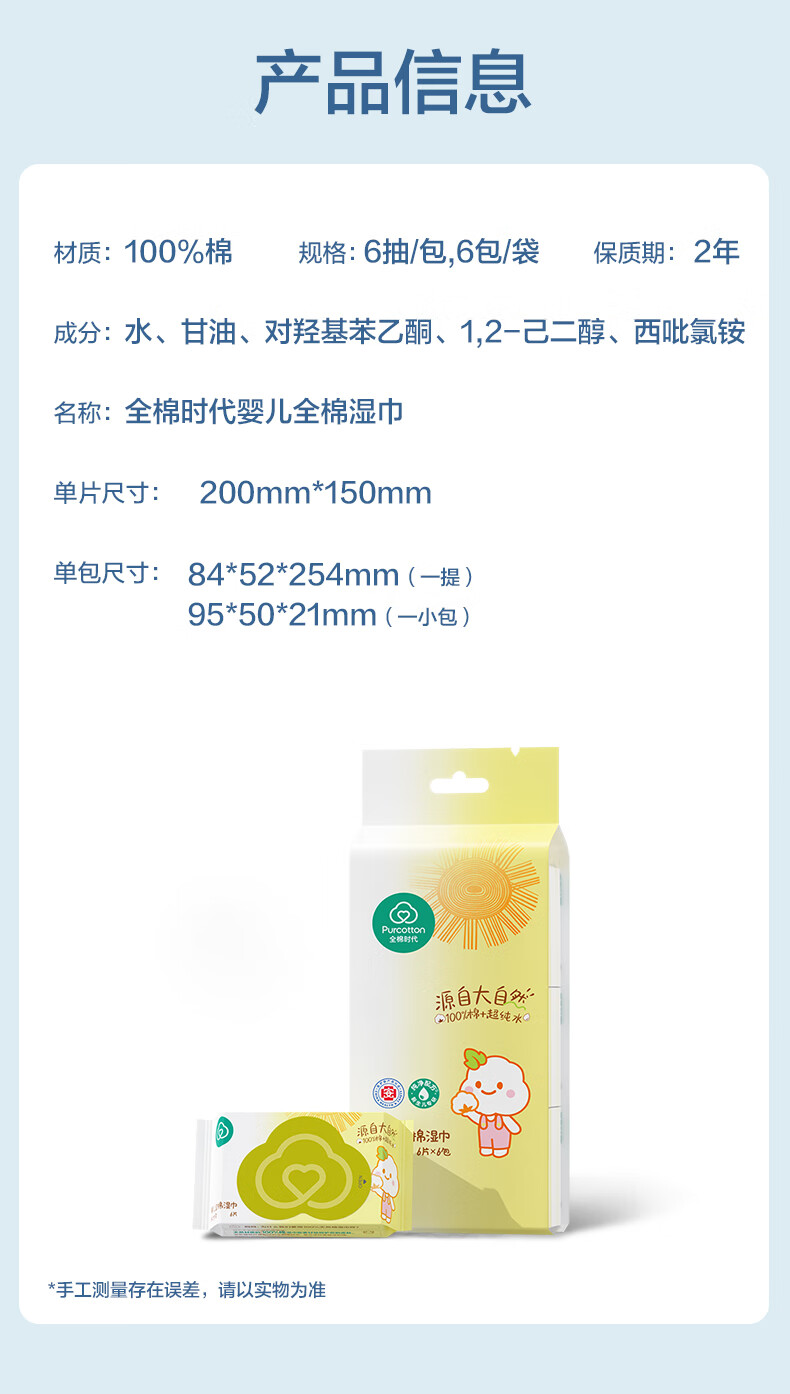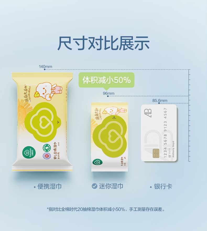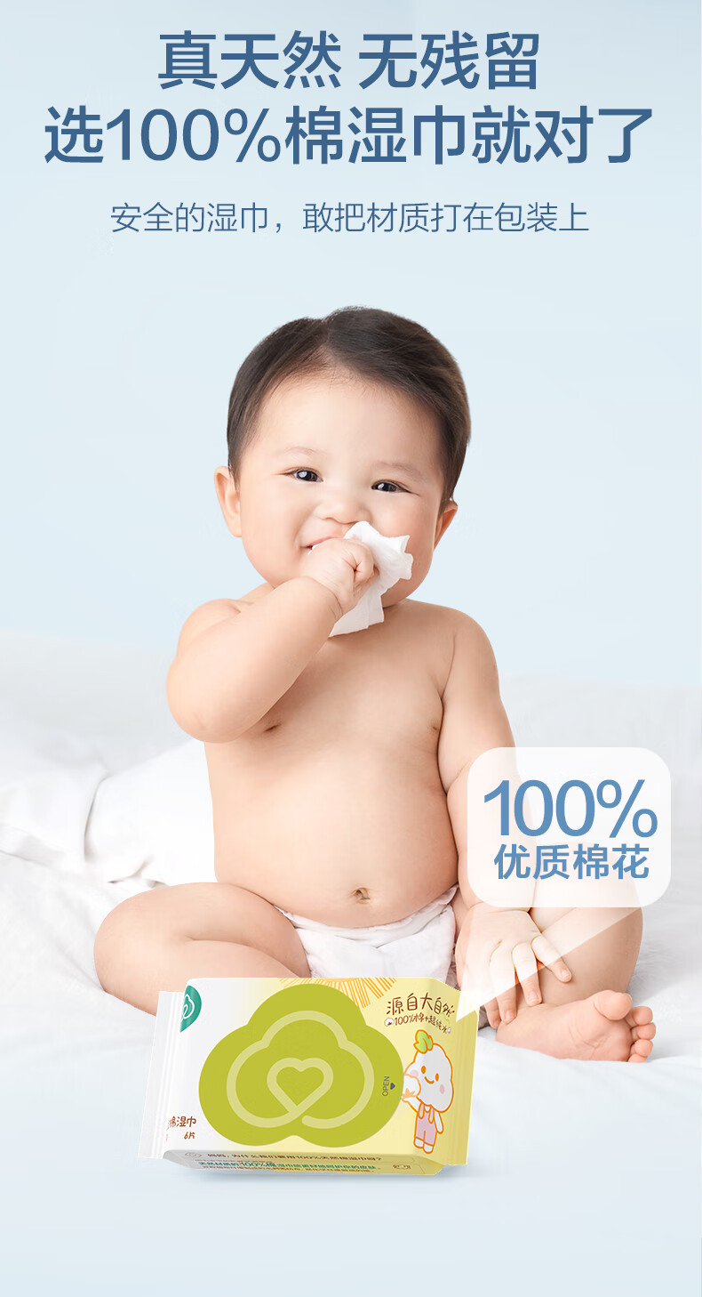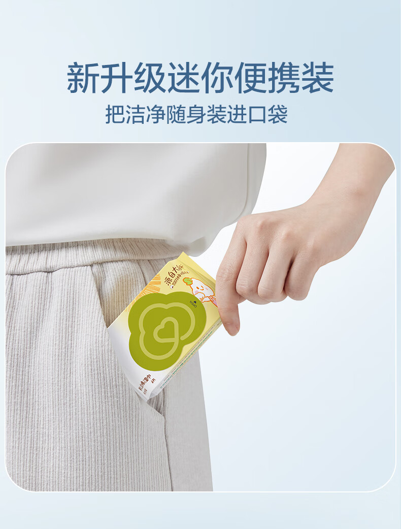 全棉时代婴儿湿巾外出手口湿纸巾成人可用100%纯棉mini便携装6包/5提