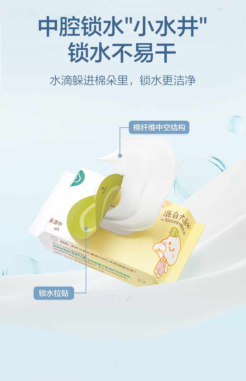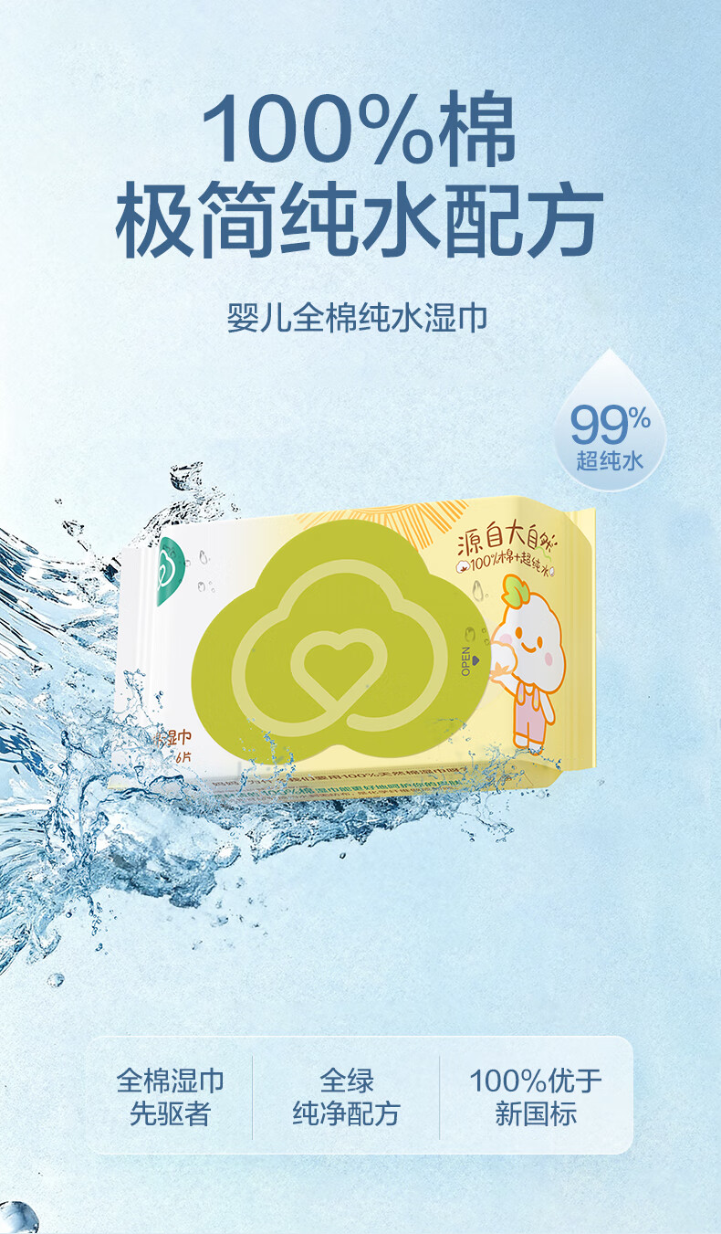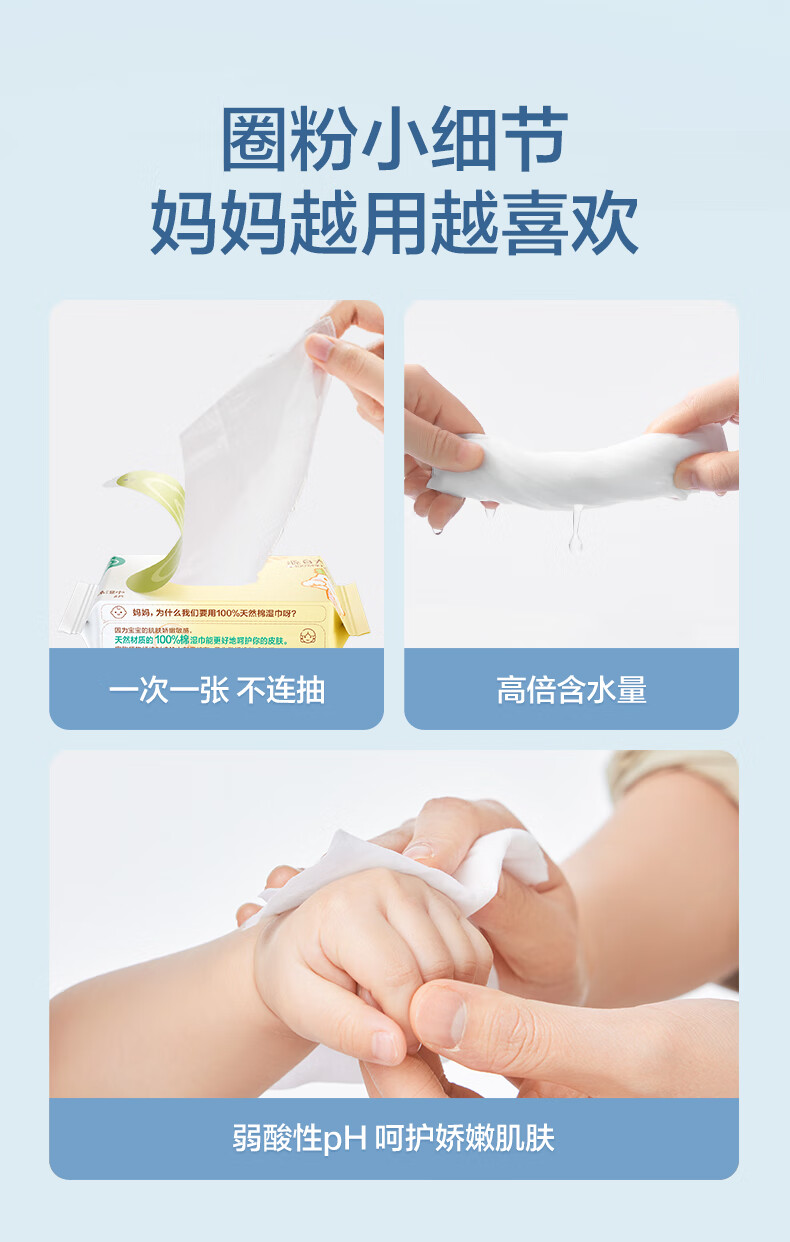 全棉时代婴儿湿巾外出手口湿纸巾成人可用100%纯棉mini便携装6包/5提