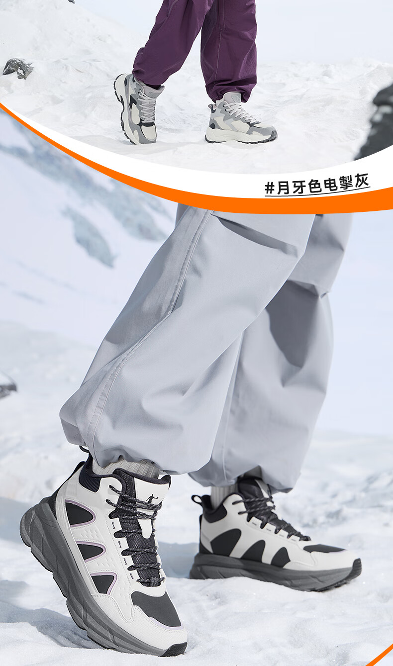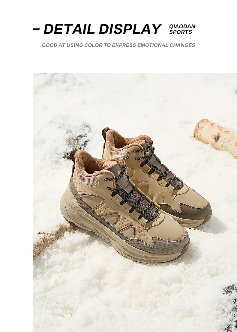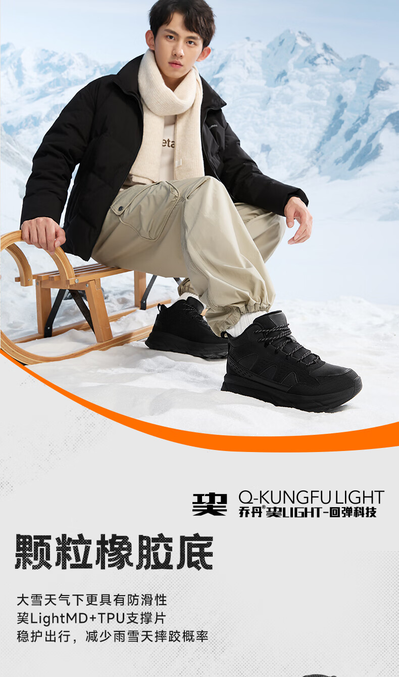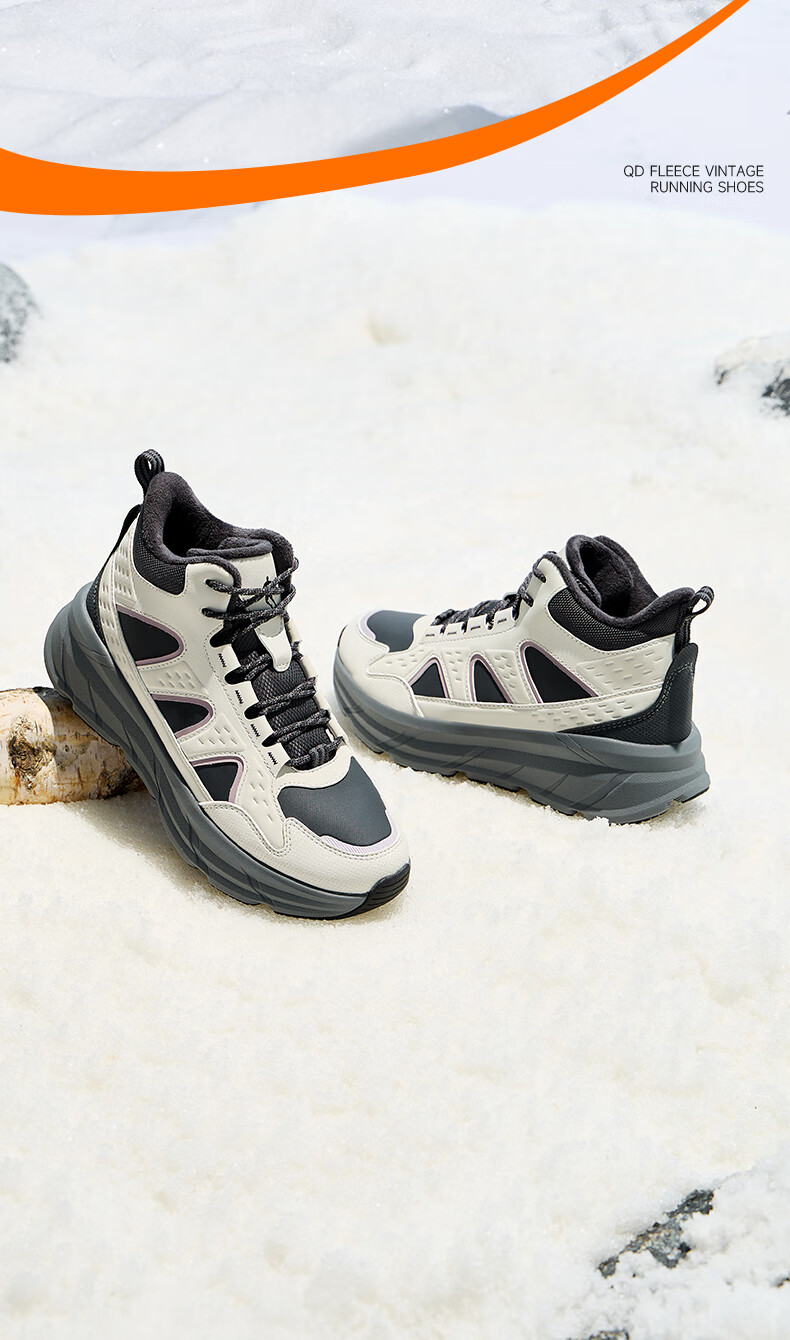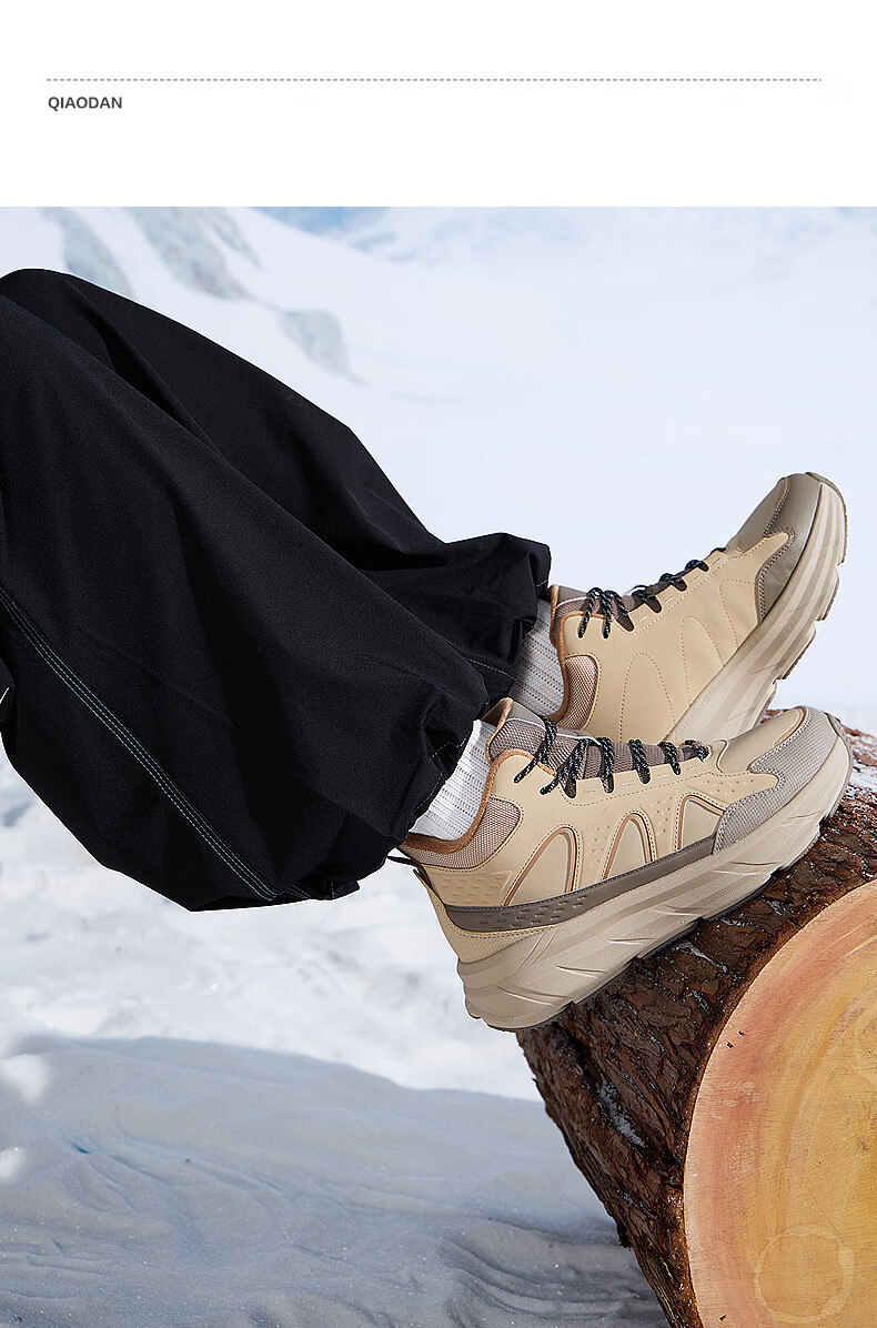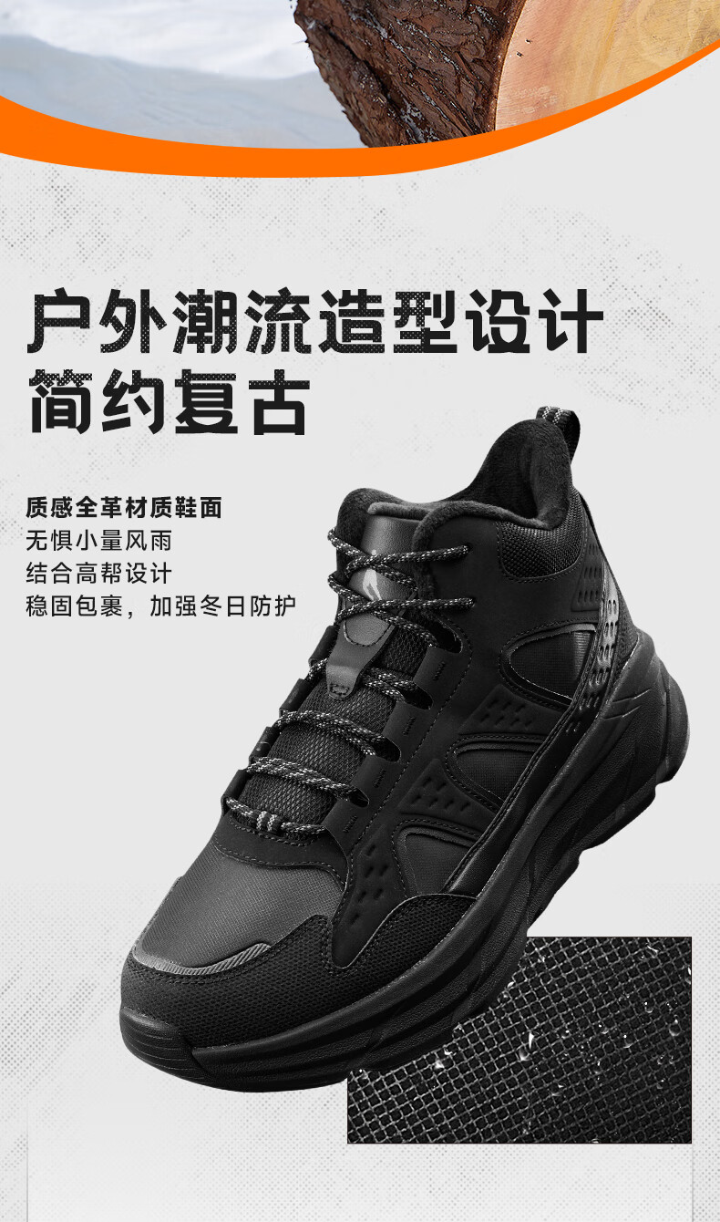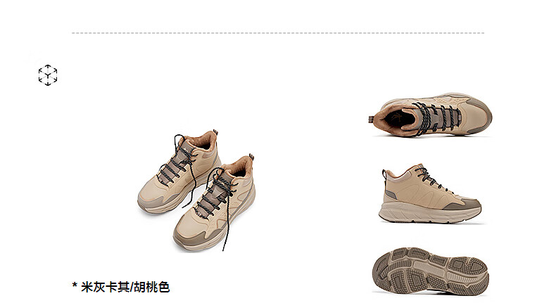 乔丹男鞋运动鞋高帮加绒棉鞋加厚皮面革面冬季保暖防水防滑跑步鞋户外 男-米灰卡其/胡桃色 37