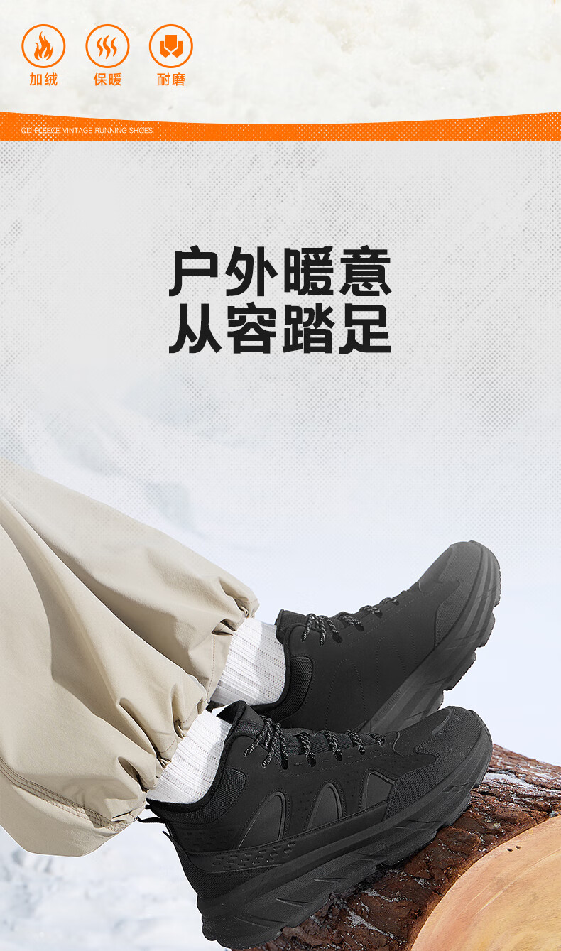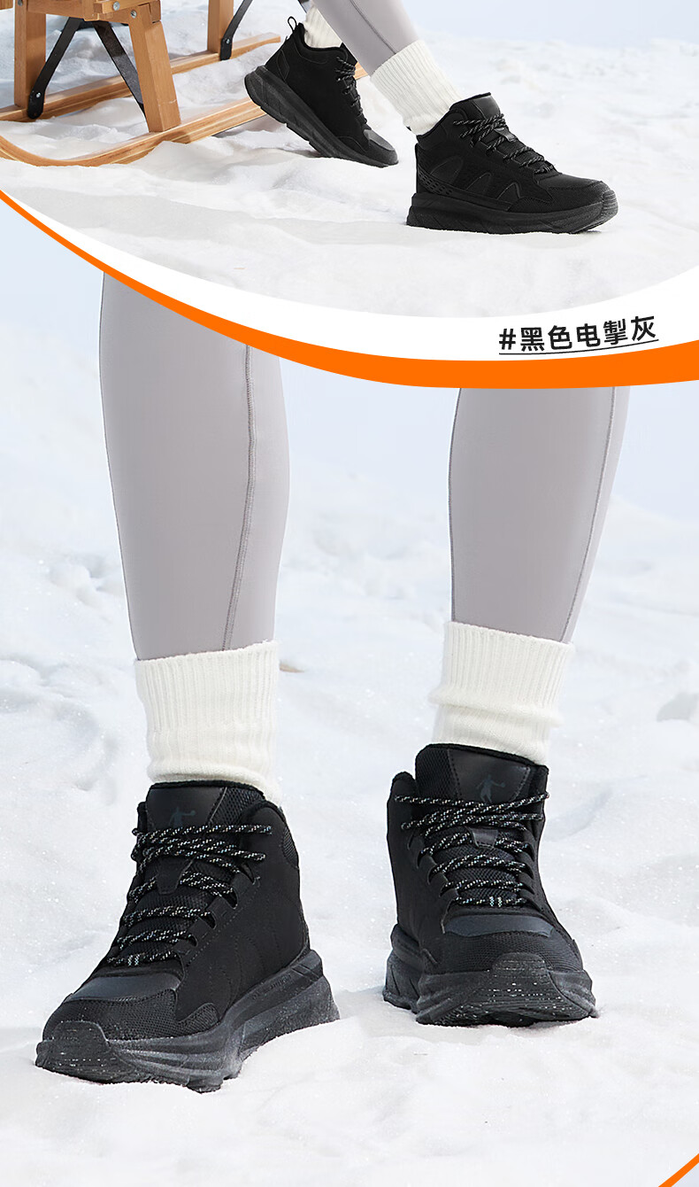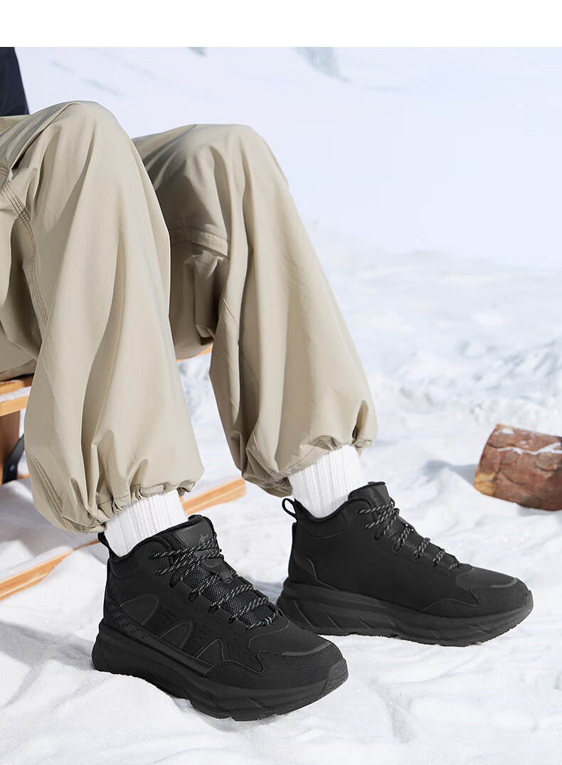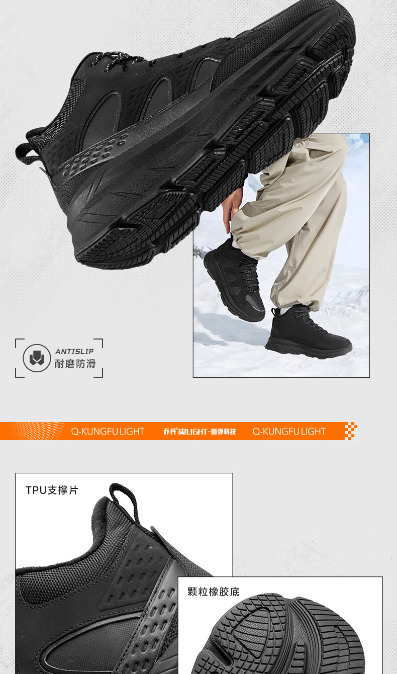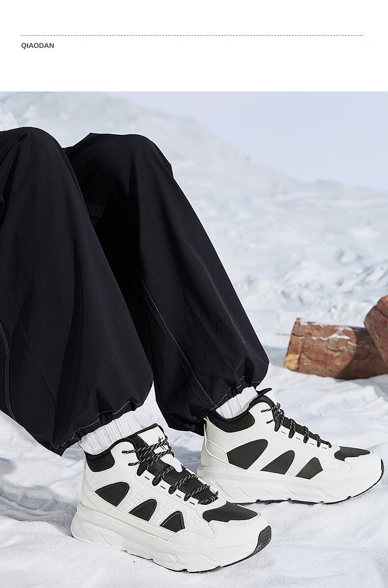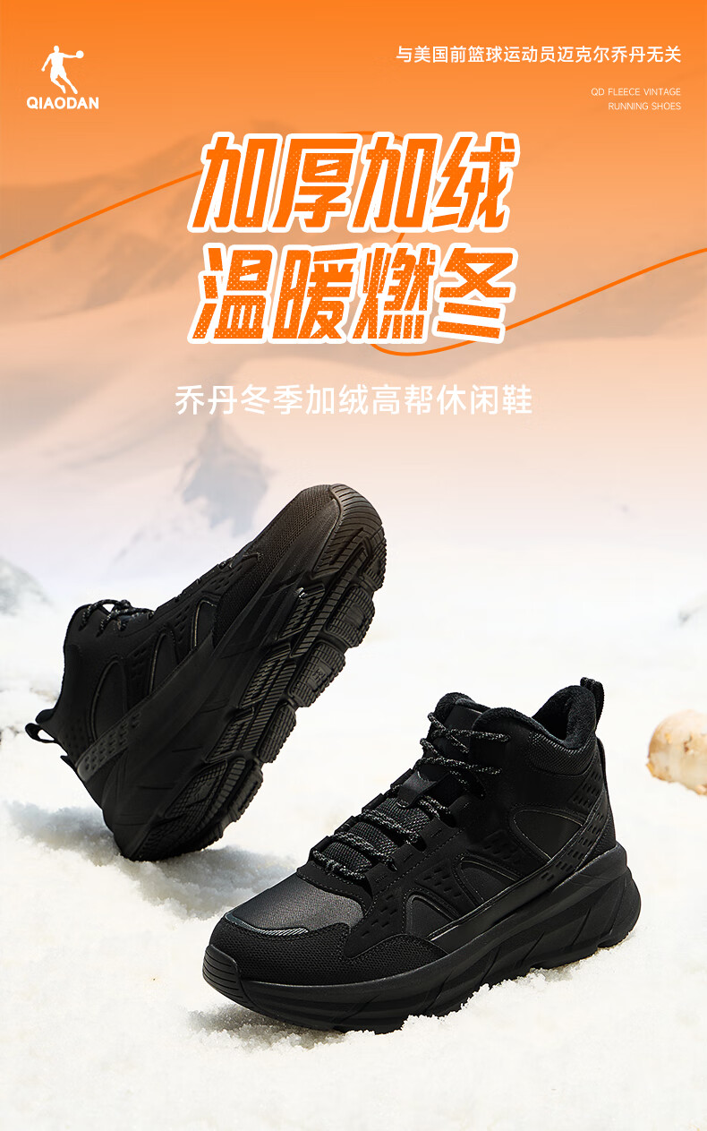 乔丹男鞋运动鞋高帮加绒棉鞋加厚皮面革面冬季保暖防水防滑跑步鞋户外 男-米灰卡其/胡桃色 37