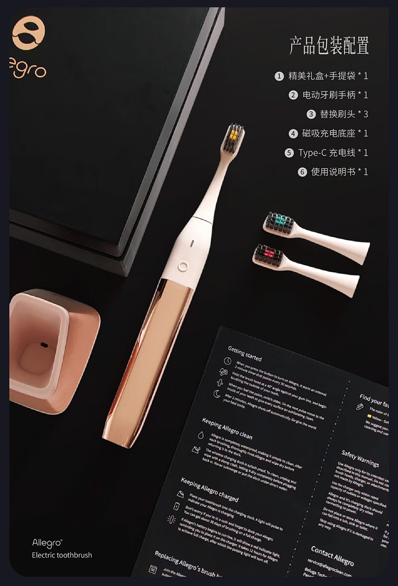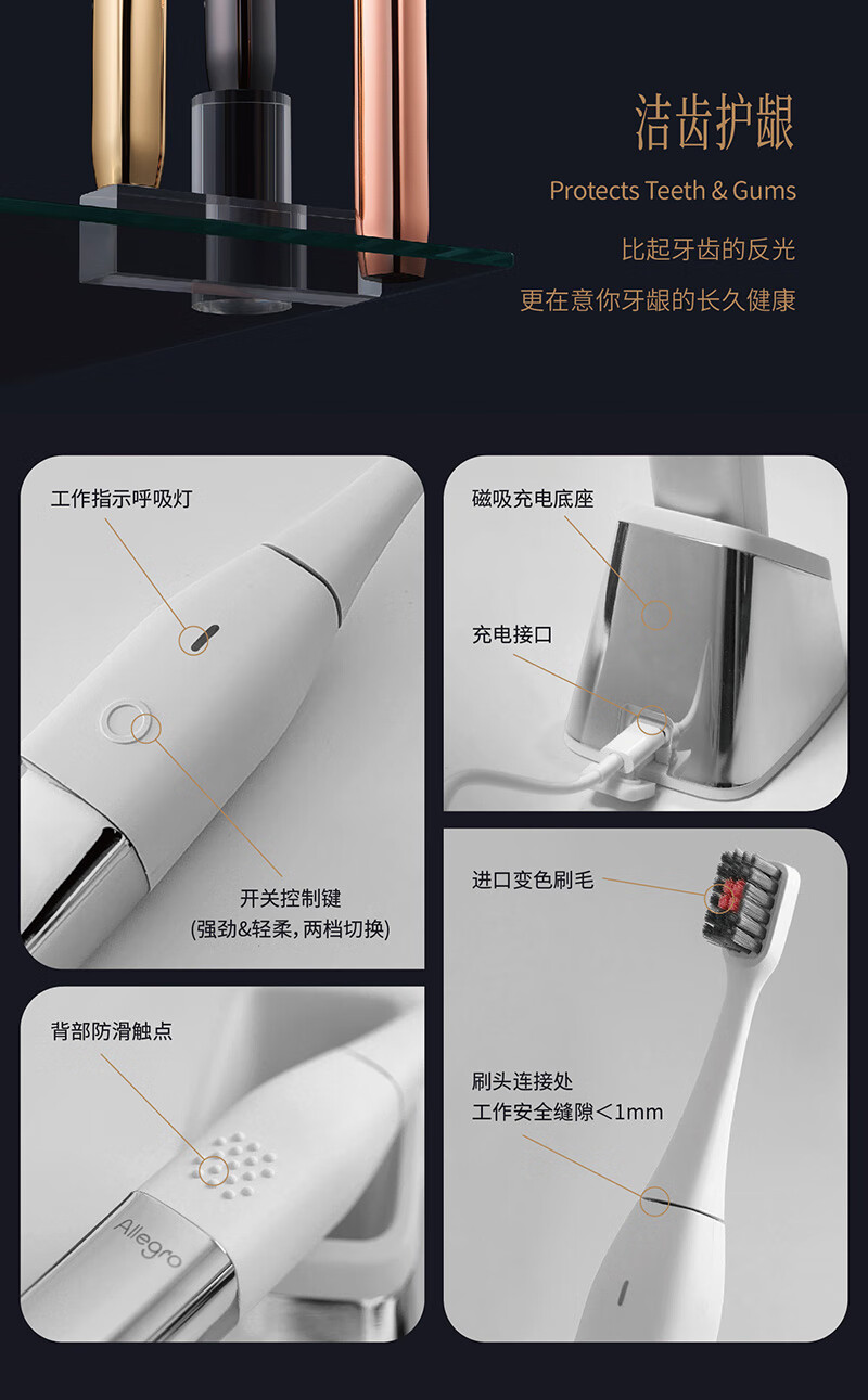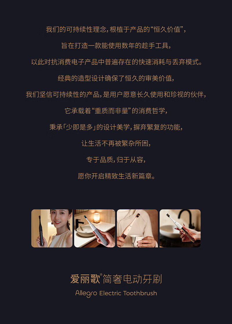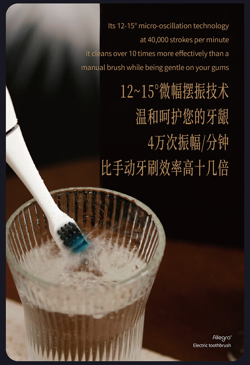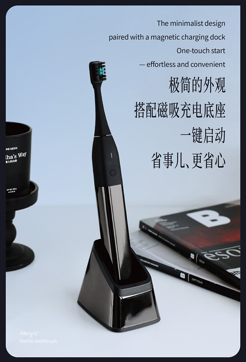 ALLEGRO爱丽歌官方正品简奢高端声波电动牙刷成人情侣款软毛家用自动深度清洁护龈送男女好礼生日结婚纪念 深空灰