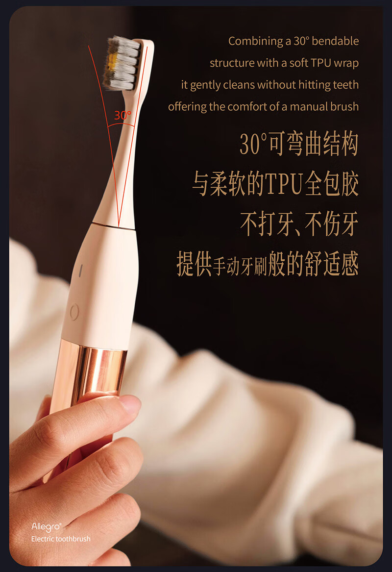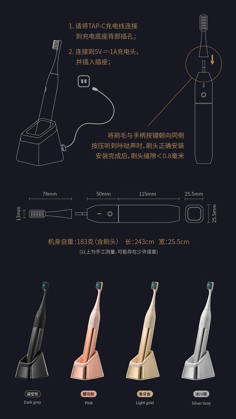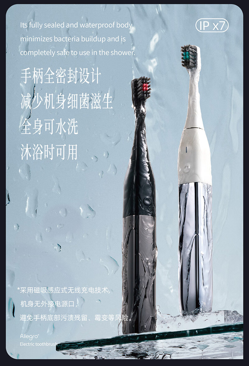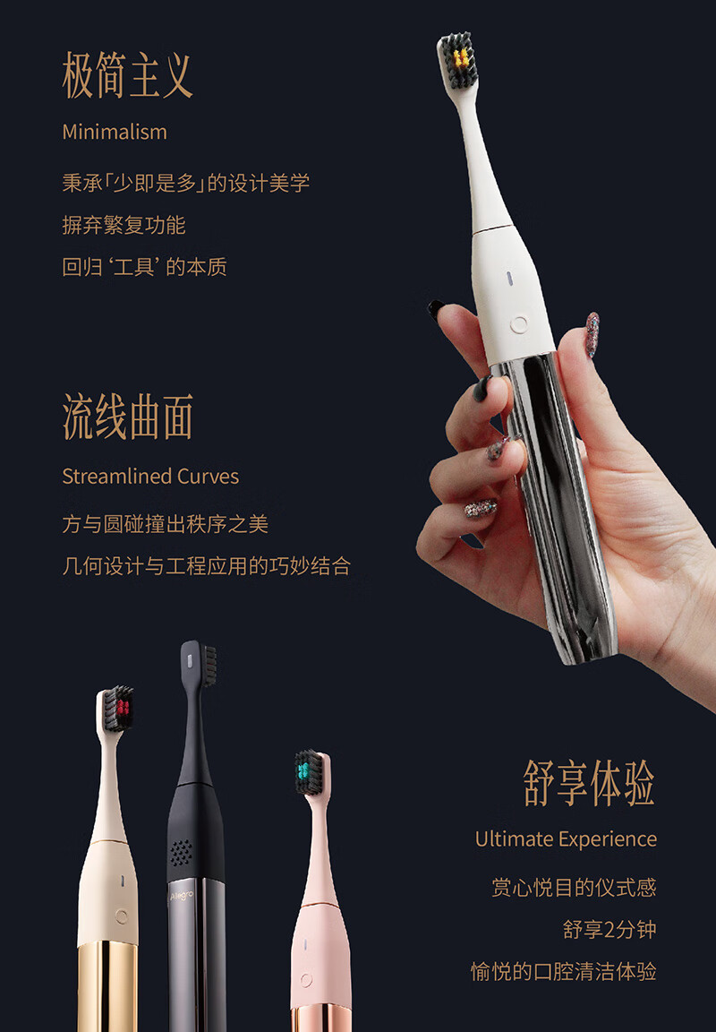 ALLEGRO爱丽歌官方正品简奢高端声波电动牙刷成人情侣款软毛家用自动深度清洁护龈送男女好礼生日结婚纪念 深空灰
