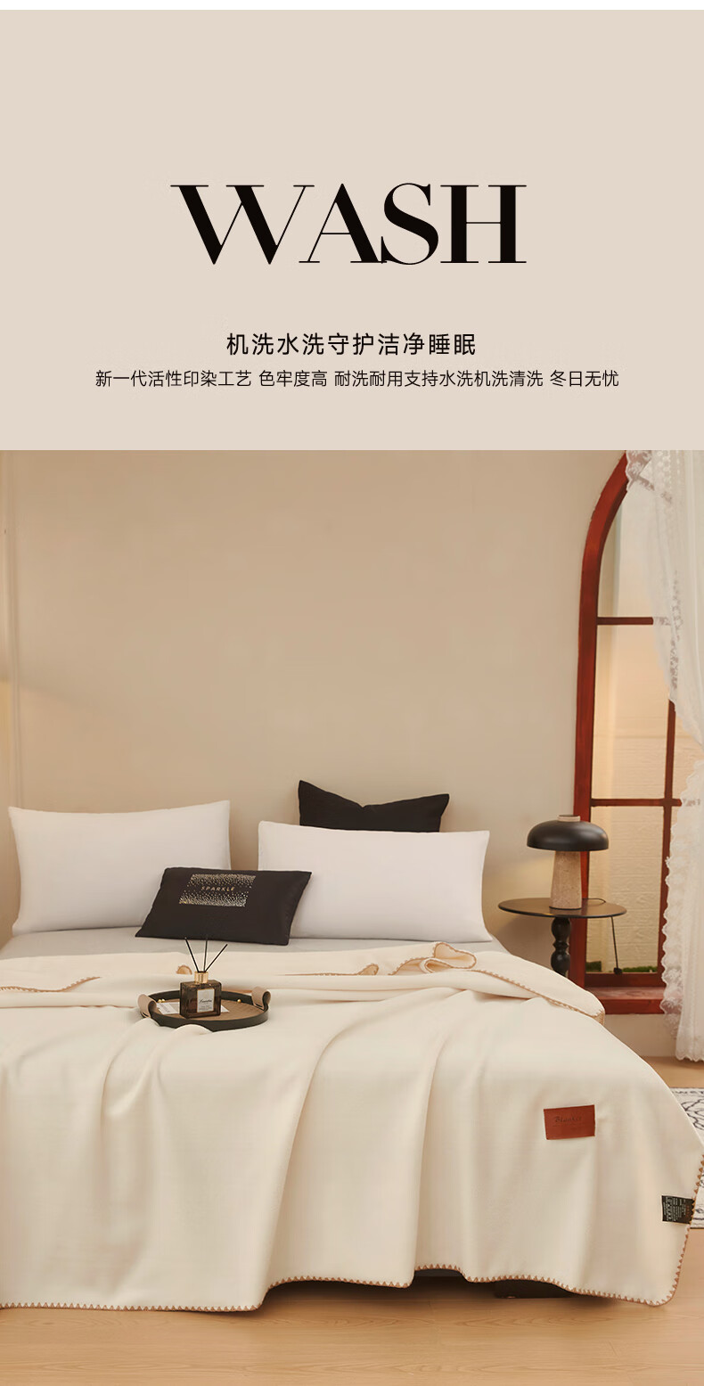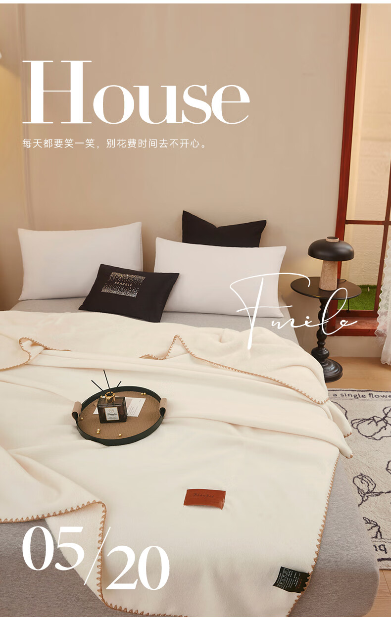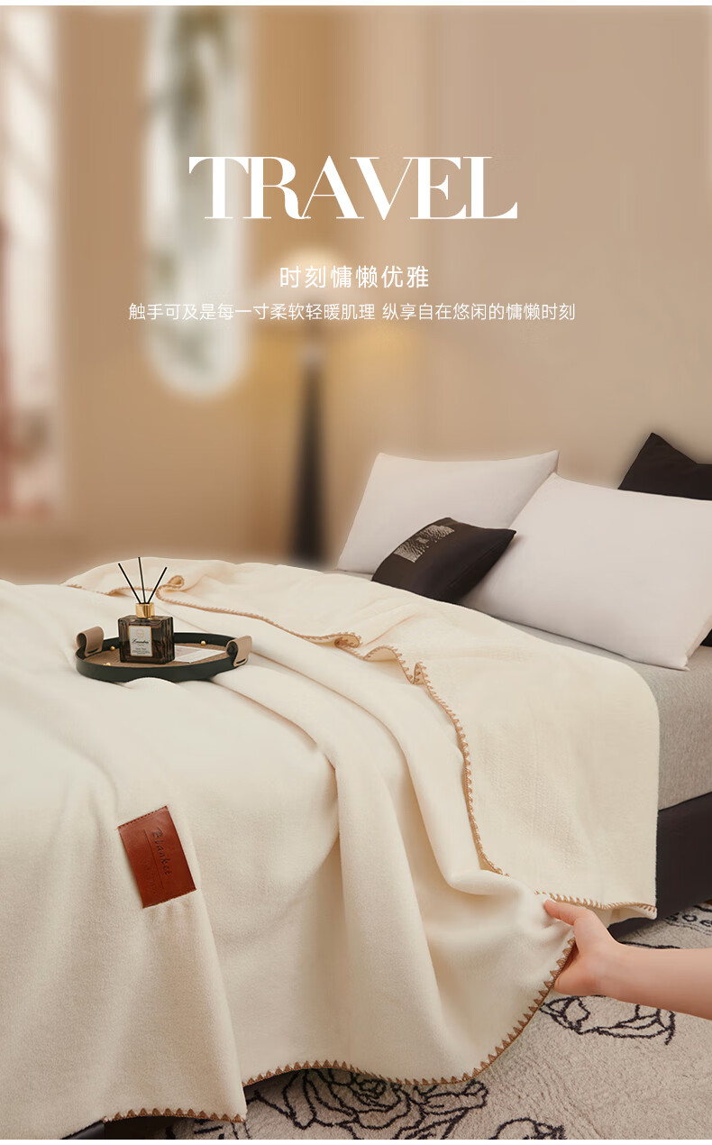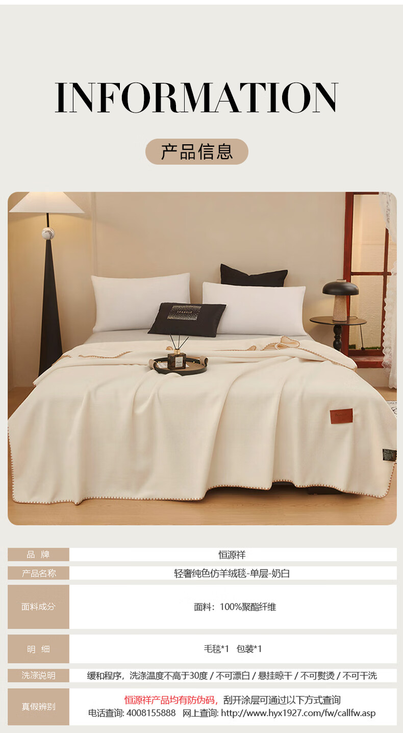 恒源祥A类轻奢纯色仿羊绒毯办公室披肩午睡毯空调毯沙发毯多功能毯子 奶白(单层) 230cm*200cm