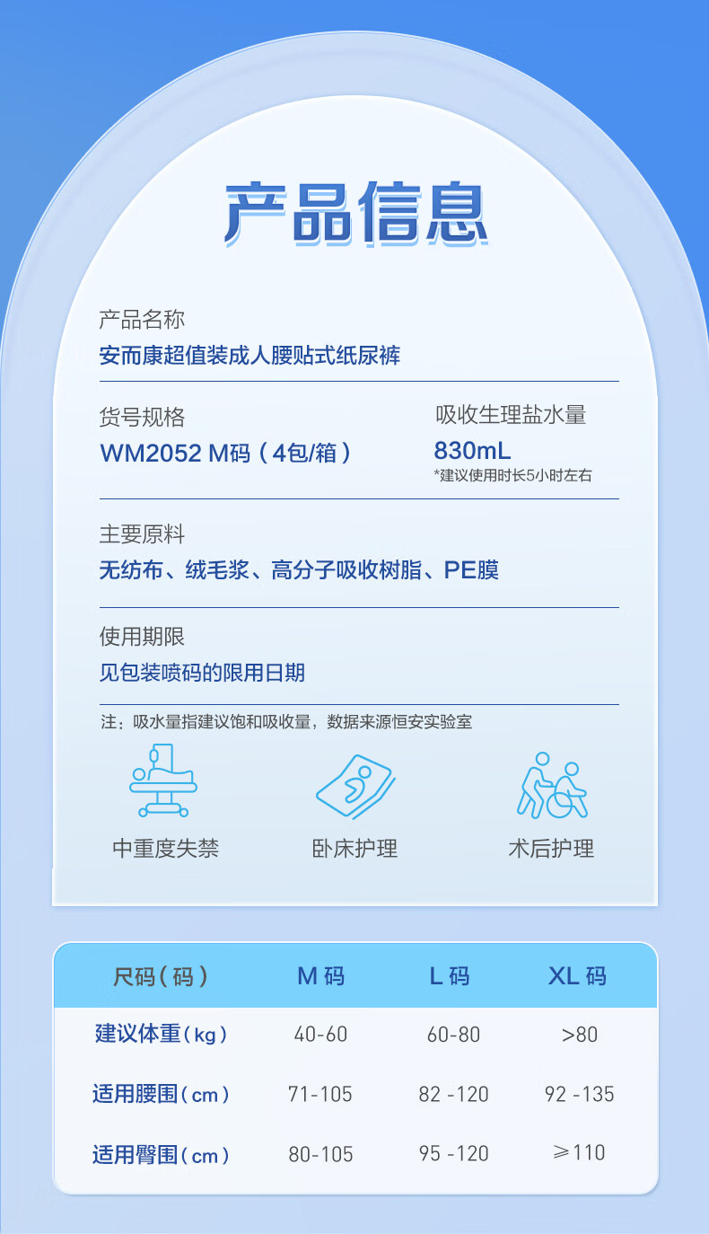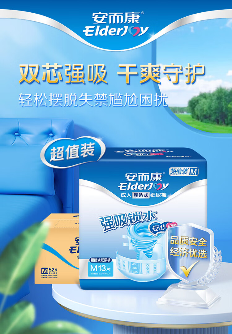 安而康(Elderjoy)超值装基础型成人纸尿裤M52片臀围80-105cm成人尿不湿老人腰贴式