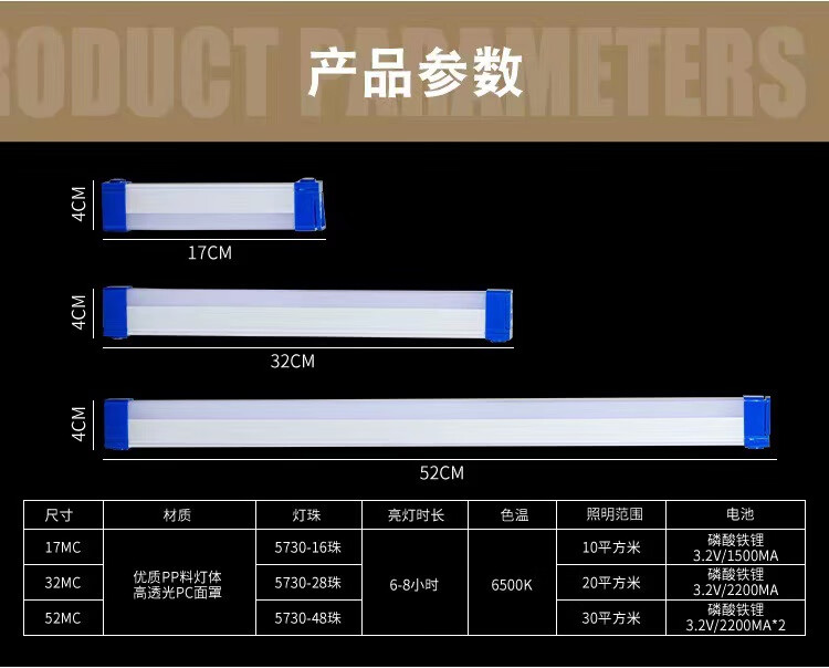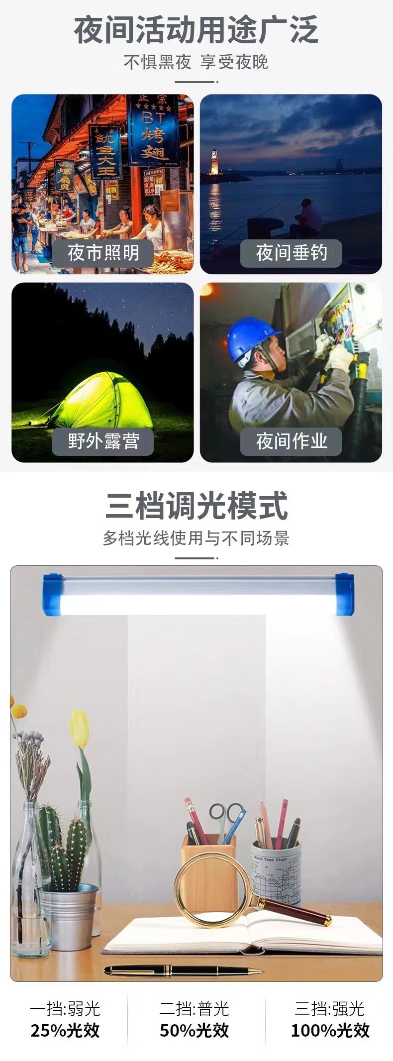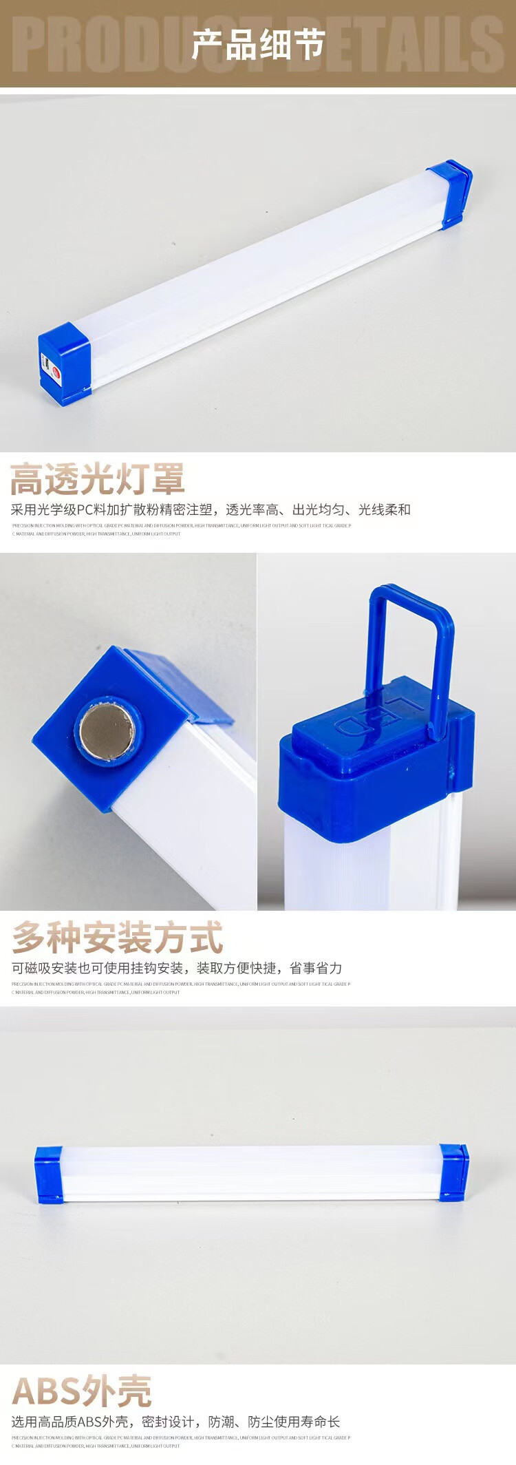 【精选好物】led充电灯管户外摆摊露营长条灯磁吸悬挂应急灯多功 白光1个装 一体化款17CM30W