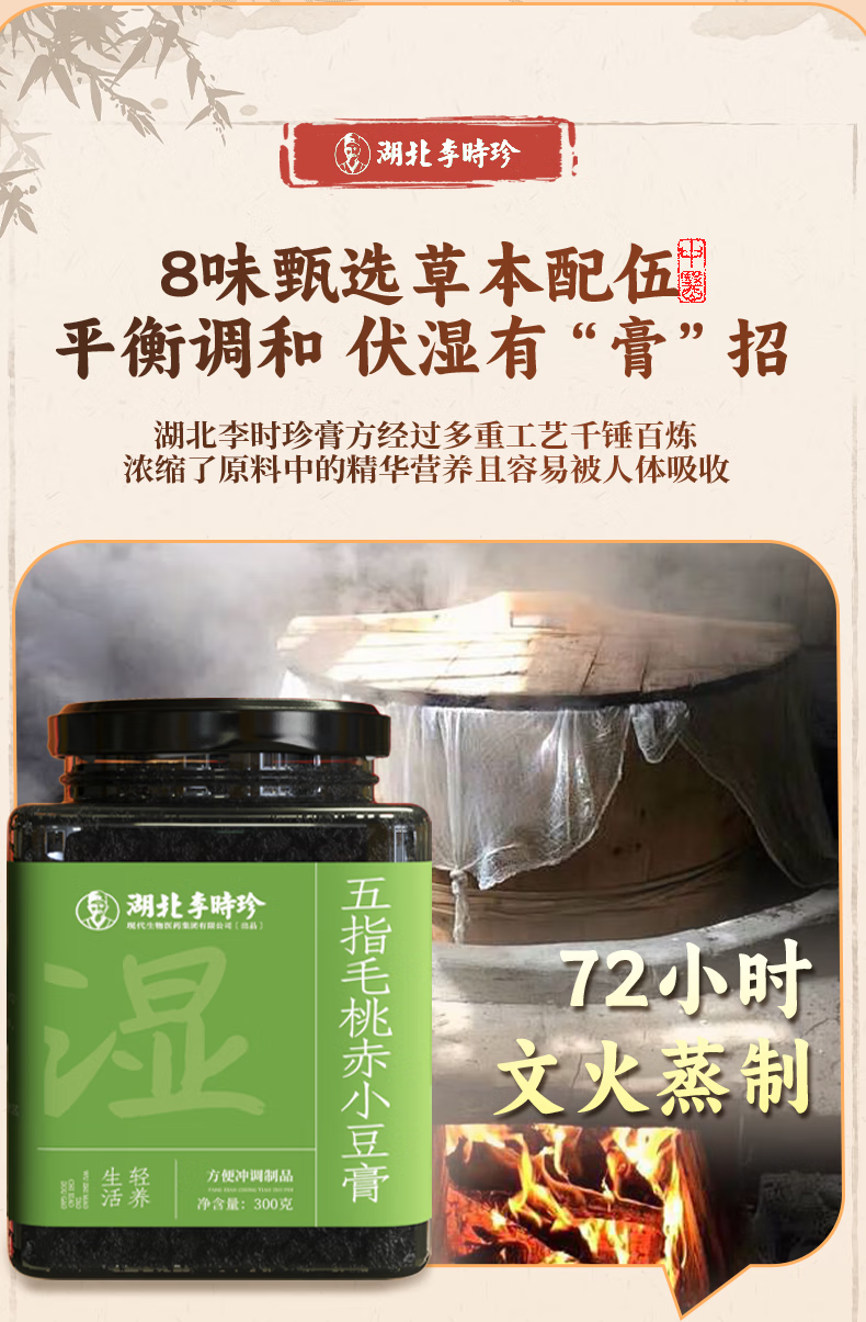 李时珍伏湿膏五指毛桃赤小豆祛湿茯湿膏茯苓膏轻湿膏养生脾胃湿寒瘦肚子 【巩固装】五指毛桃伏湿膏3瓶900g(价优+赠勺)