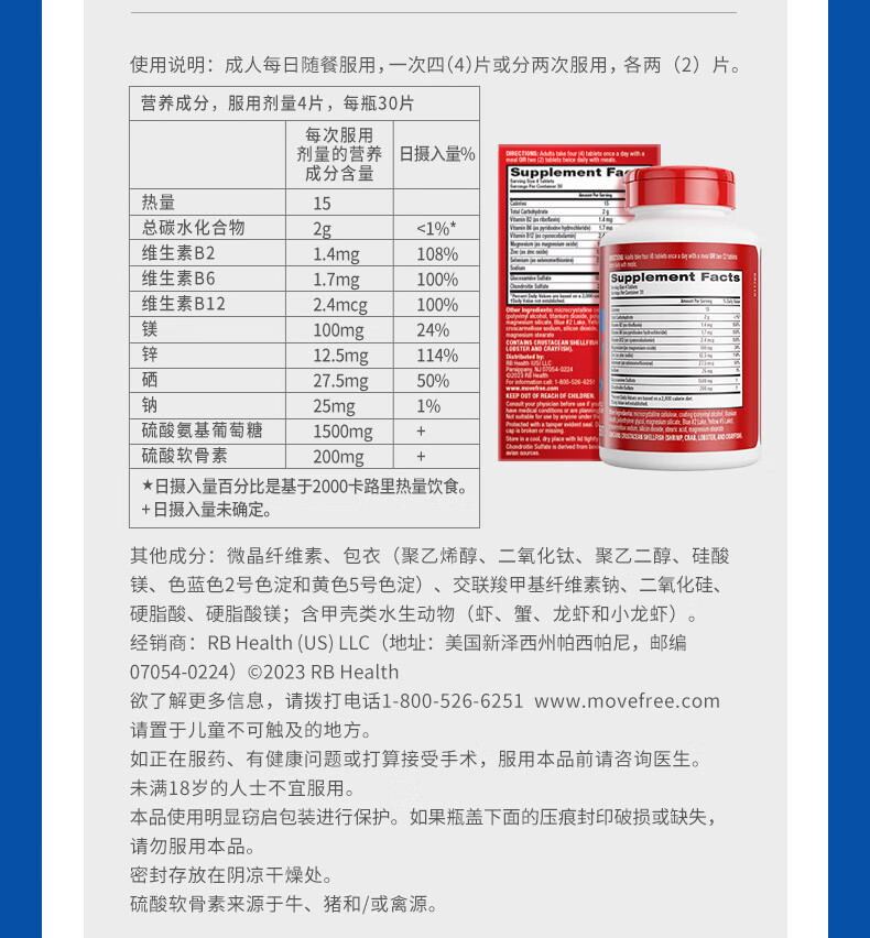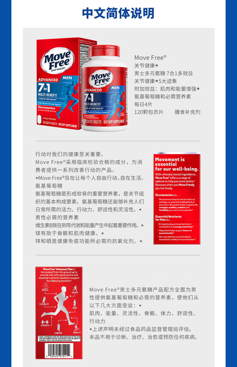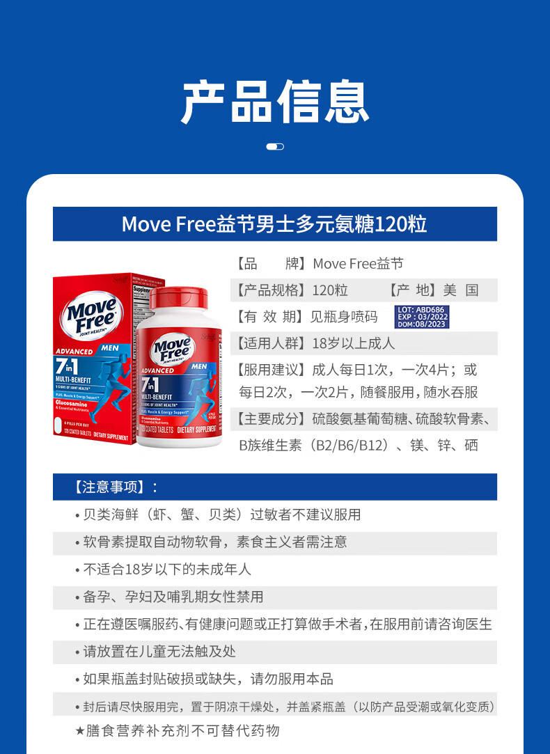 Move Free益节女士男士氨糖软骨素120粒 美国原装进口维骨力 成年中老年人 【女士氨糖】7效合1 活力养颜