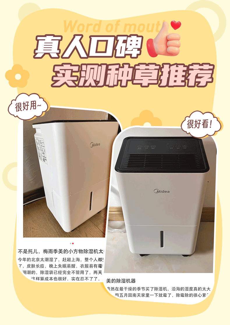 美的(Midea)除湿机 自营旗舰店家用轻音小型抽湿机12升干衣防潮回南天吸湿器CF12BD/N7-DO【李佳琦直播同款】