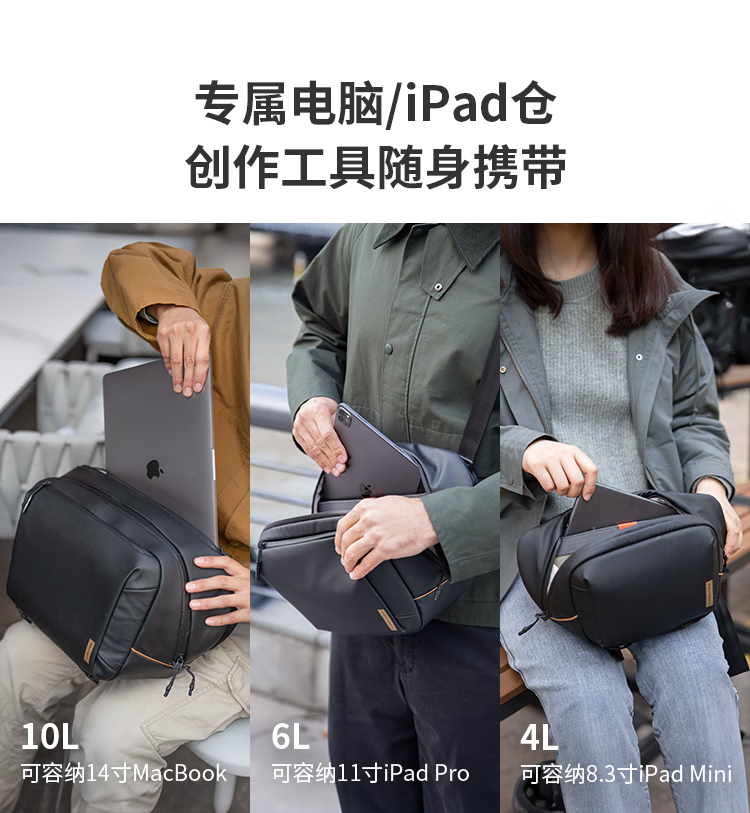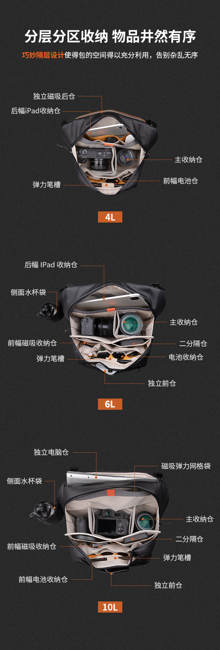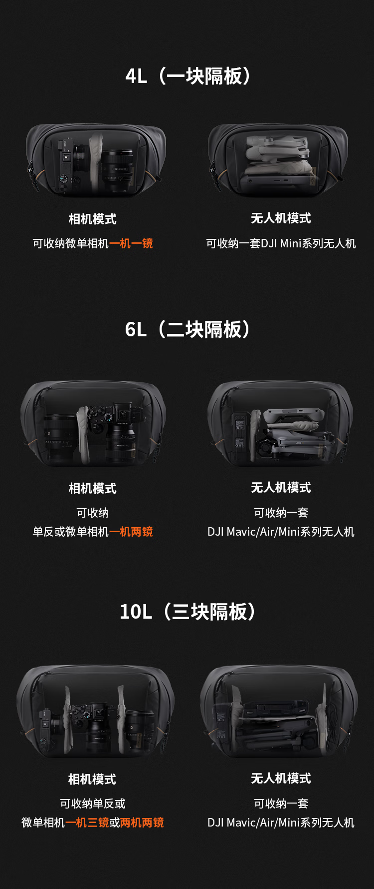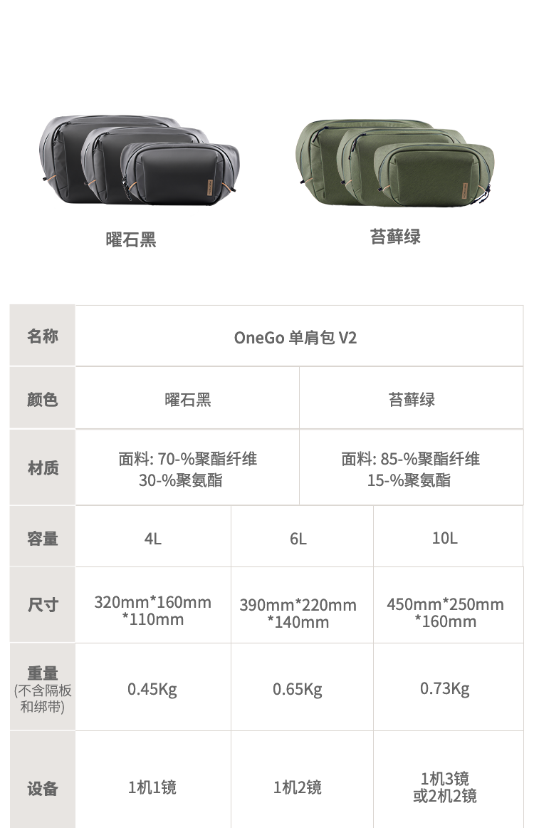 PGYTECH相机包OneGoV2单肩包蒲公英摄影包微单背包镜头内胆包斜挎单反相机包防水旅行便携包 曜石黑4L