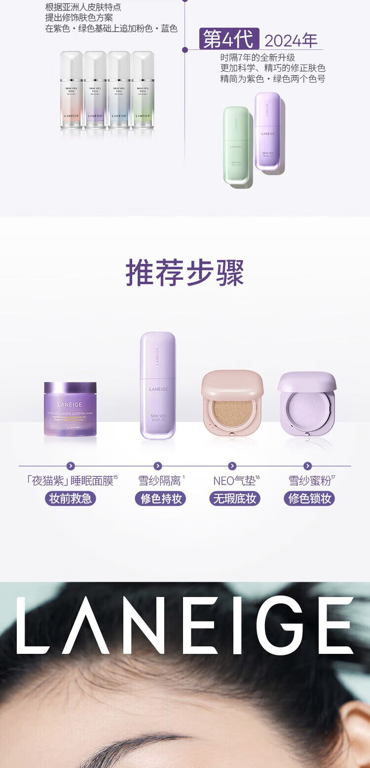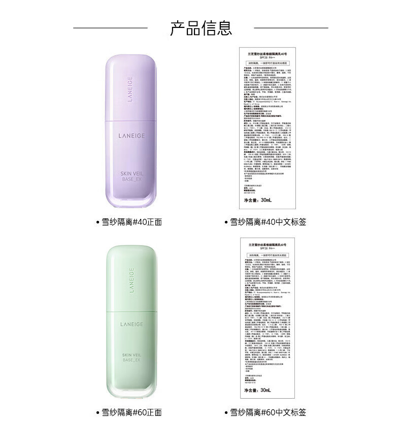 兰芝雪纱丝柔隔离霜双支装妆前乳防晒遮瑕30ml#40紫色圣诞礼物送女友