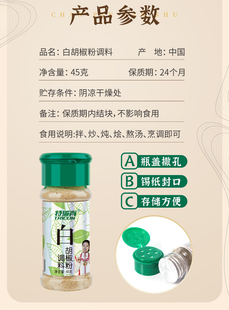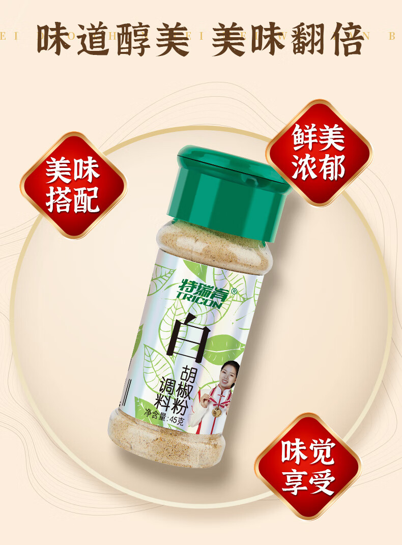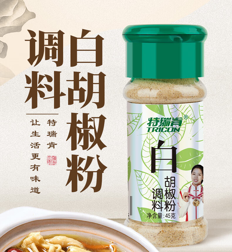 特瑞肯(TRICON)白胡椒面胡椒粉配料干净烧烤炒菜凉拌煲汤牛排火锅烤串调味品45g