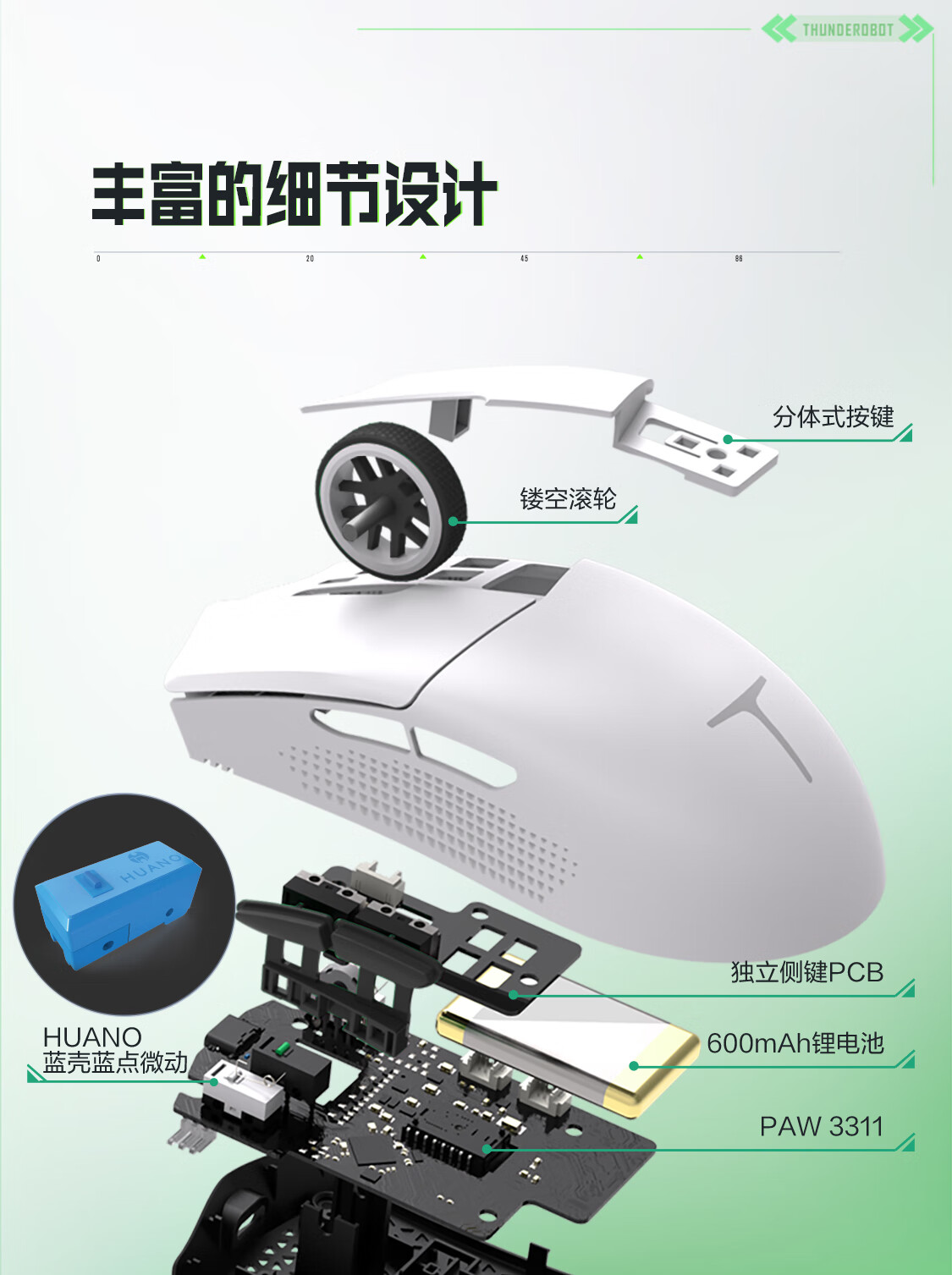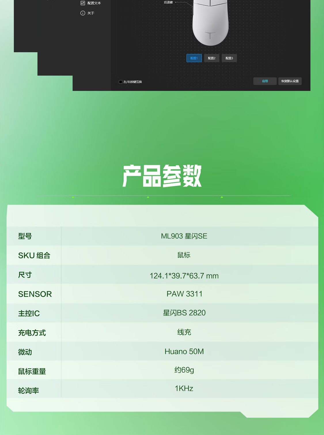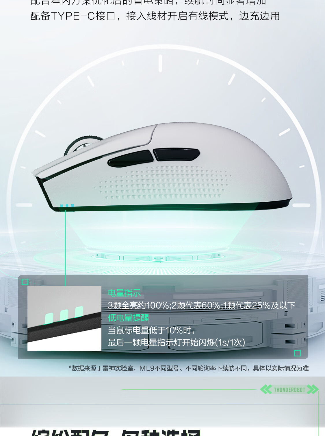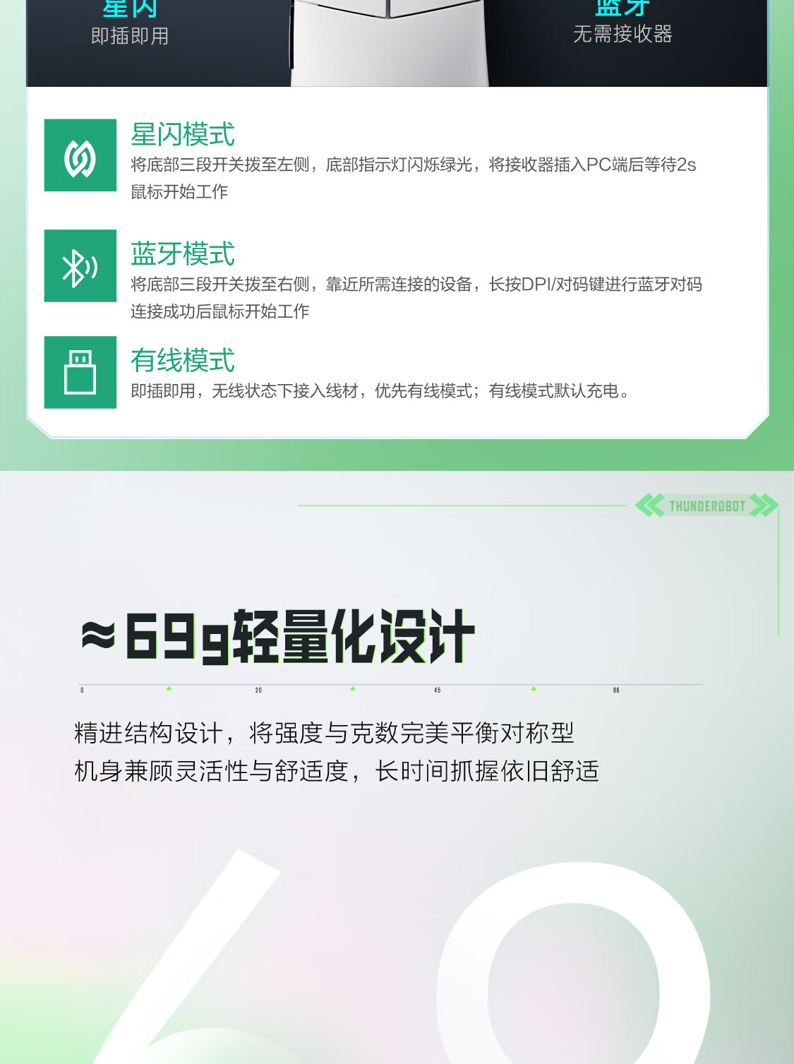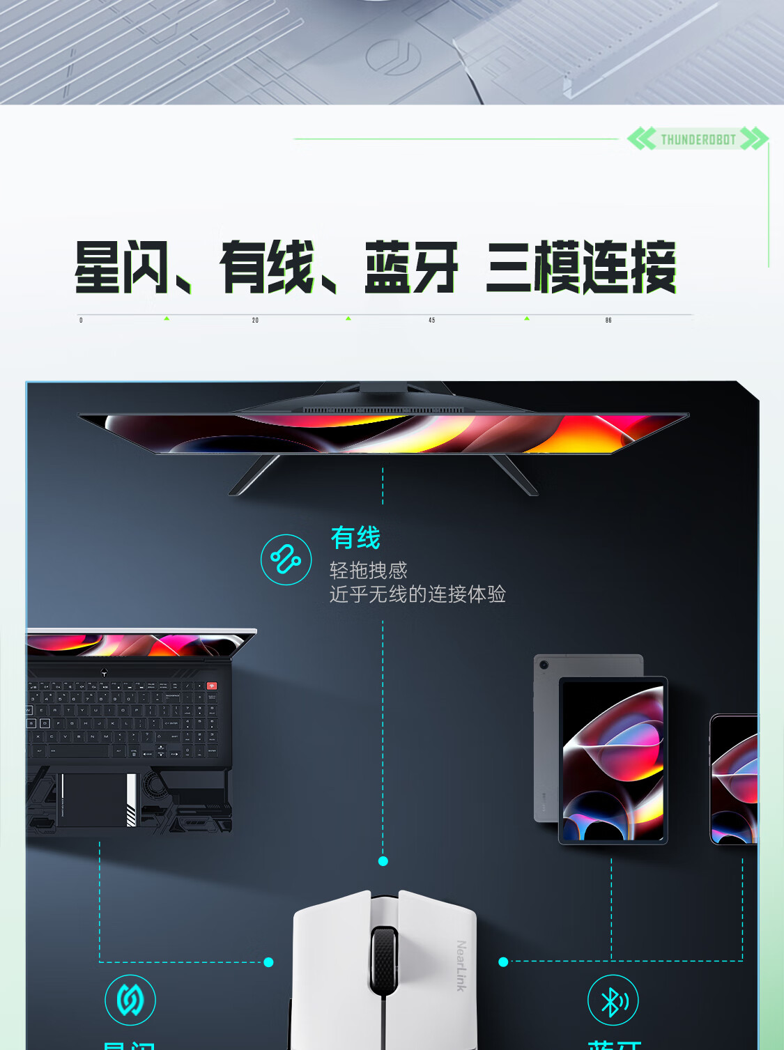 雷神(ThundeRobot)ML903星闪SE 无线游戏鼠标电竞办公鼠标 有线蓝牙星闪三模无孔轻量化人体工学鼠标无畏契约 黛青蓝