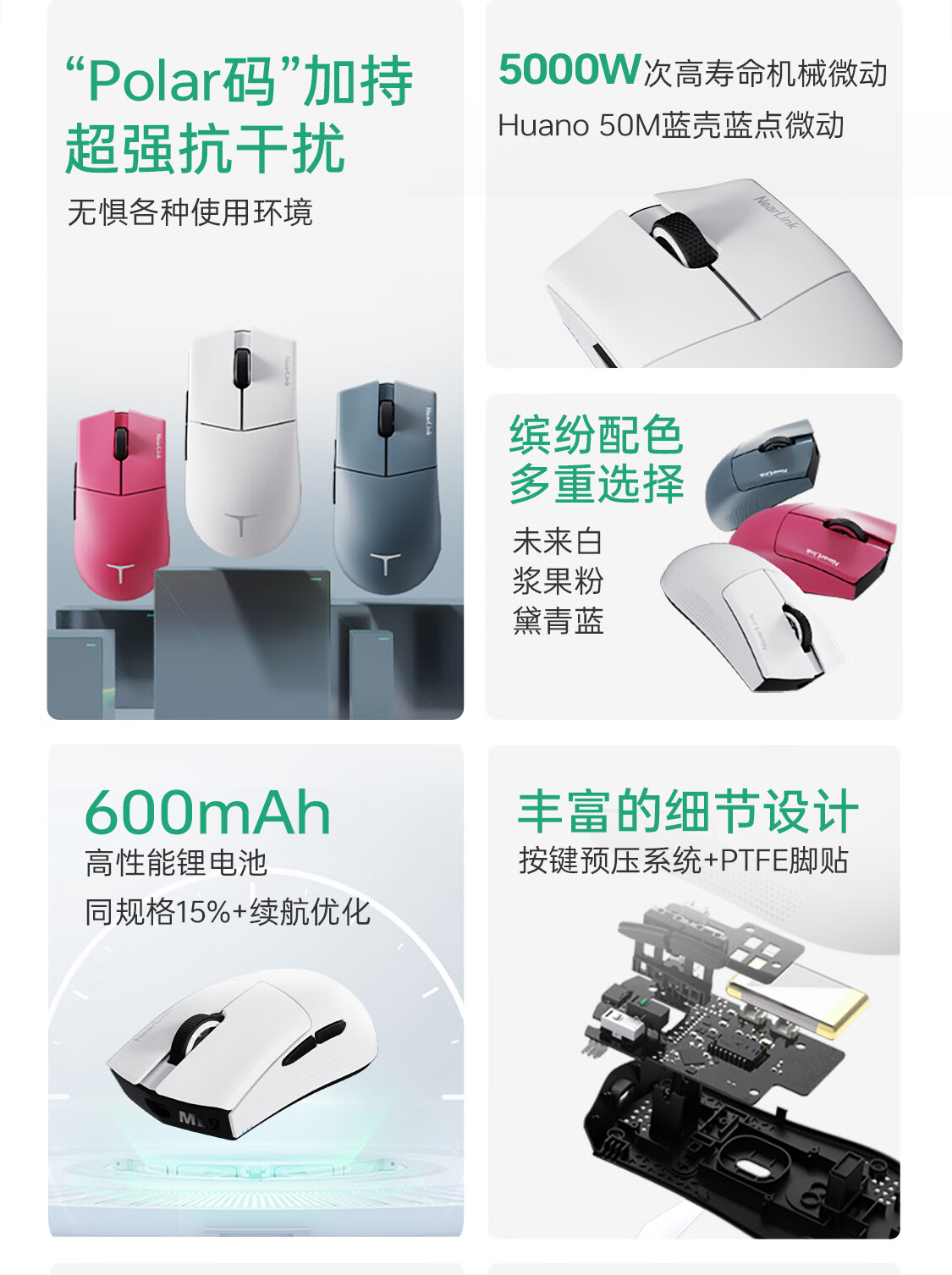 狼途M8max无线三模鼠标蓝牙有线PAW3311可充电长续航轻量化人体工学电竞笔记本电脑办公中大手外设鼠标 白色-MAX版(1000mAh)送鼠标垫+防滑贴