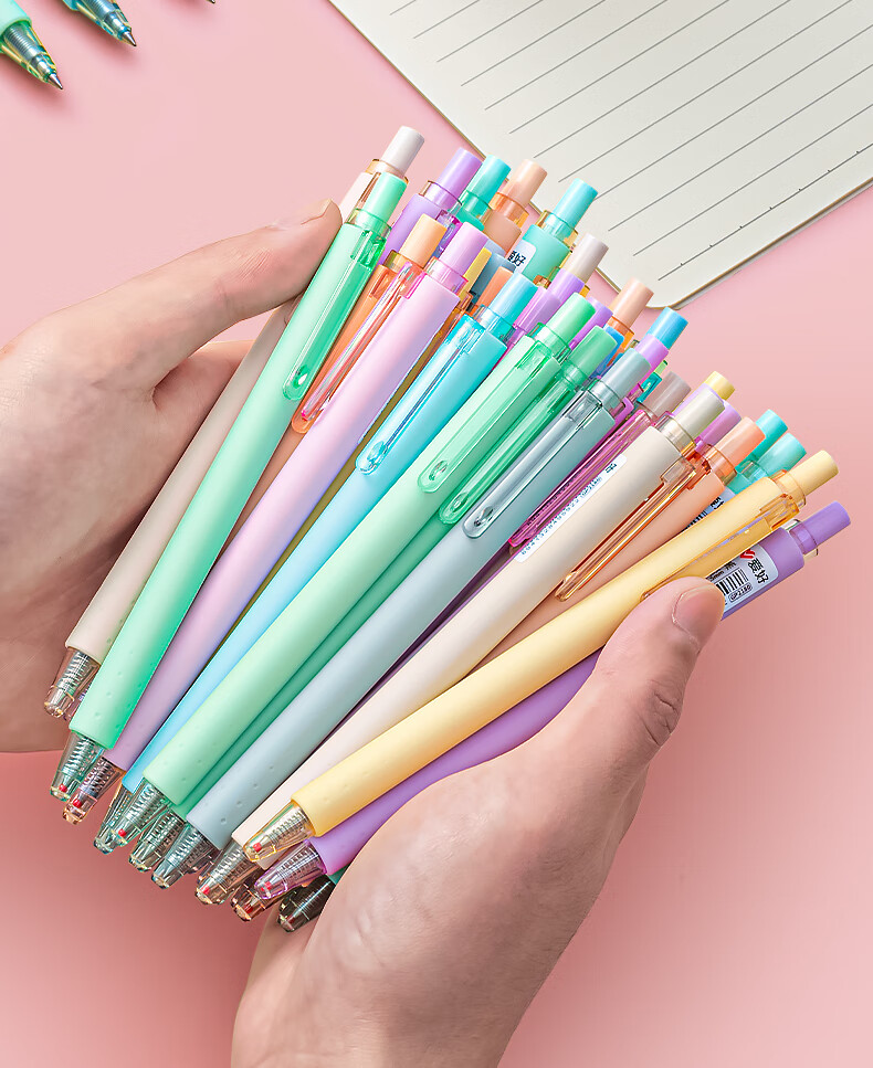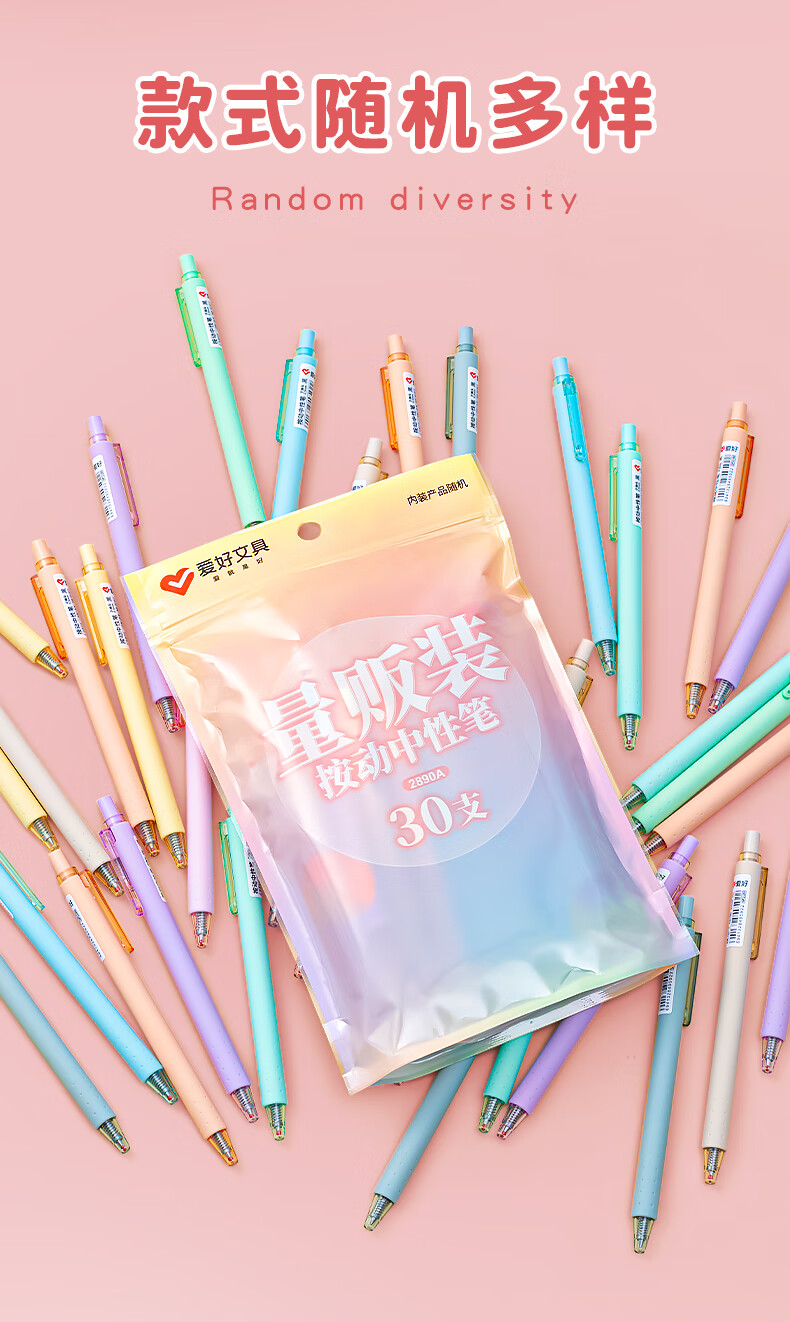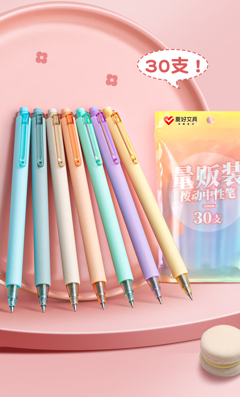 爱好(AIHAO)中性笔0.5mm子弹头碳素黑笔办公用签字笔0.35学生高颜值考试刷题笔水性直液式签字笔 随机【拔帽+按动】30支