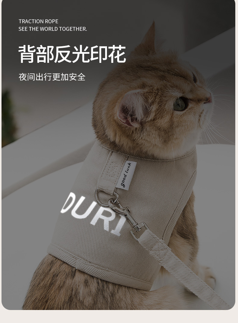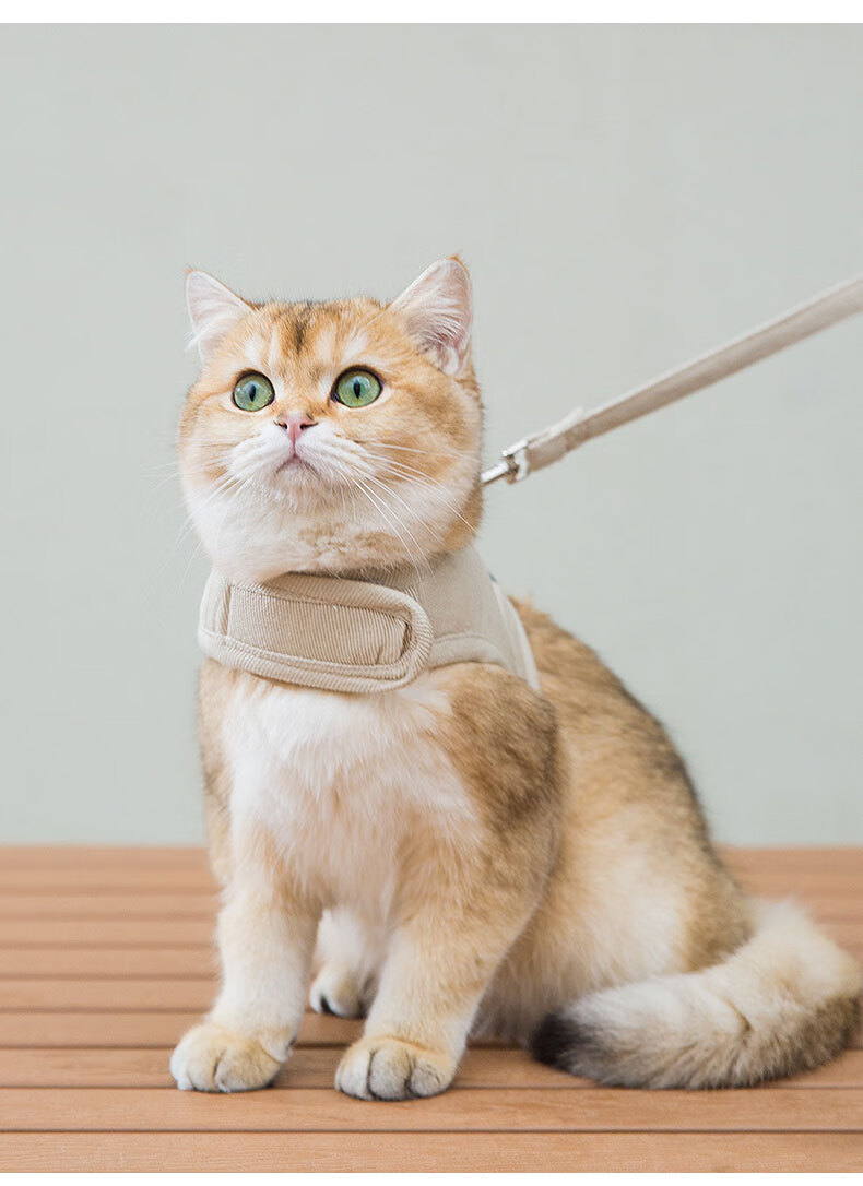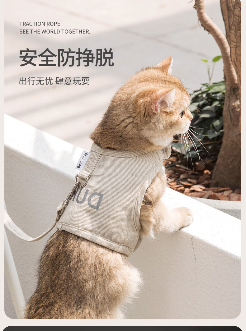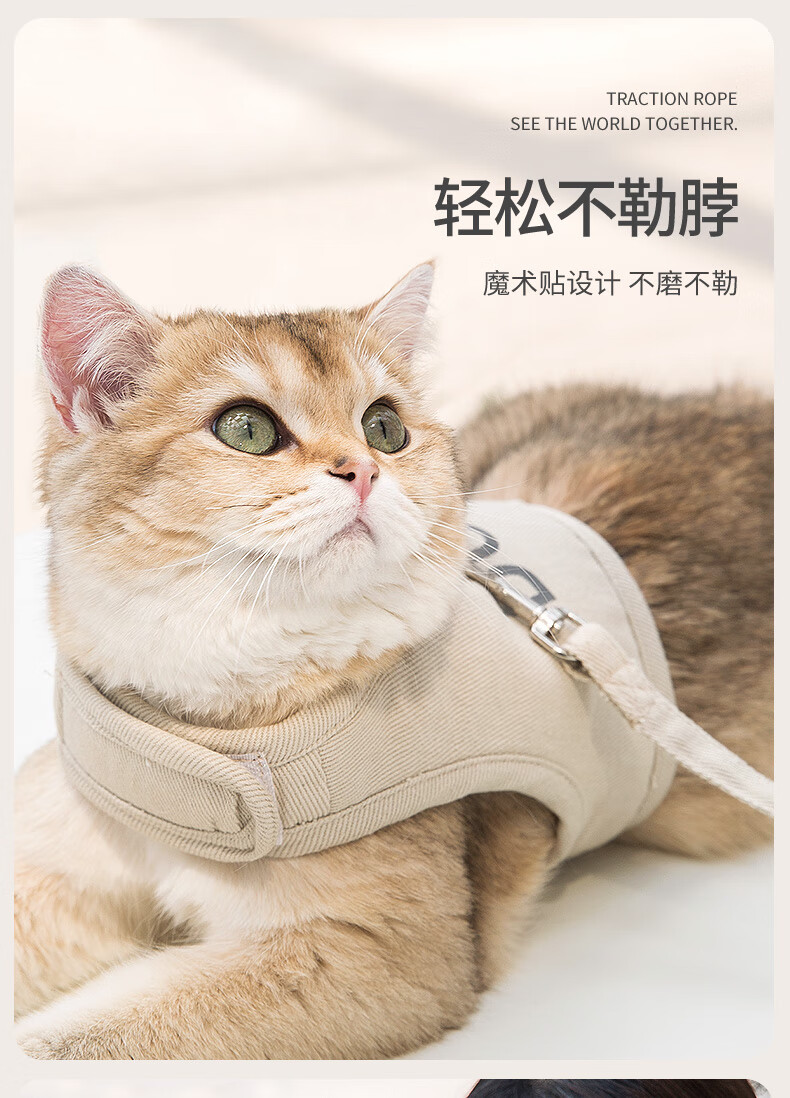 欢宠网猫咪牵引绳猫绳宠物防挣脱可调松紧背心式专用溜遛猫绳子外出用品