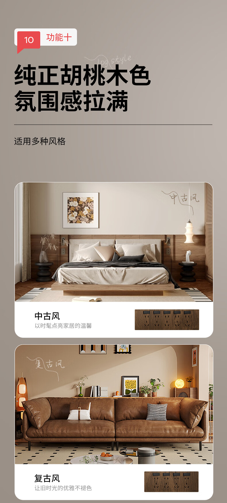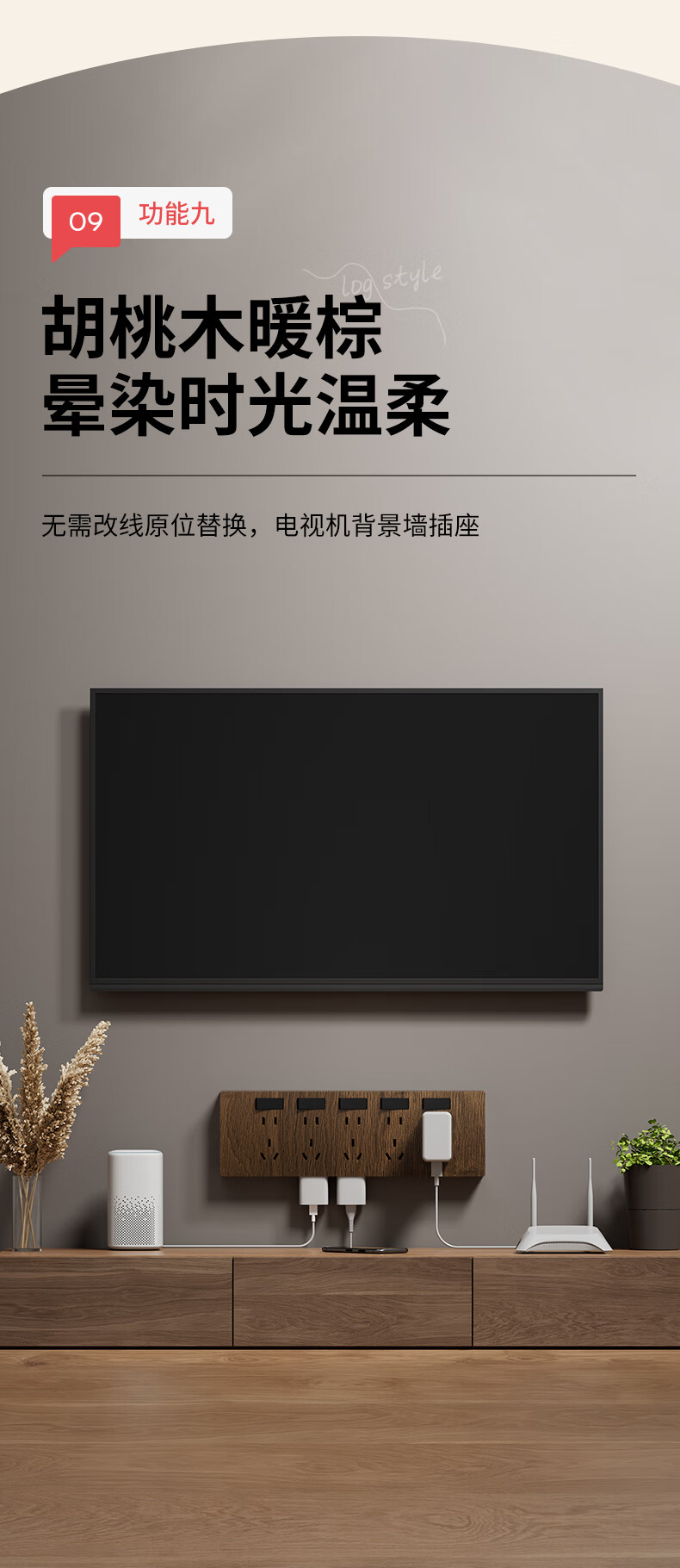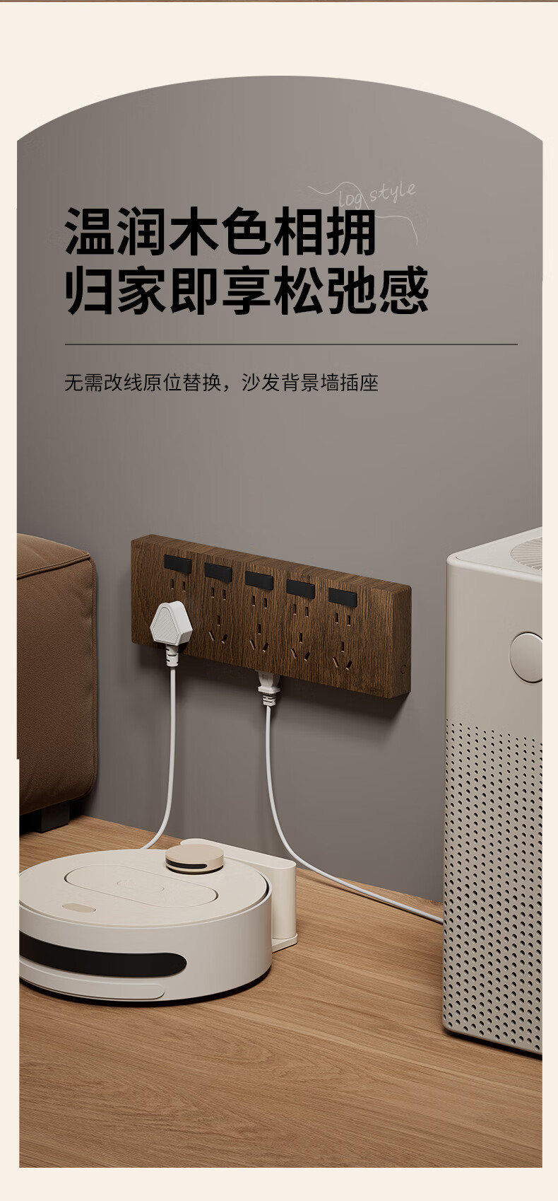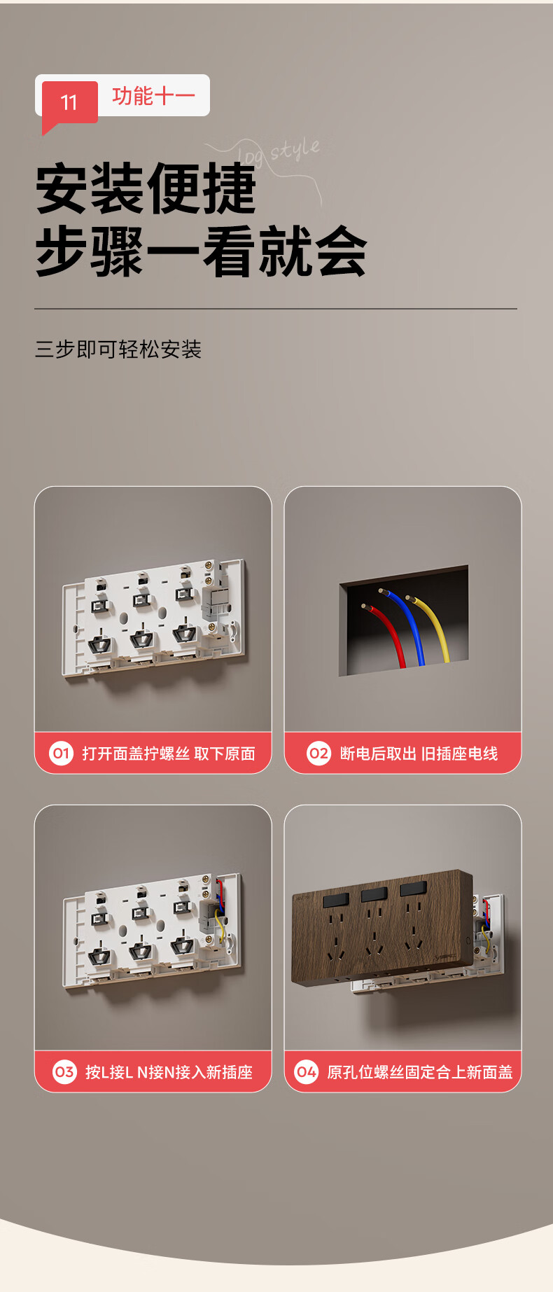国际电工86型复古木纹扩展插座厨房墙壁多孔位开关原位替换无线转换插排 胡桃木色-三开21孔-左接线