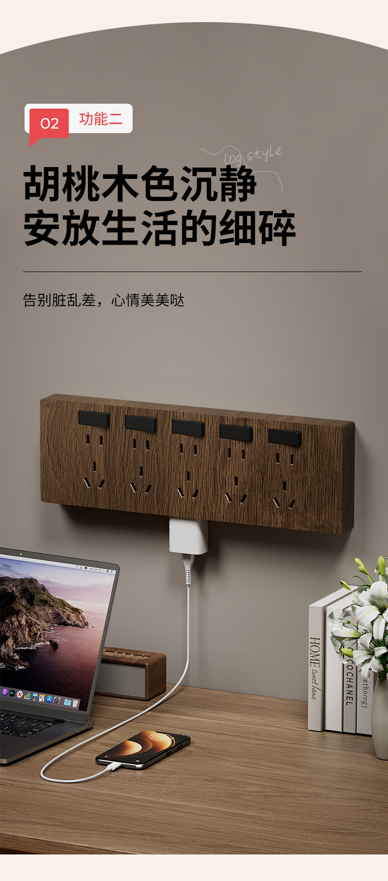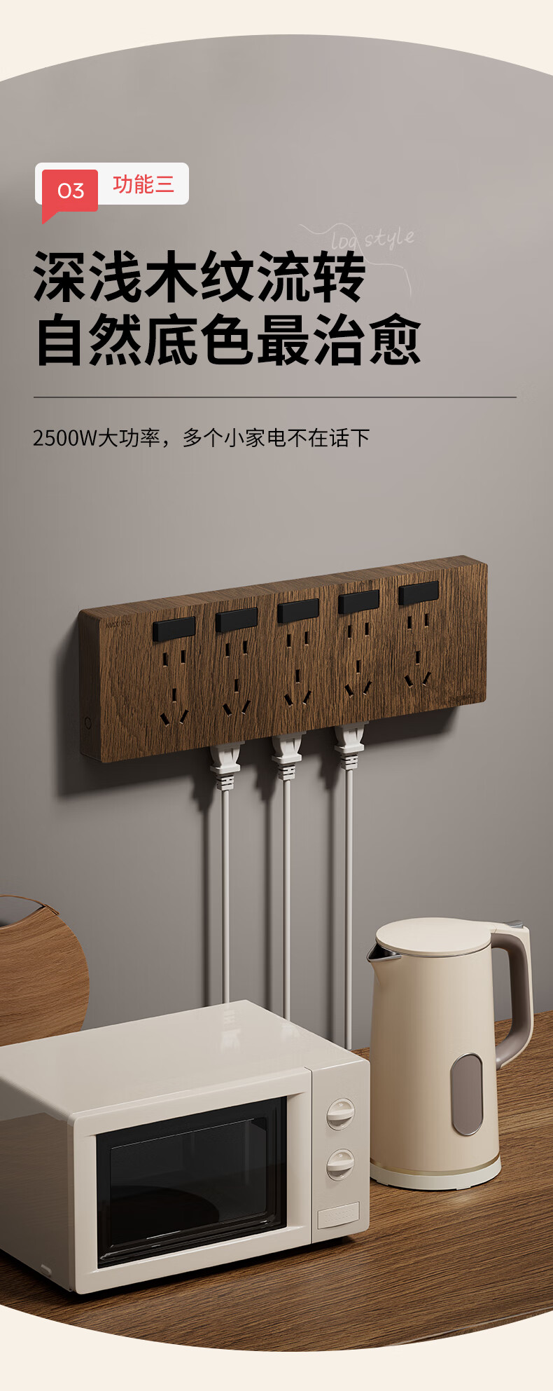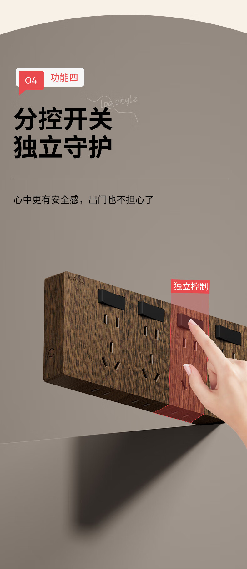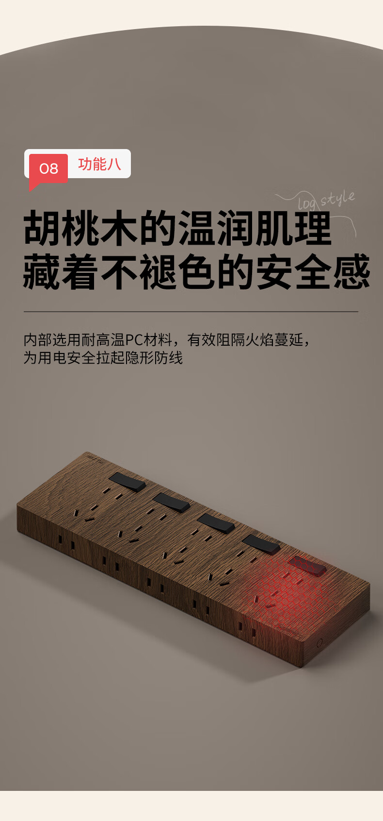 国际电工86型复古木纹扩展插座厨房墙壁多孔位开关原位替换无线转换插排 胡桃木色-三开21孔-左接线
