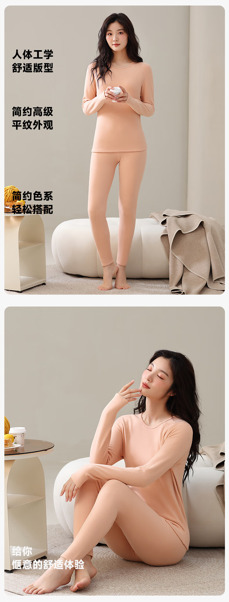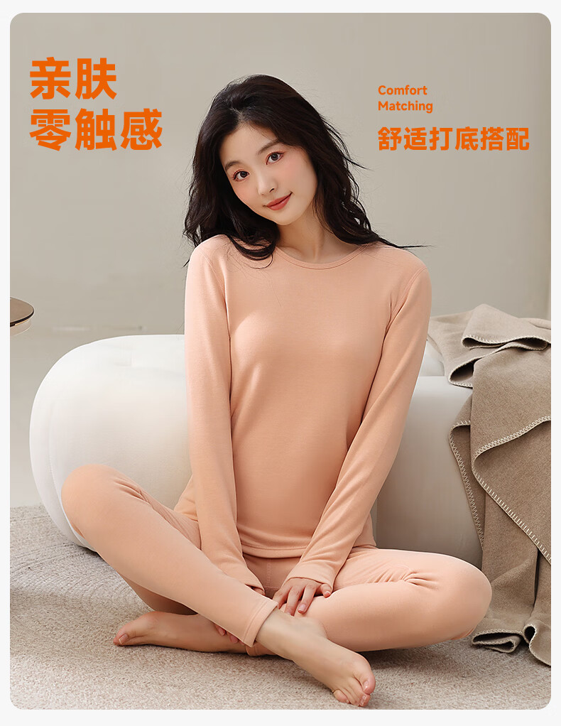 香蜜闺秀男女士纯色加厚秋冬季长袖秋衣秋裤保暖内衣男女套装 24405052浅紫 L