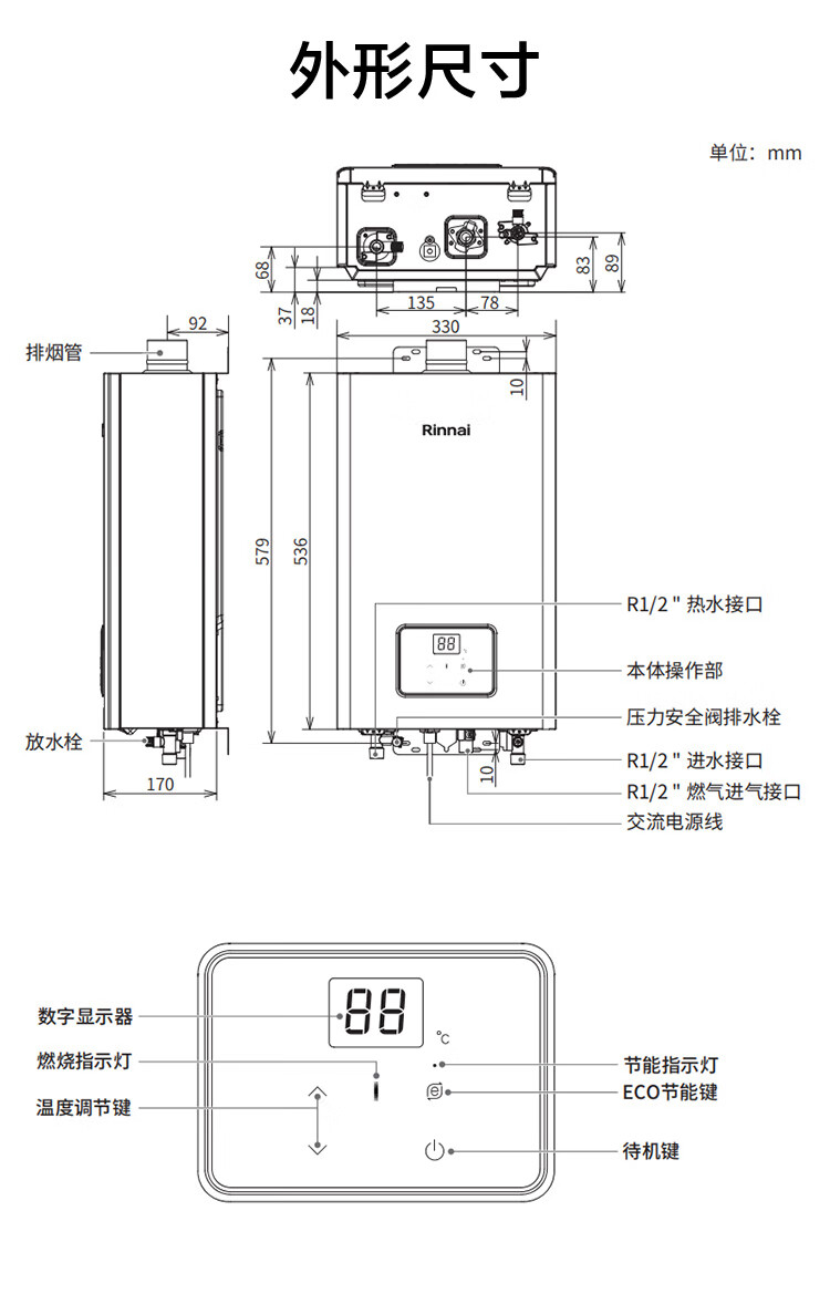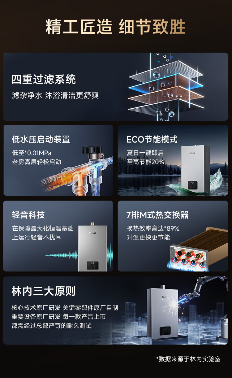 林内(Rinnai)【小蛮腰Pro plus】燃气热水器天然气16升 家用彩钢面板超薄芯 16GD33 16L 小蛮腰Pro plus 升级五维恒温