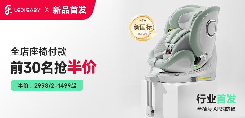 ledibaby乐蒂宝贝婴儿童安全座椅0-4-12岁汽车用宝宝座椅车载可坐躺 太空舱Pro+官配版【月影灰】