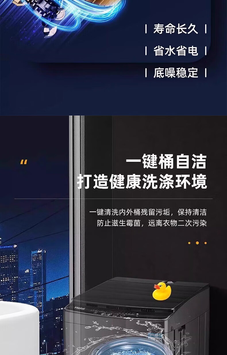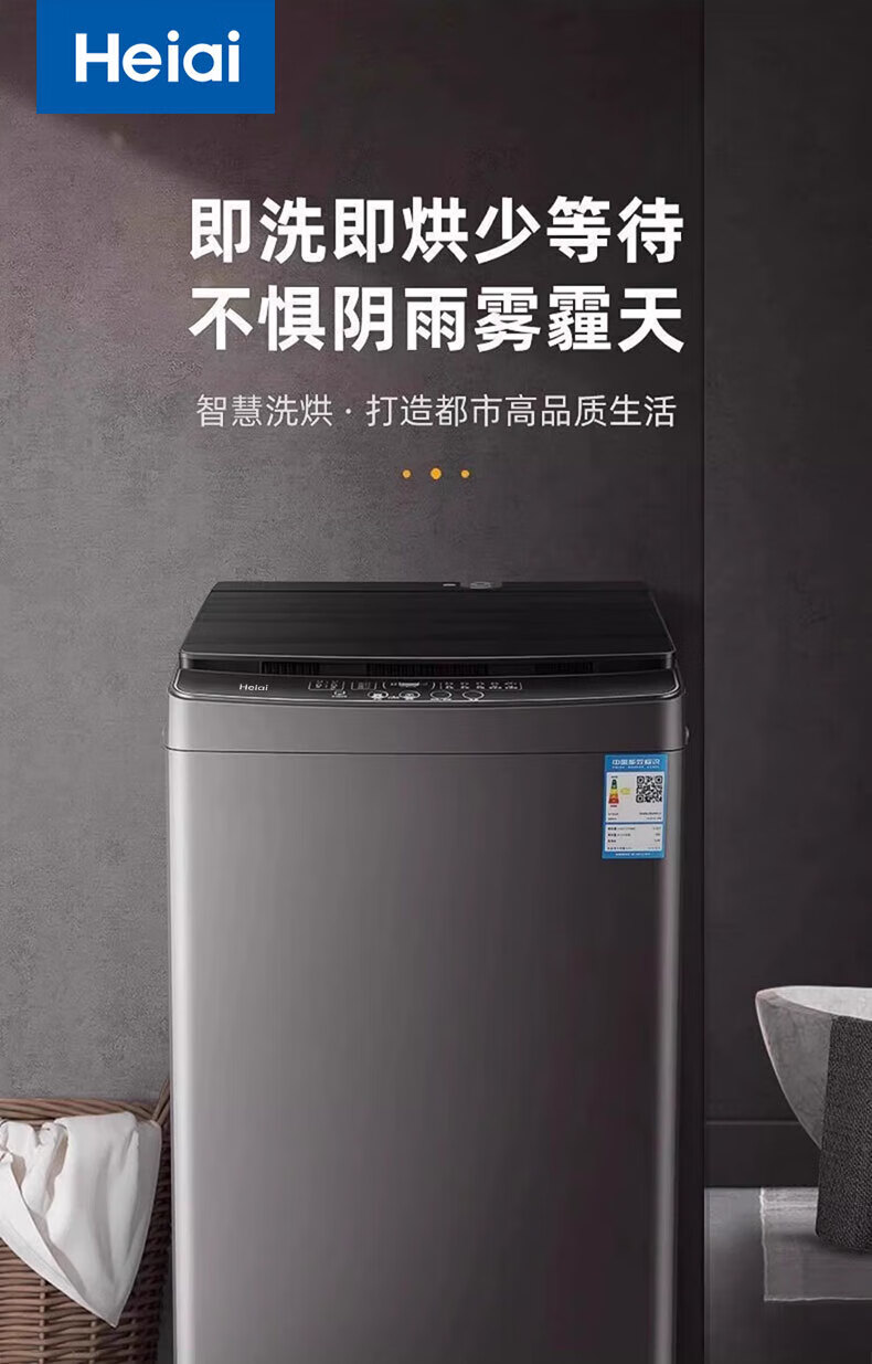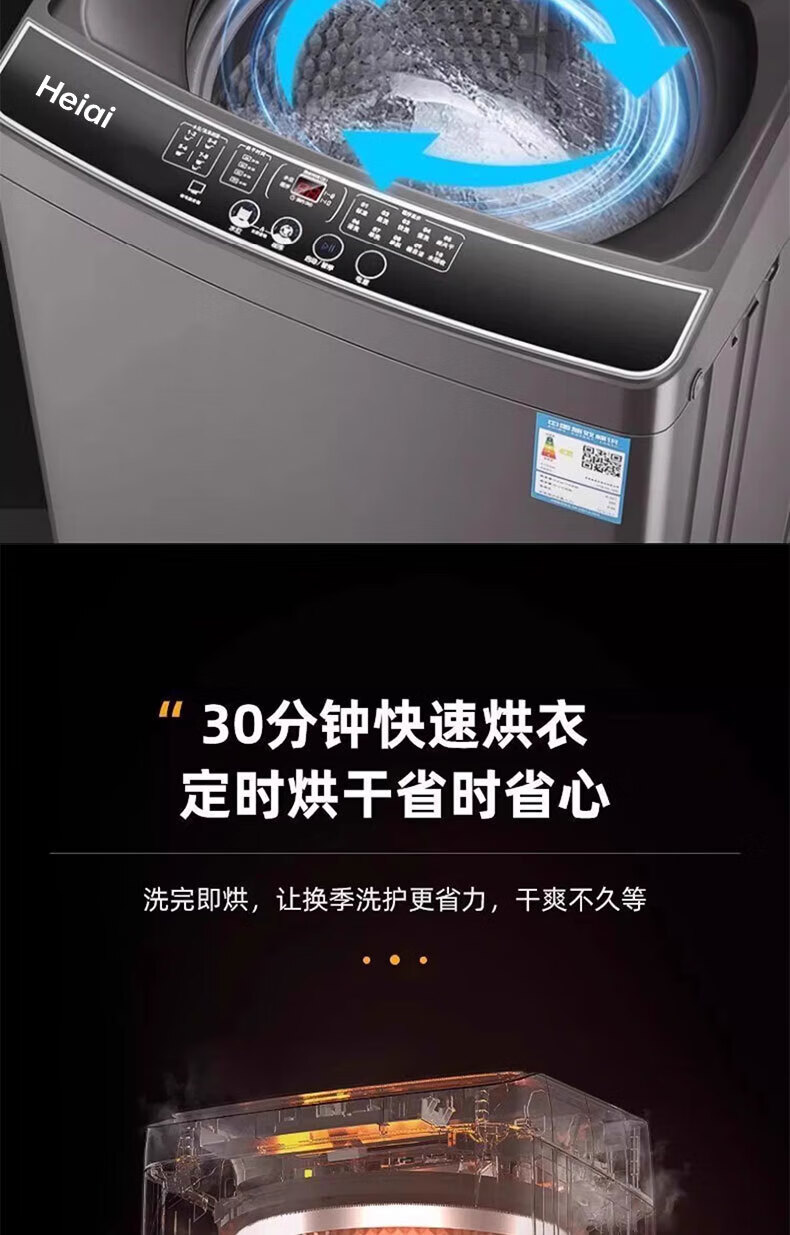 Heiai洗衣机全自动新一级能效家商两用波轮大容量 洗脱烘一体蓝光洗护防缠绕 16KG【升级节能+蓝光风干+强劲动力】