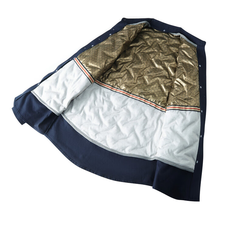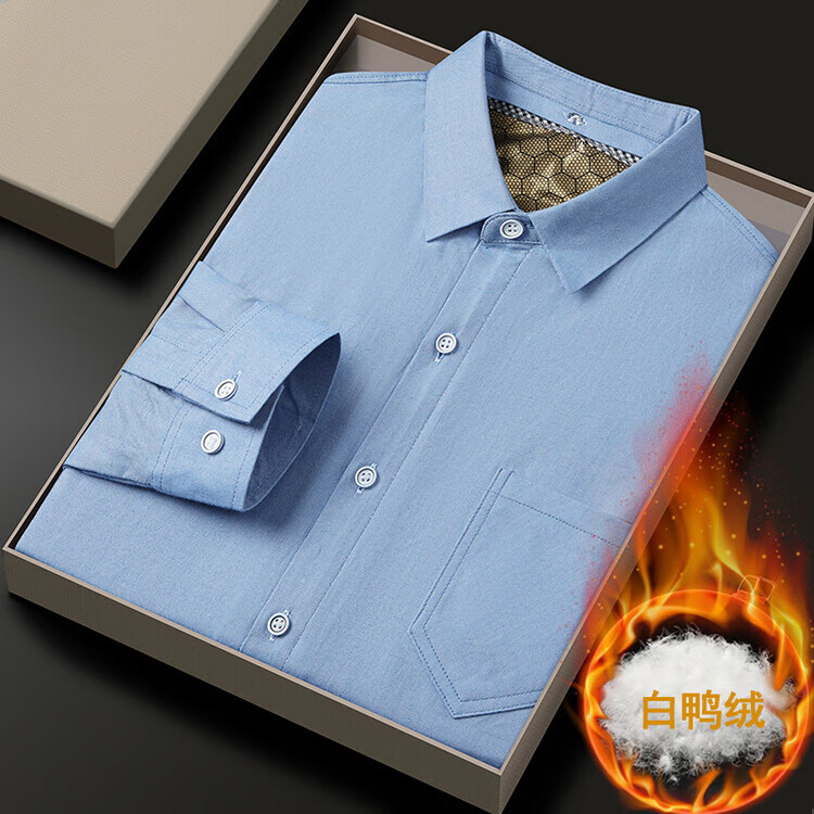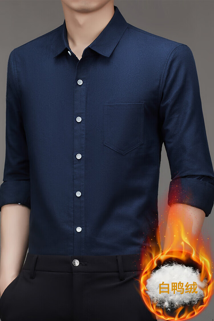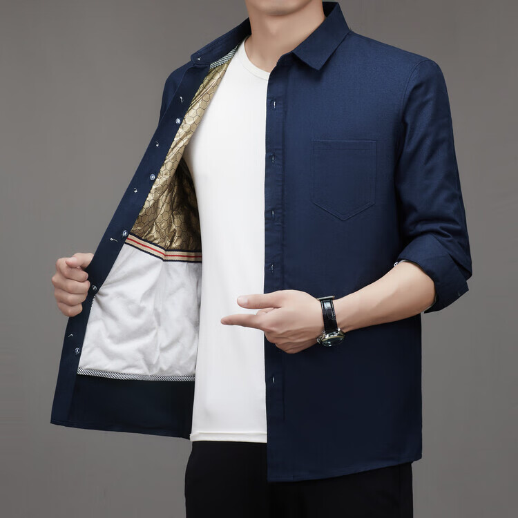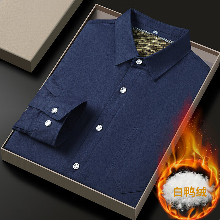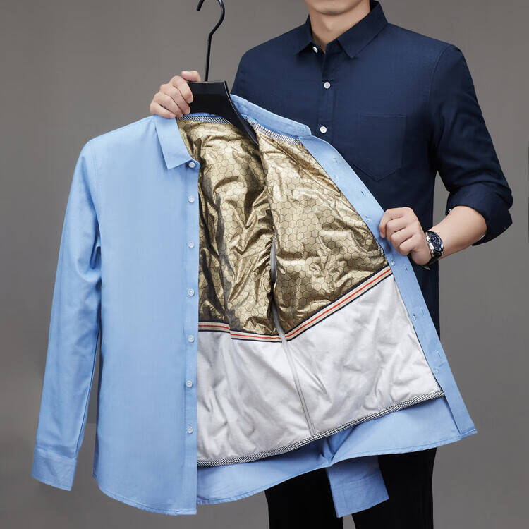皮尔卡丹(pierre cardin)冬季新款羽绒衬衫男冬季加厚可拆卸内胆90白鸭绒男士条纹长袖衬衣 藏青色 M 165/88A