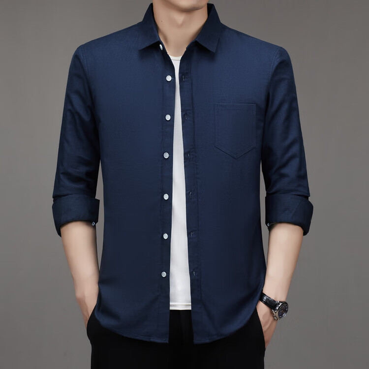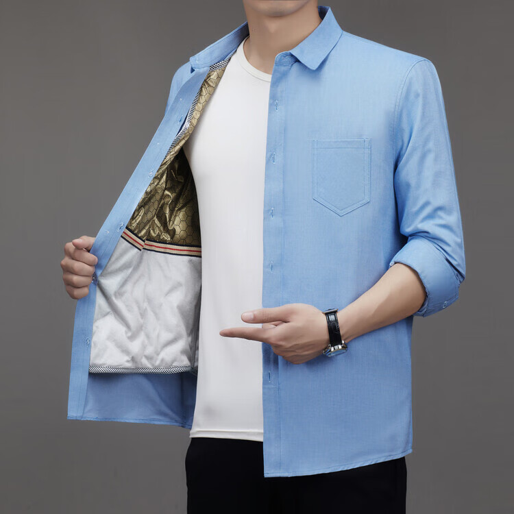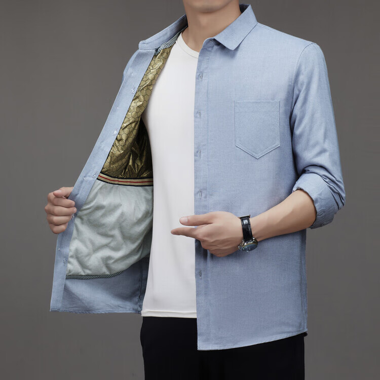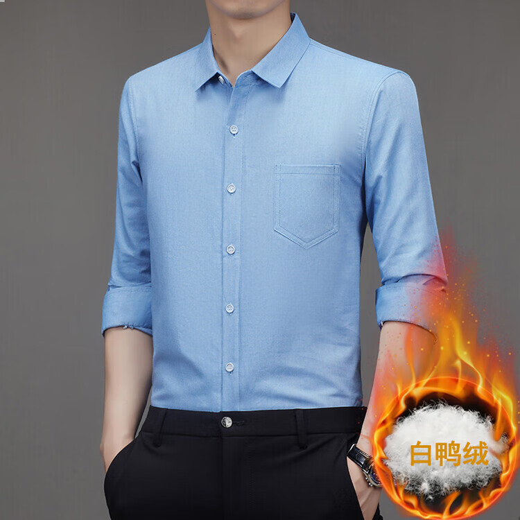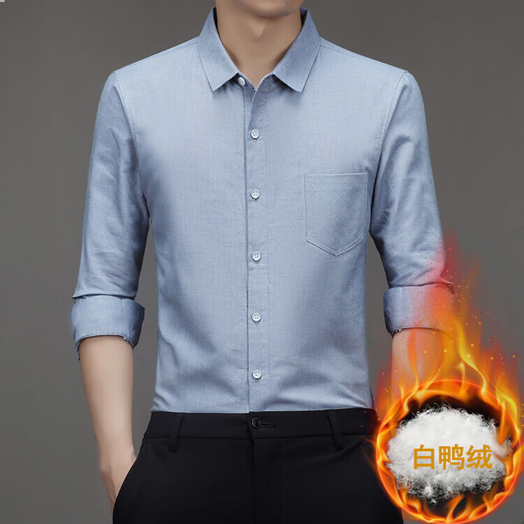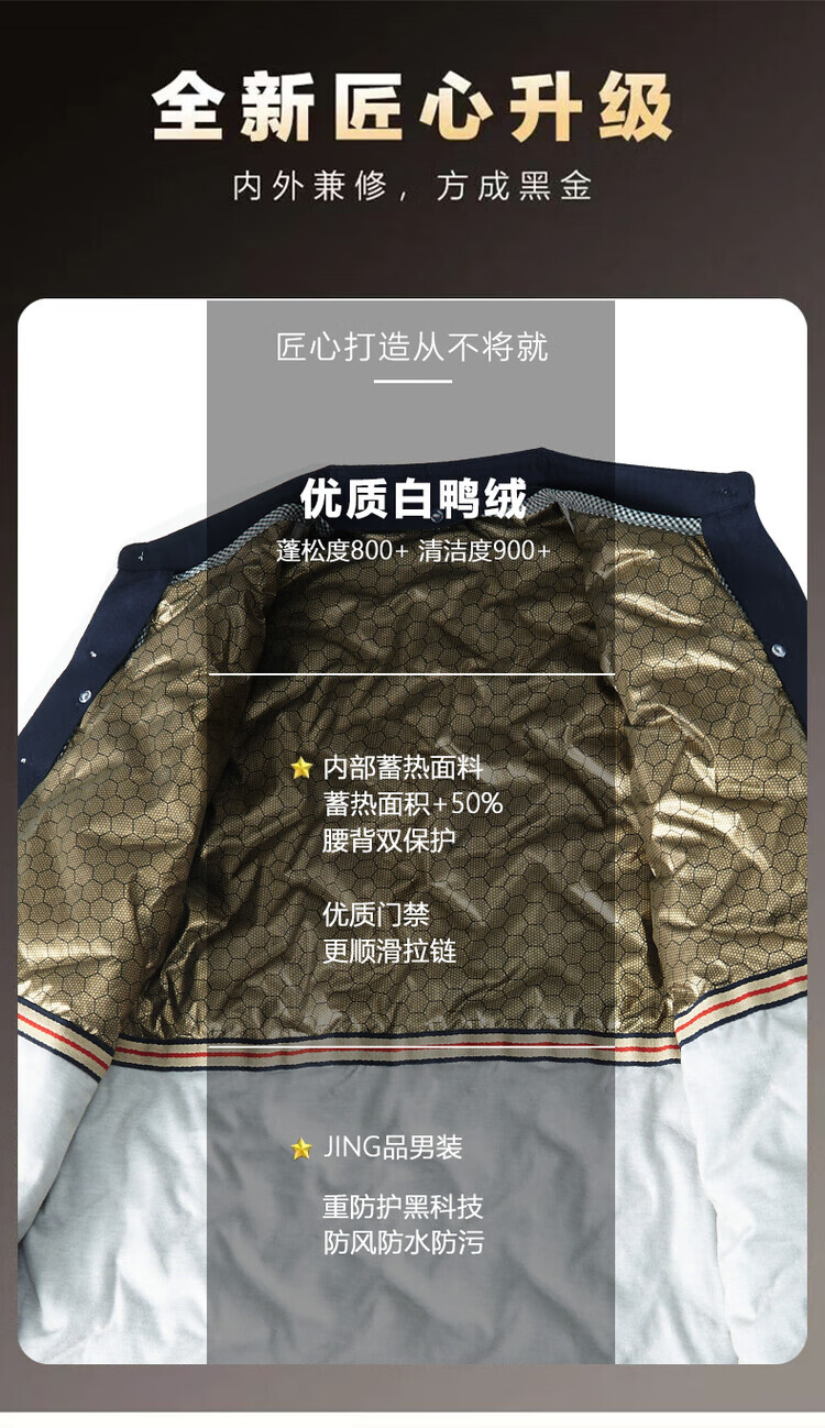 皮尔卡丹(pierre cardin)冬季新款羽绒衬衫男冬季加厚可拆卸内胆90白鸭绒男士条纹长袖衬衣 藏青色 M 165/88A