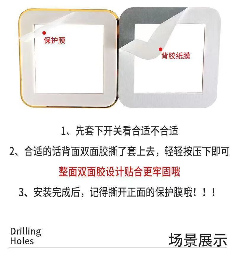 山头林村【优选直发】窄边轻奢亚克力开关贴开关套开关灯装饰套插座 金配白260*90