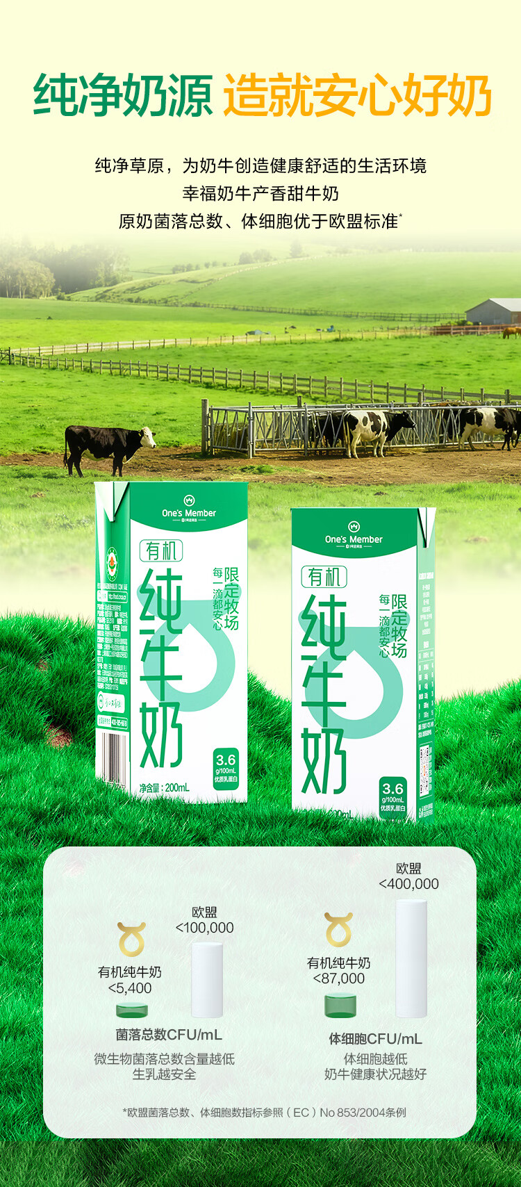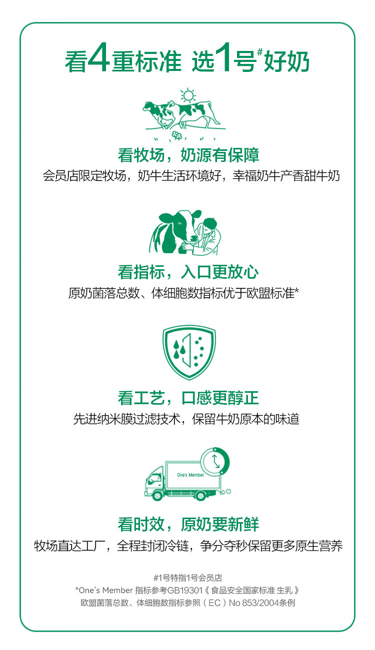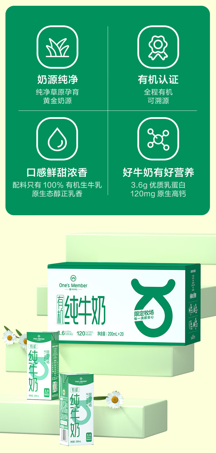 1号会员店(One's Member)3.6g蛋白有机纯牛奶 200ml*20盒 早餐咖啡伴侣 整箱量贩