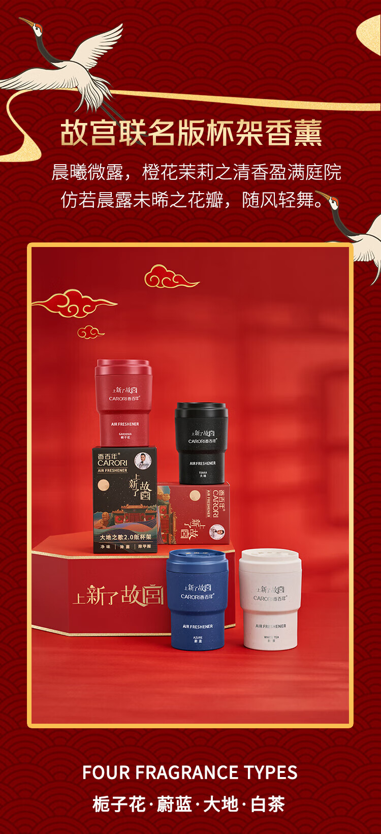 香百年车载香薰精油可乐罐汽车香水香氛摆件家居车内除异味防爆持久留香 故宫联名款 栀子花