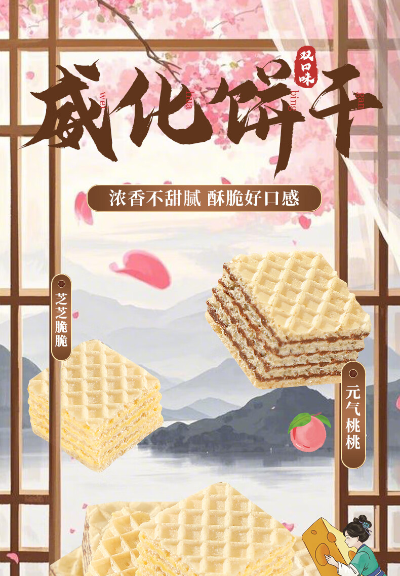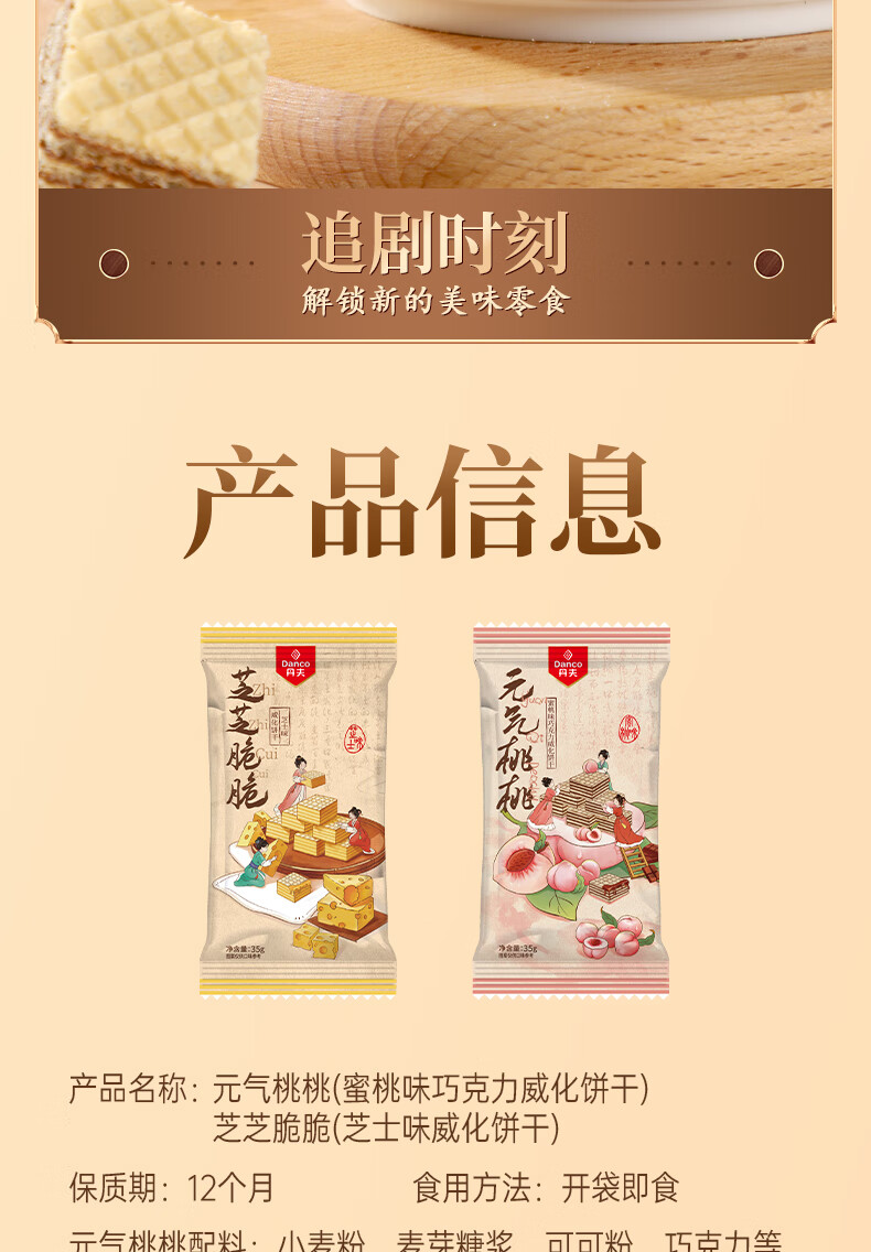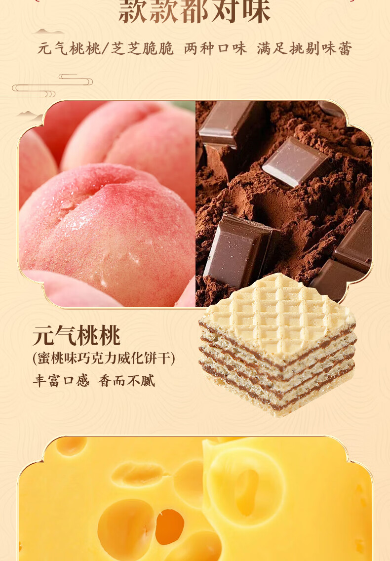 丹夫元气桃桃威化280g蜜桃味巧克力茶颜同款纯脂黑巧脆干休闲零食茶点