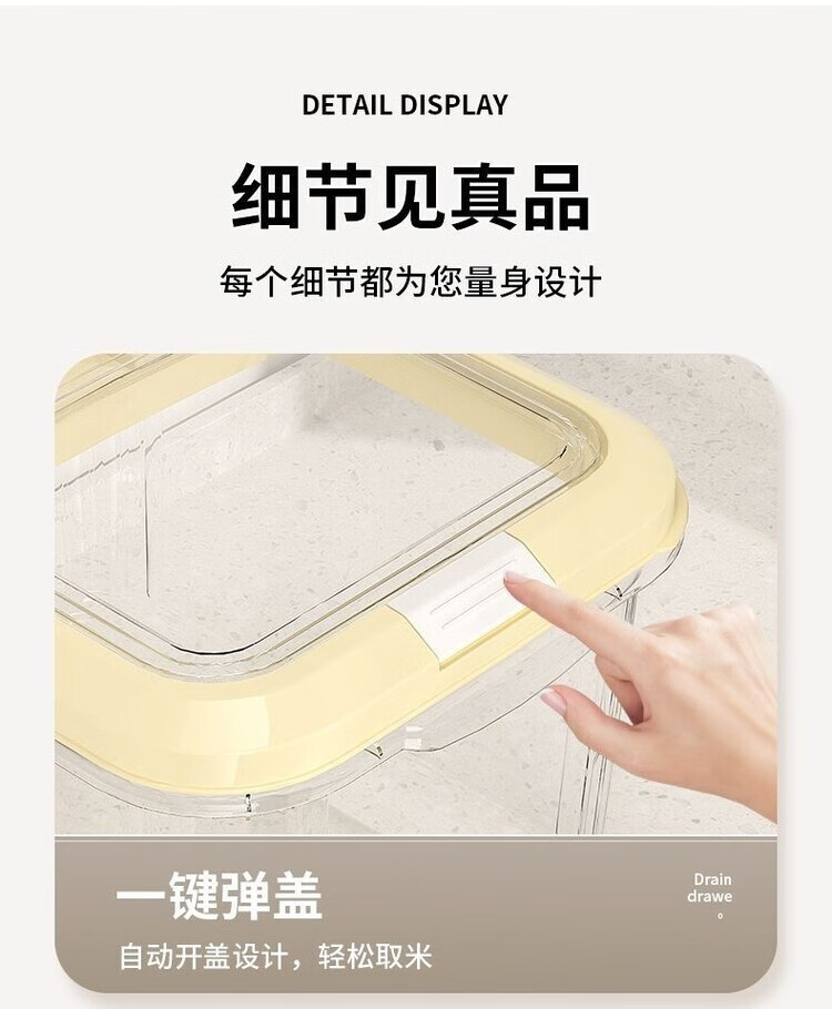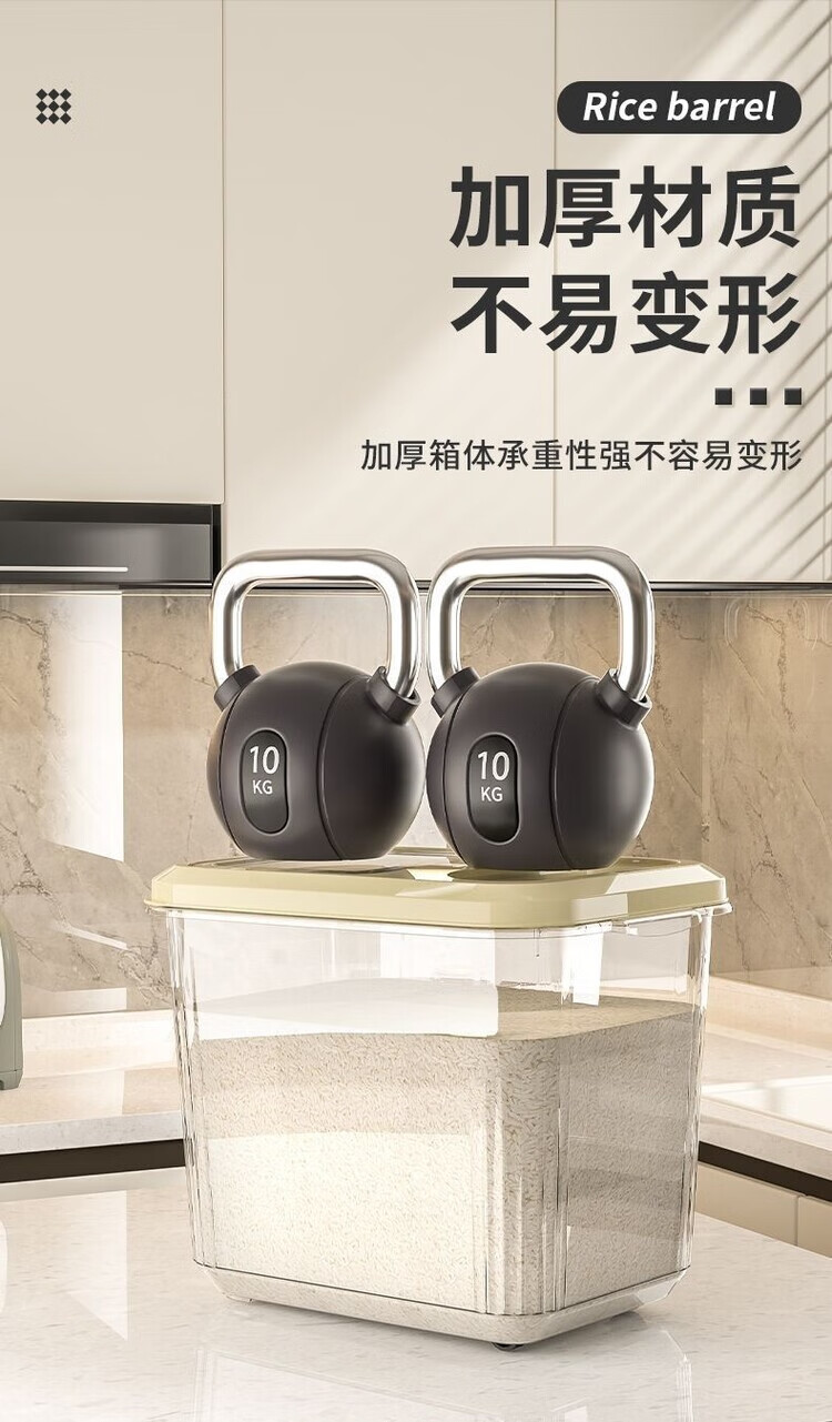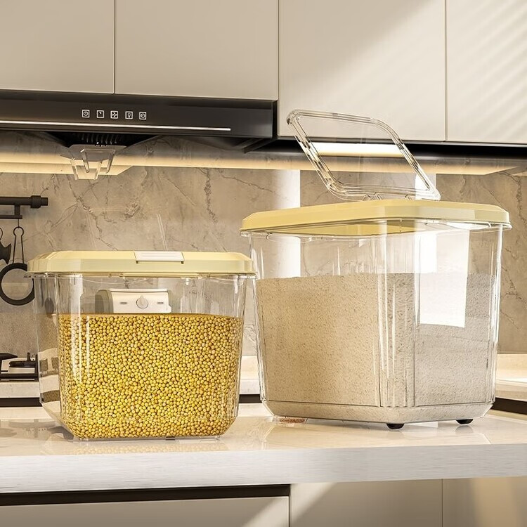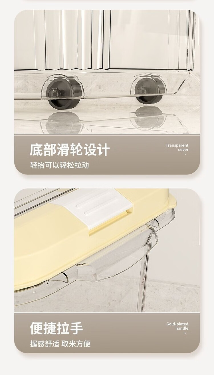 DEATKN米桶家用收纳防虫防潮密封食品级米缸米箱面粉储存罐大米收纳盒 【15斤奶油白透明米桶送米杯】 加厚款【食品级pp材质】