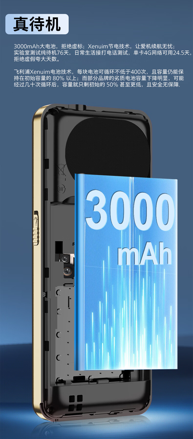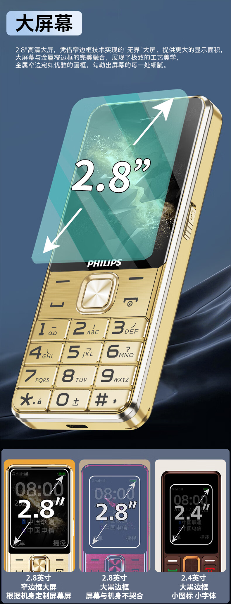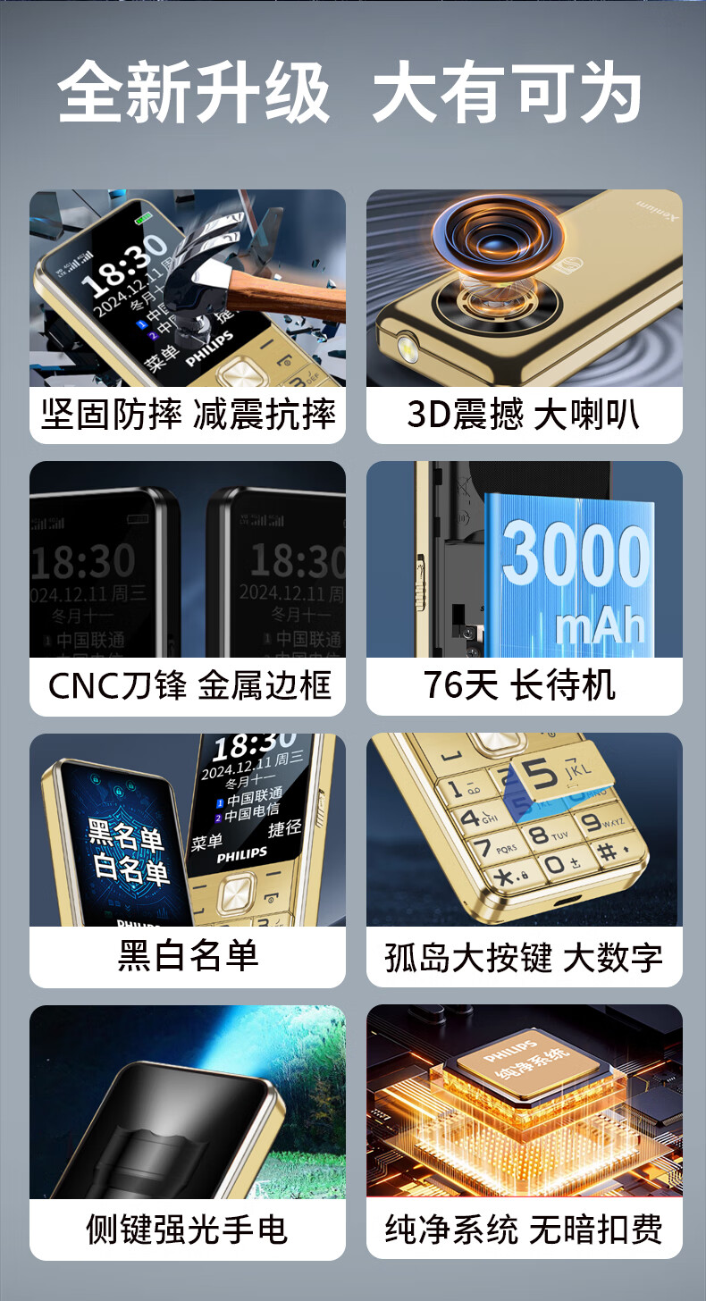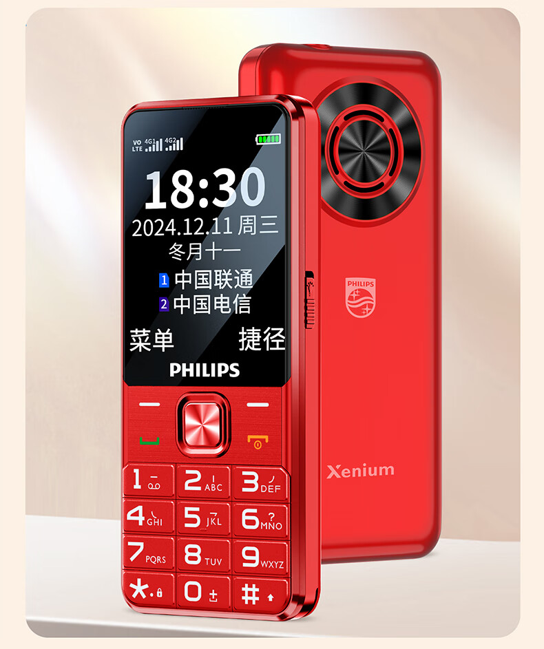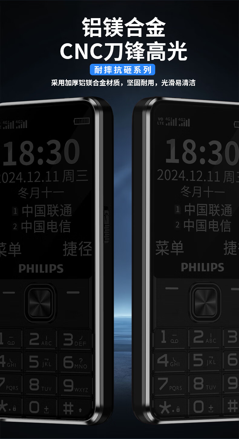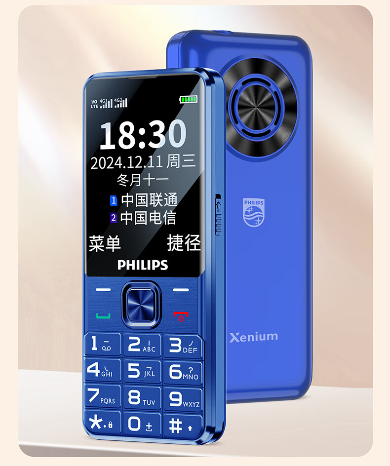 飞利浦(PHILIPS)T910 老年人手机4G全网通超长待机金属边框抗砸大屏大字体大声音老年人专用手机 学生备用机香缤金
