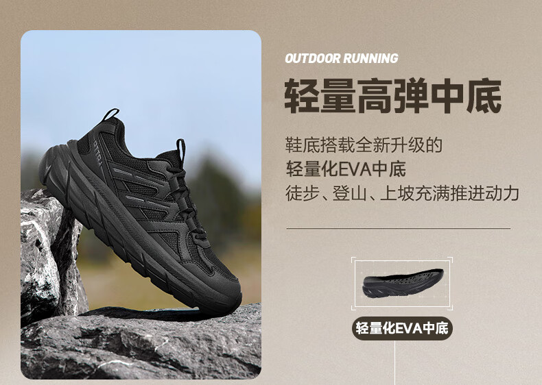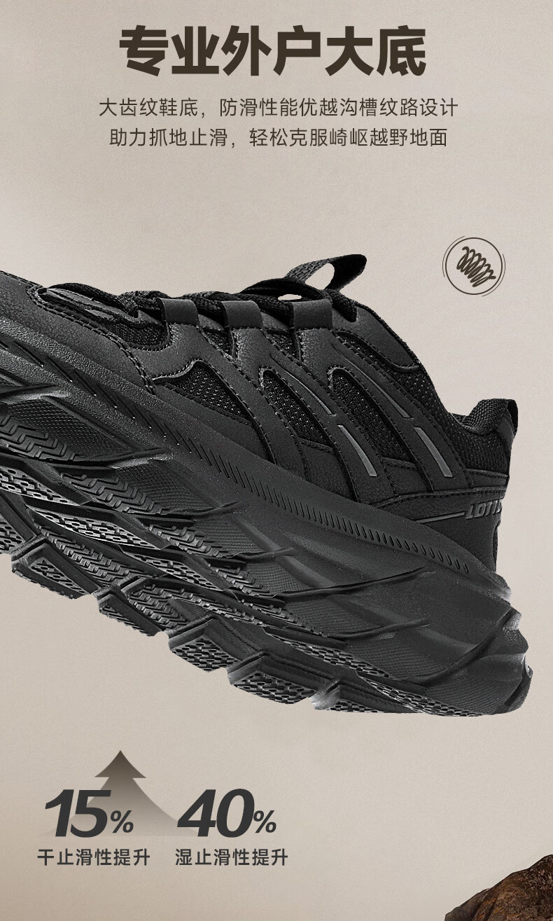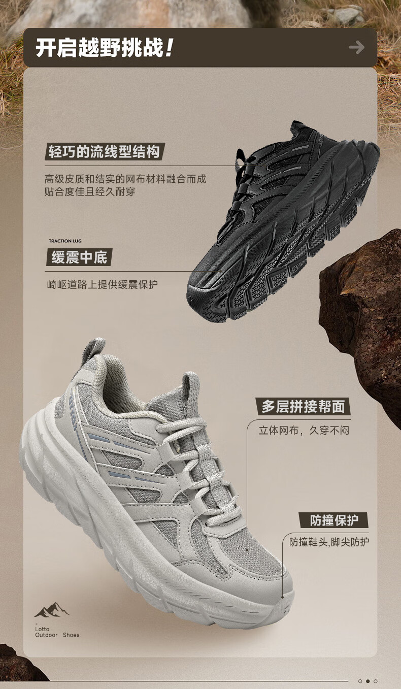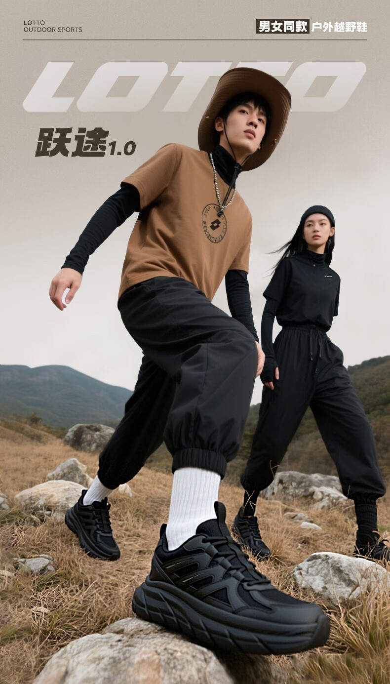 乐途(LOTTO)跑步鞋男户外登山鞋秋季情侣运动鞋防滑越野徒步鞋 1068 黑色 41