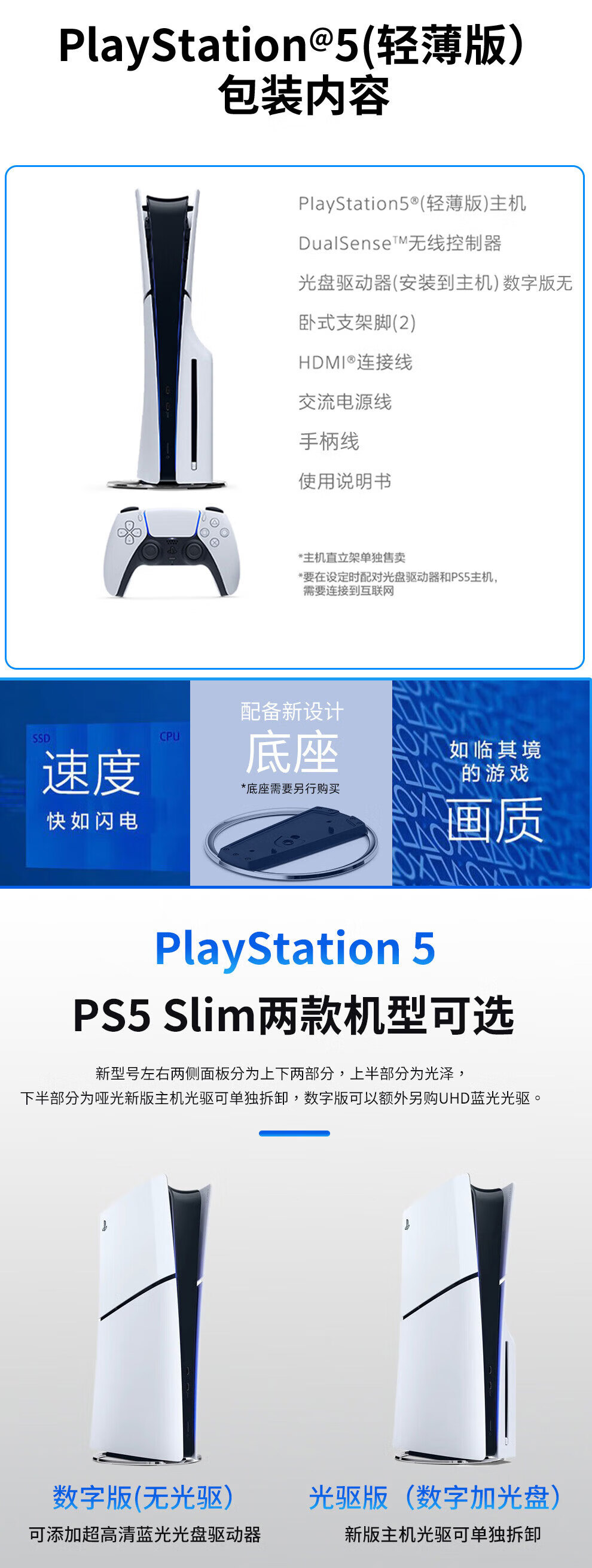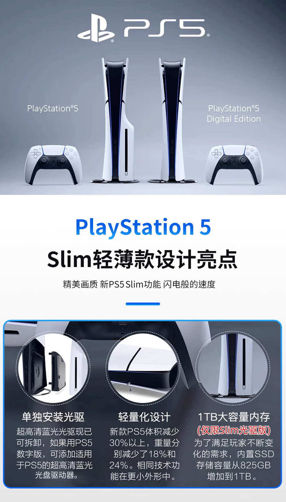 索尼(SONY)【国内保税仓】索尼ps5 slim/pro轻薄版体感家庭游戏机主机港版/日版支持VR/双影奇境 PS5 slim港版光驱版保税仓(送共享会员)