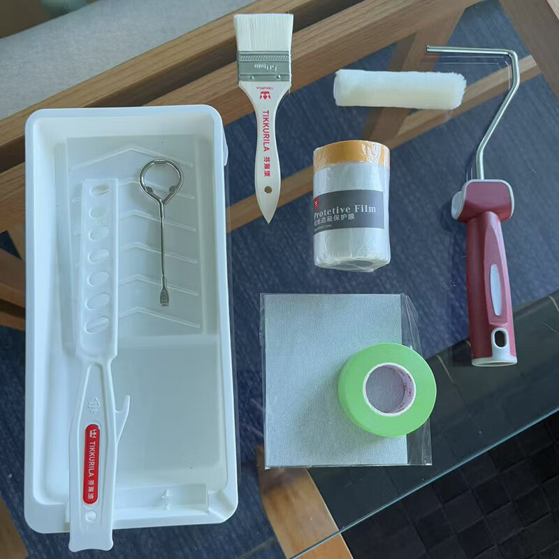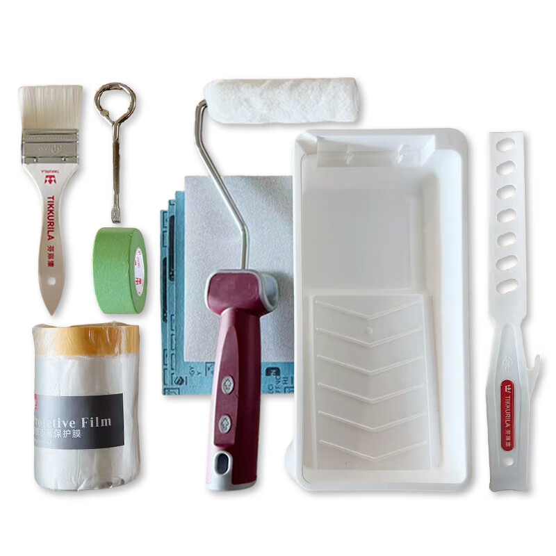 芬琳乳胶漆施工滚筒毛刷砂纸遮蔽膜搅拌棒托盘工具包套装
