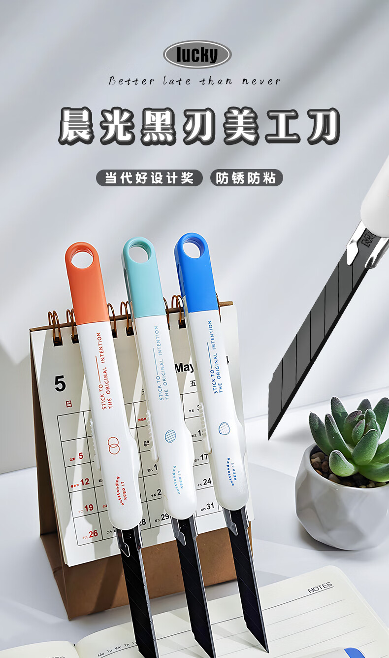 晨光(M&G)晨光初色黑刃美工刀高颜值锋利耐用学生裁纸刀拆快递小刀小号可爱 【绿色】1把 晨光美工刀