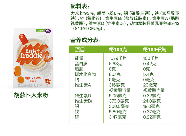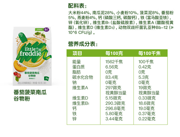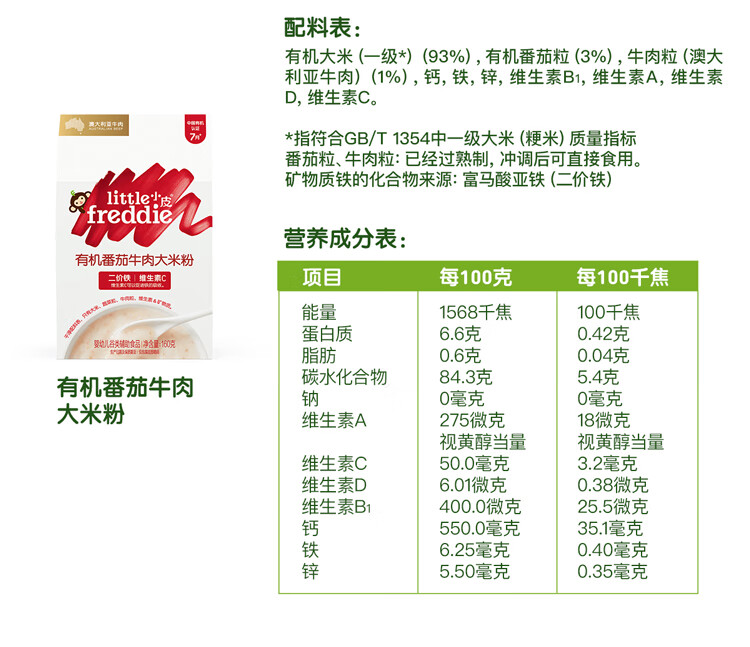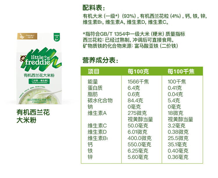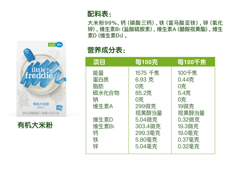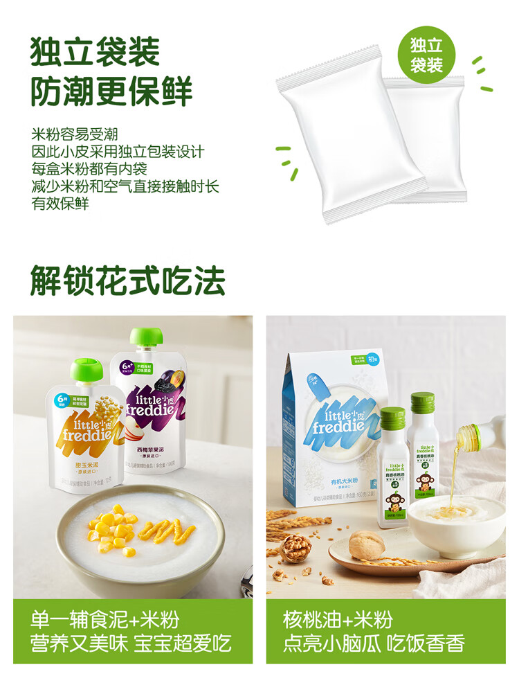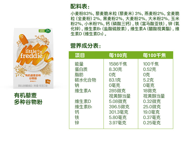 小皮(Little Freddie)有机高铁米粉藜麦多谷物味160g*1盒7月+宝宝辅食婴儿米糊营养