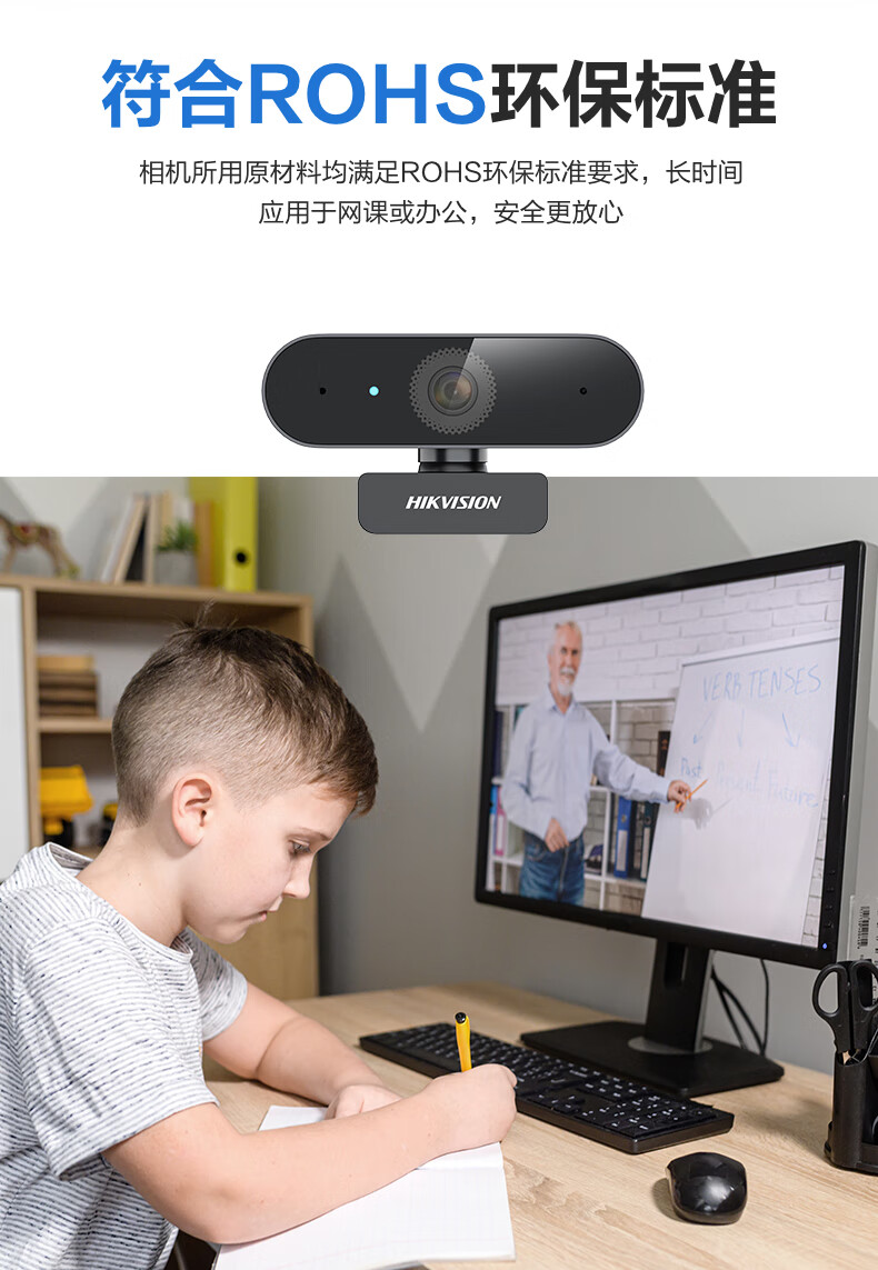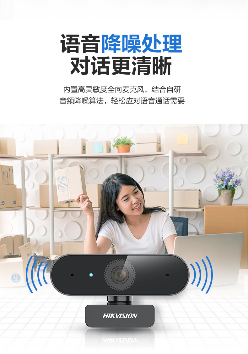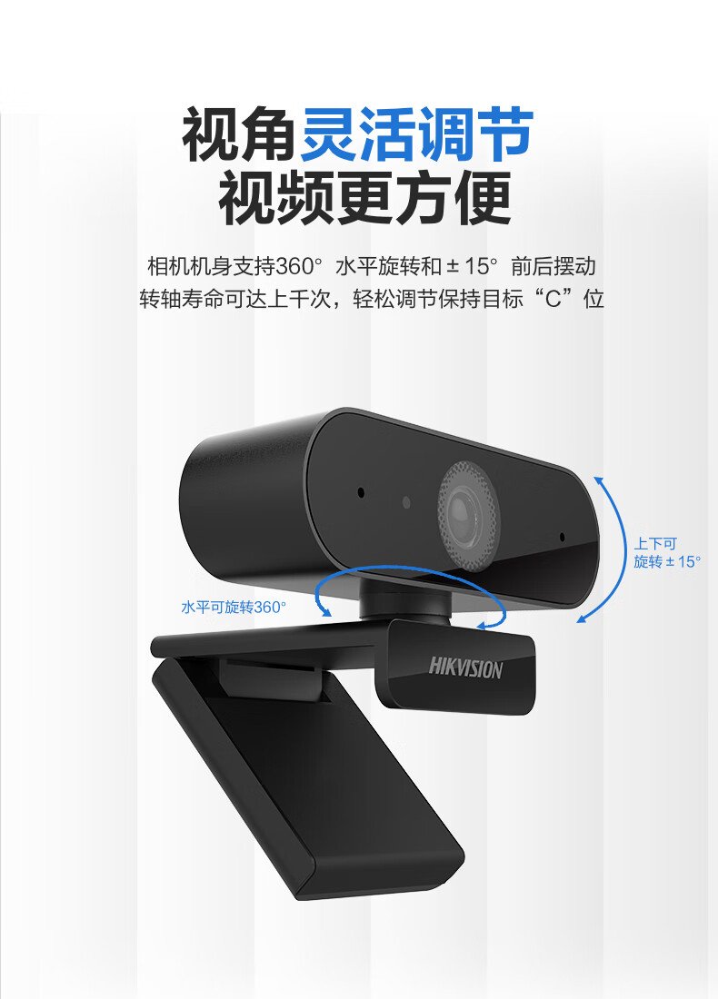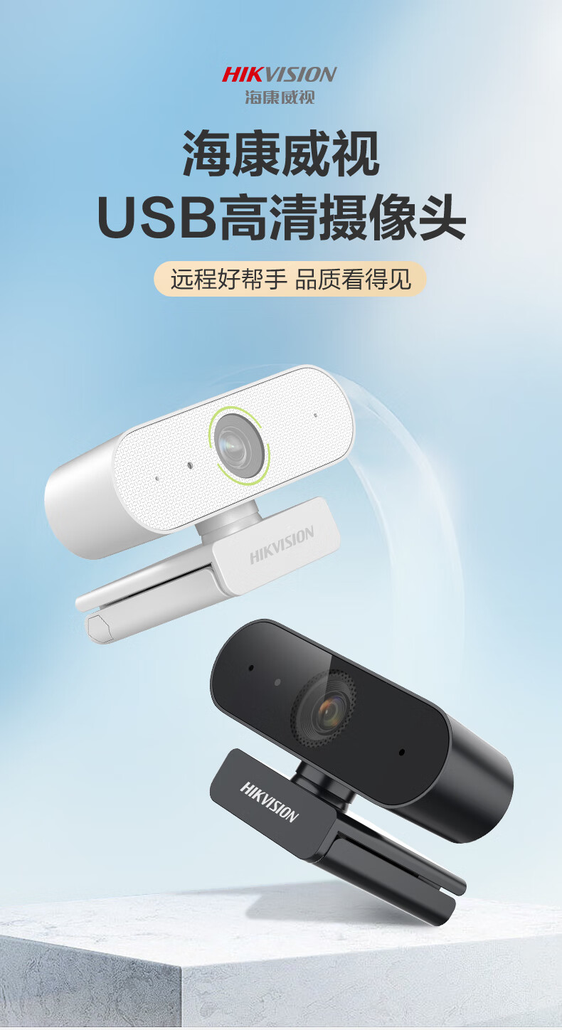 HIKVISION海康威视电脑摄像头2K高清广角带麦克风USB免驱即插即用外接笔记本台式机视频会议直播带货E15