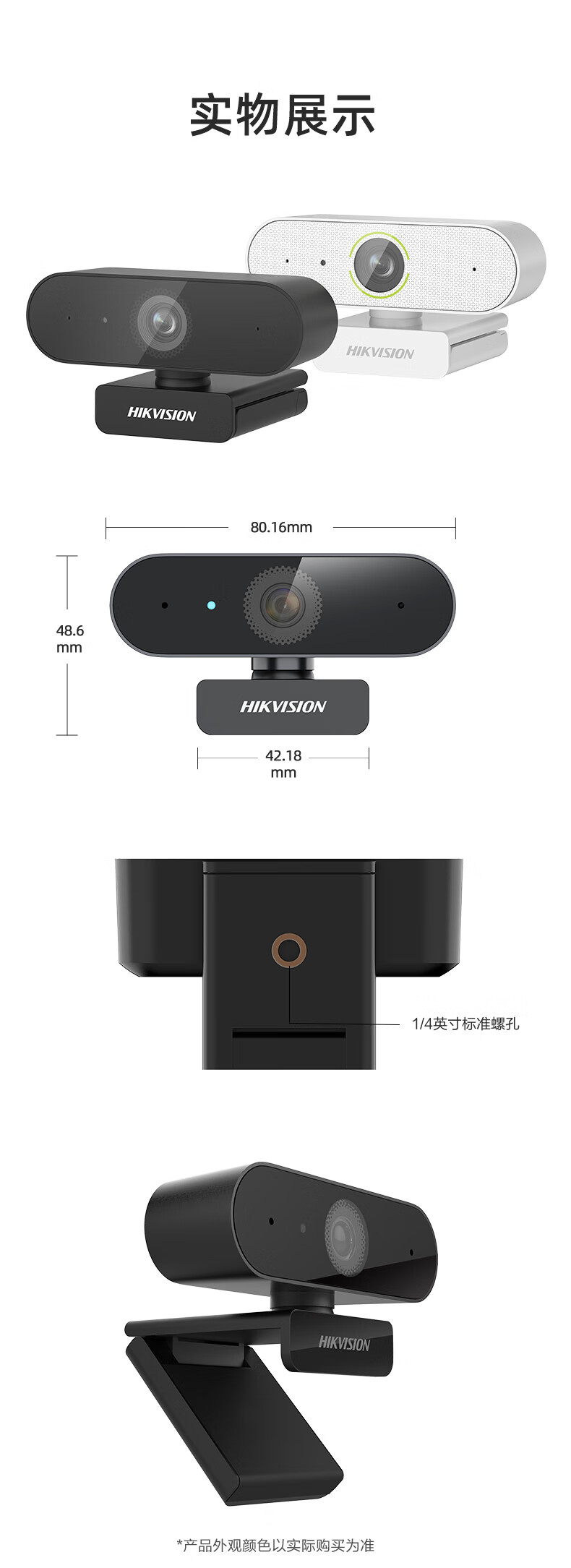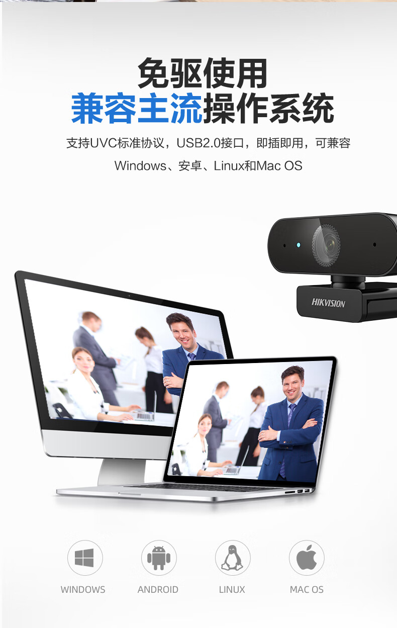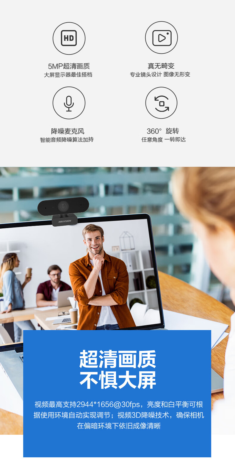 HIKVISION海康威视电脑摄像头2K高清广角带麦克风USB免驱即插即用外接笔记本台式机视频会议直播带货E15