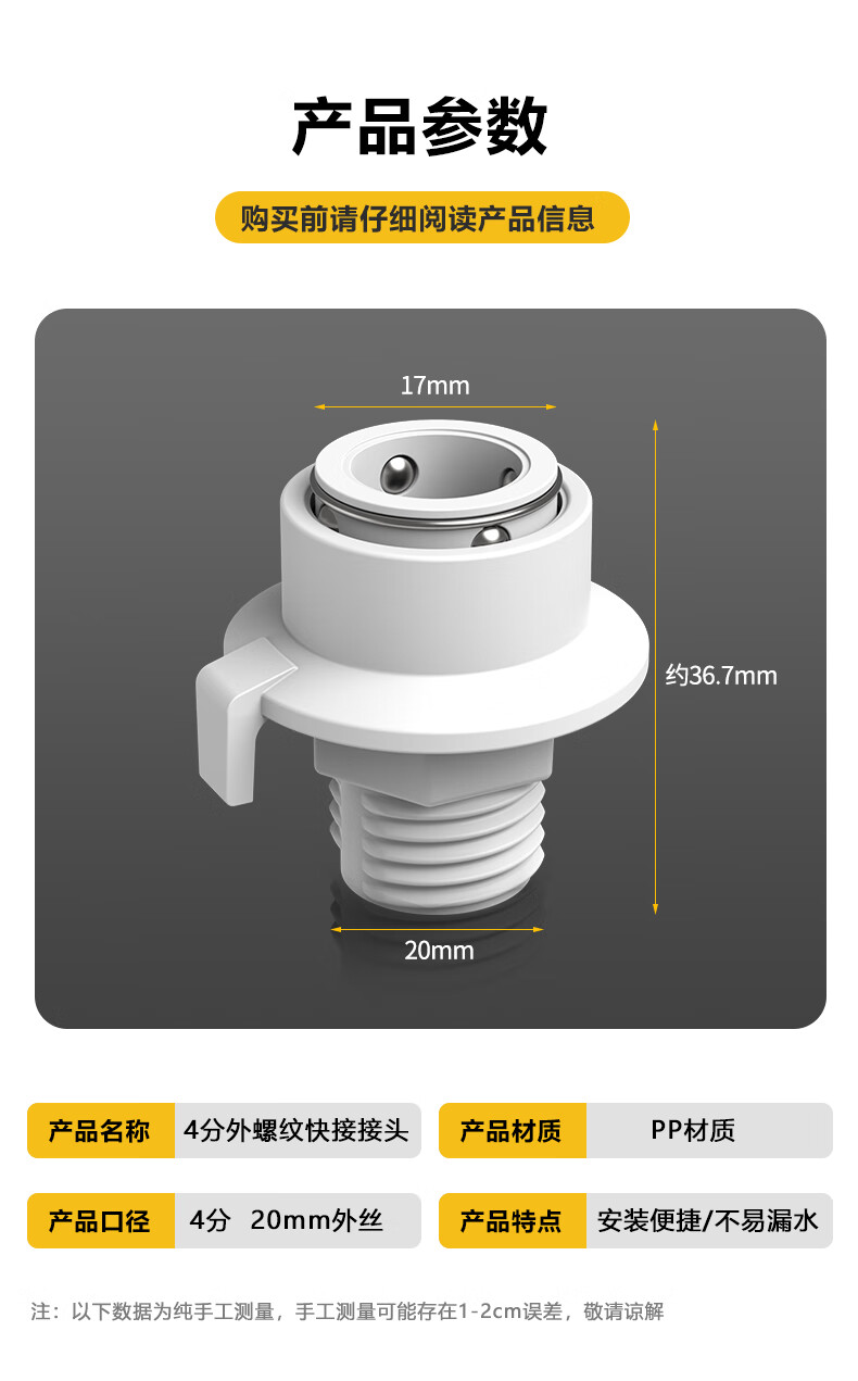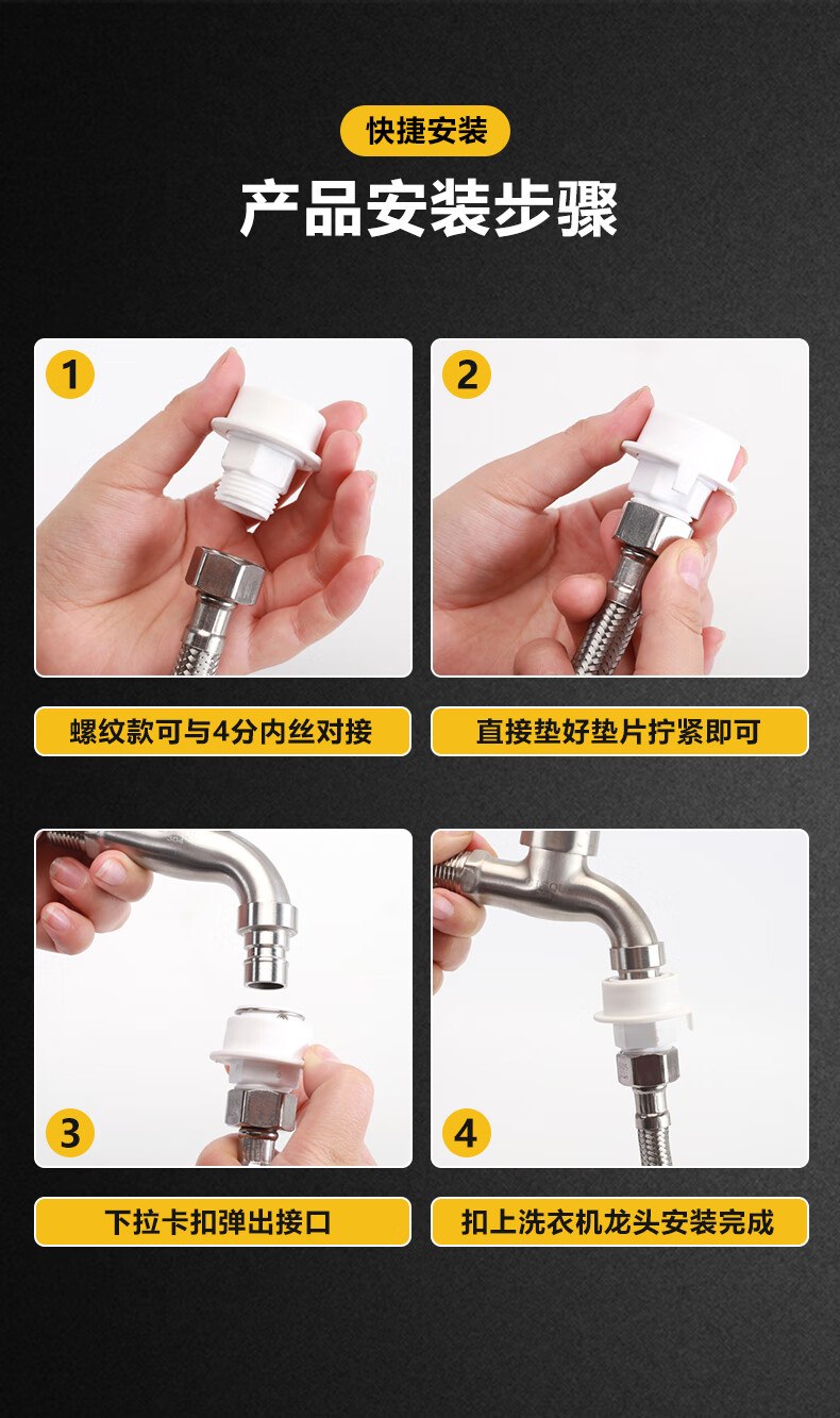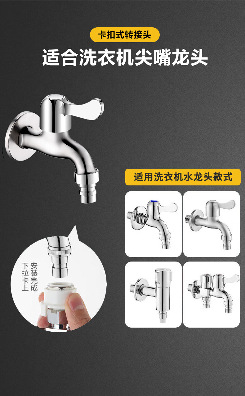 格耳洗衣机水龙头转接头 进水管卡扣转4分螺纹快速接头波轮滚筒通用卡扣式接头转螺纹口